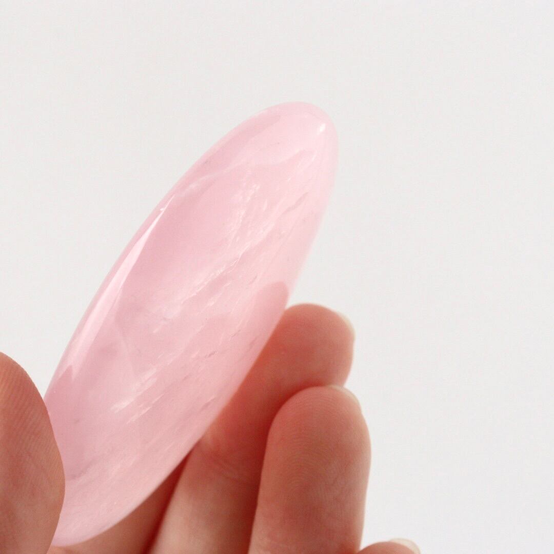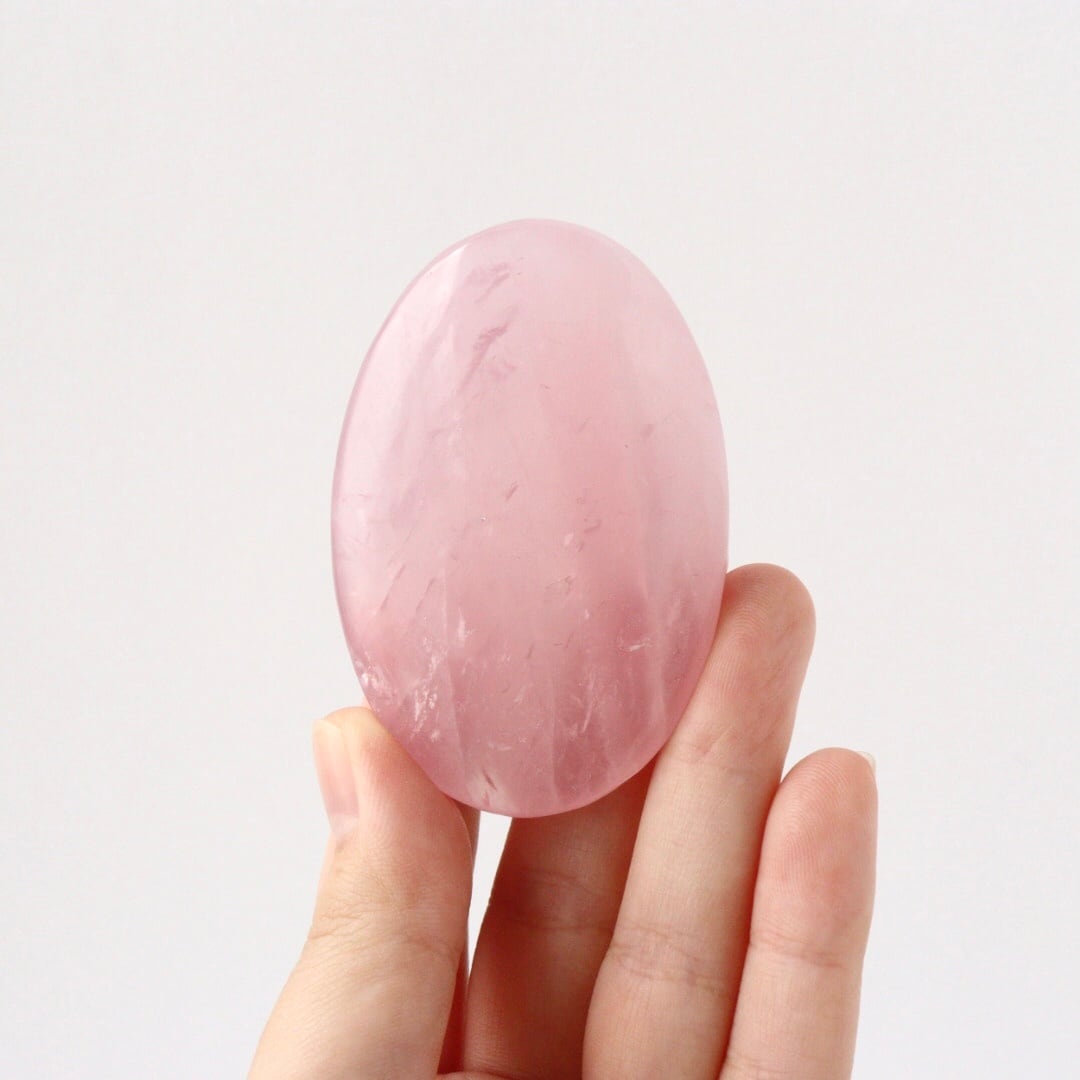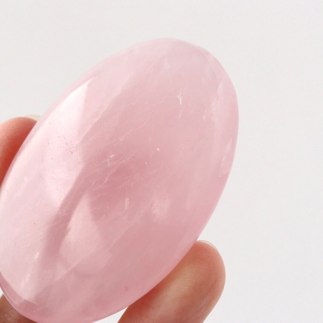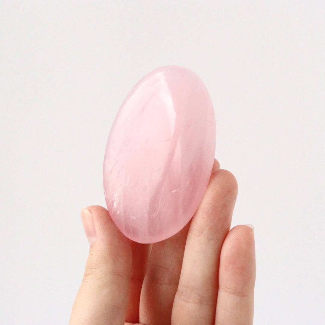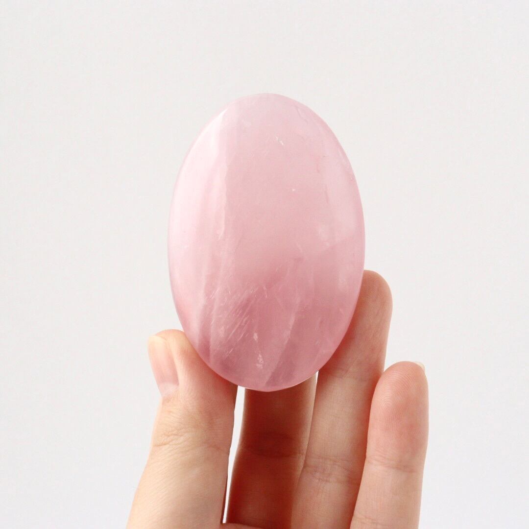 明るく華やかなピンクカラーが心をときめかせる、ローズクォーツの握り石。