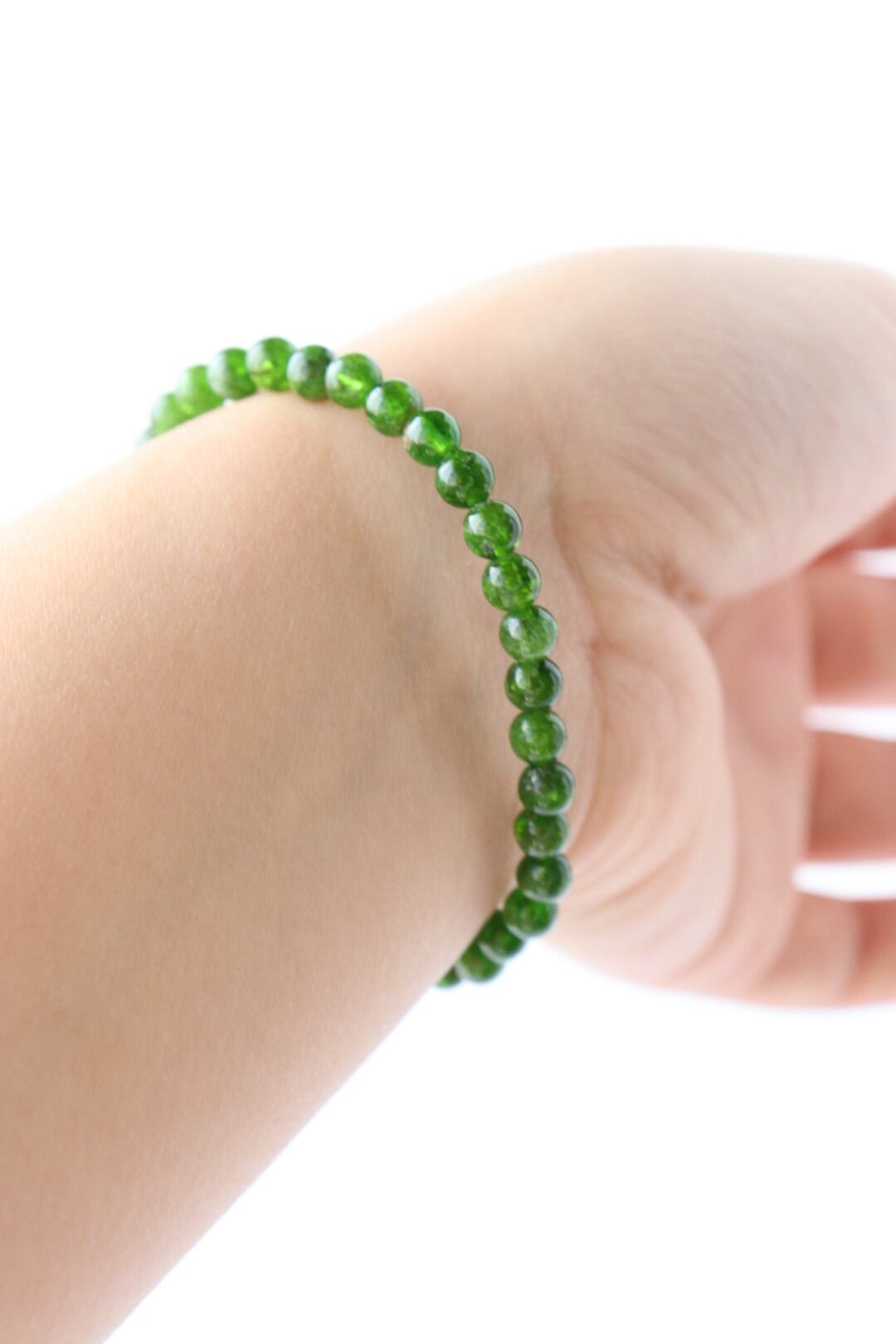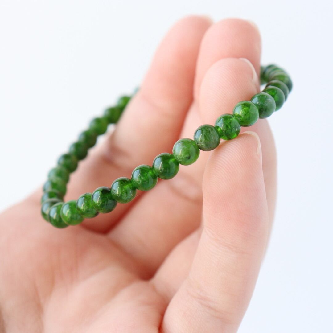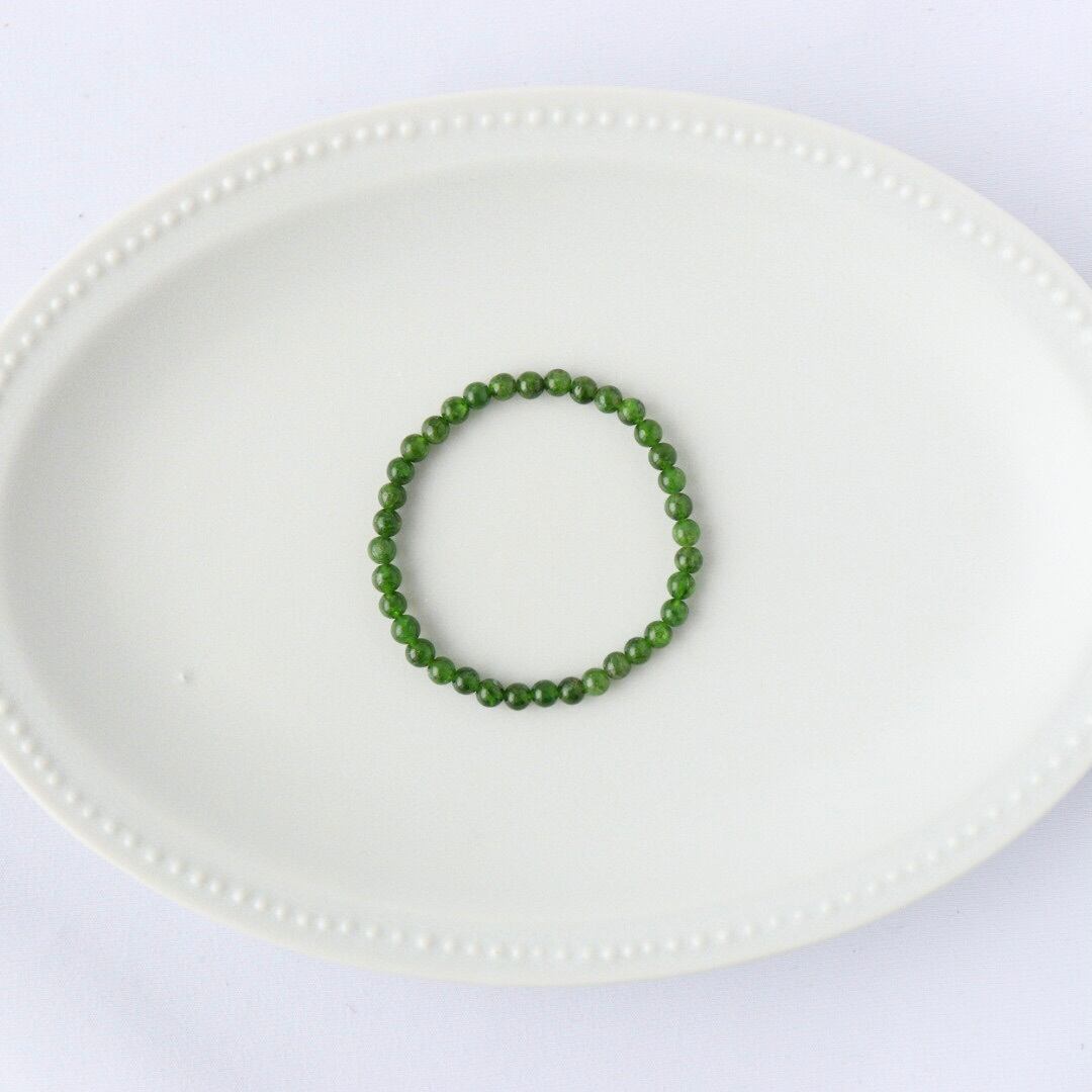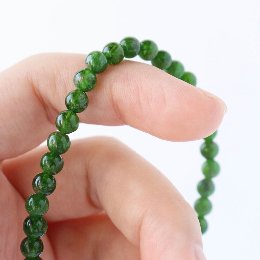 澄んだ新緑を思わせる鮮やかなグリーンが美しい、クロムダイオプサイトのブレスレット。