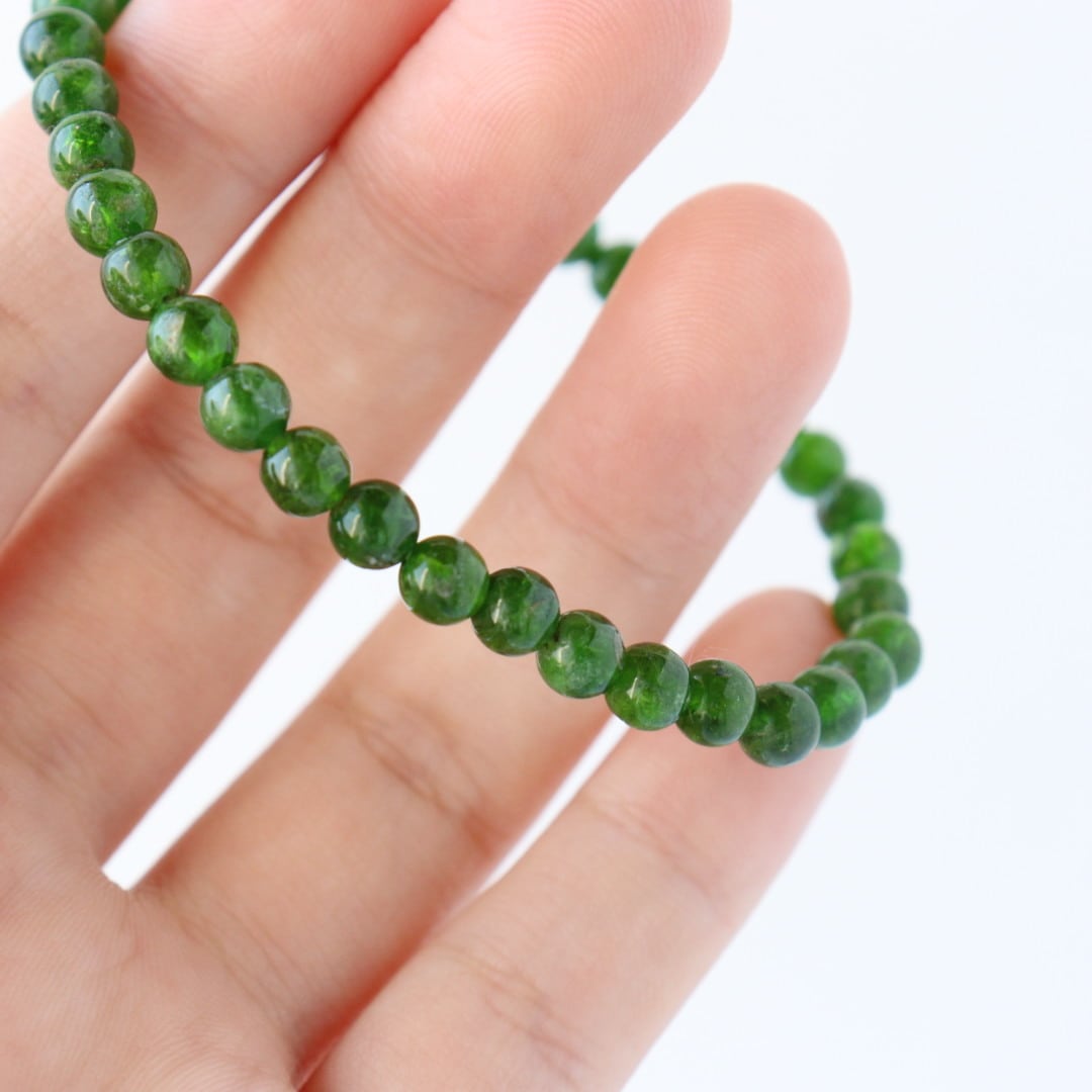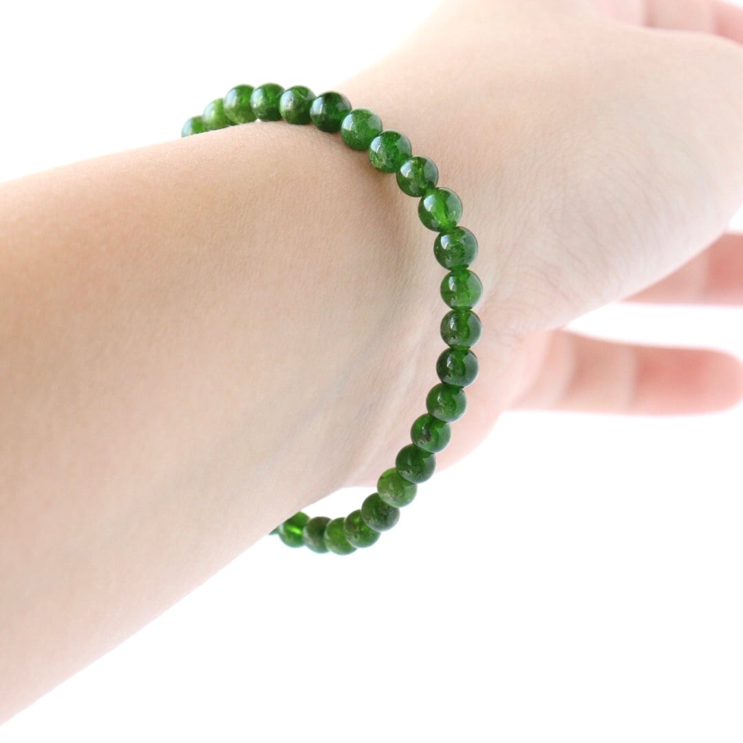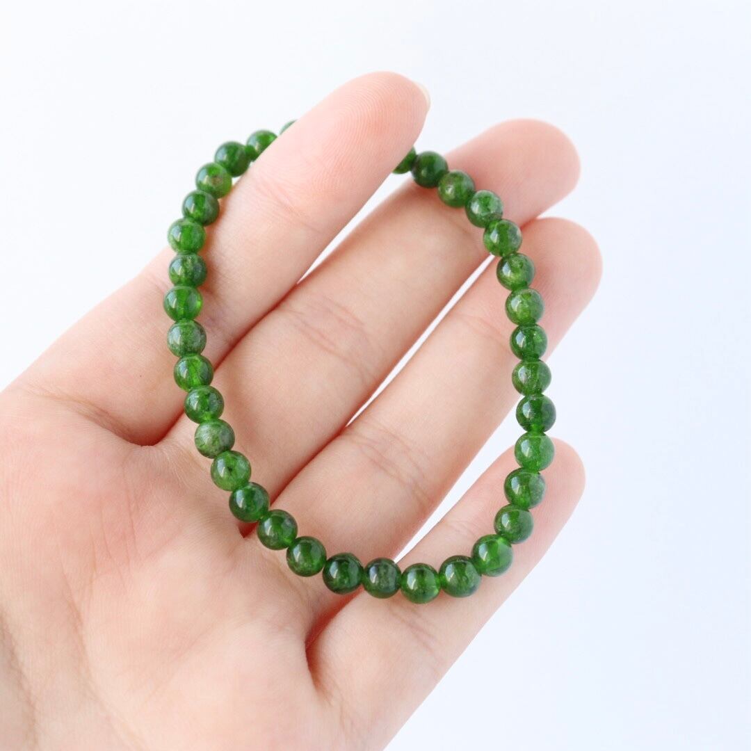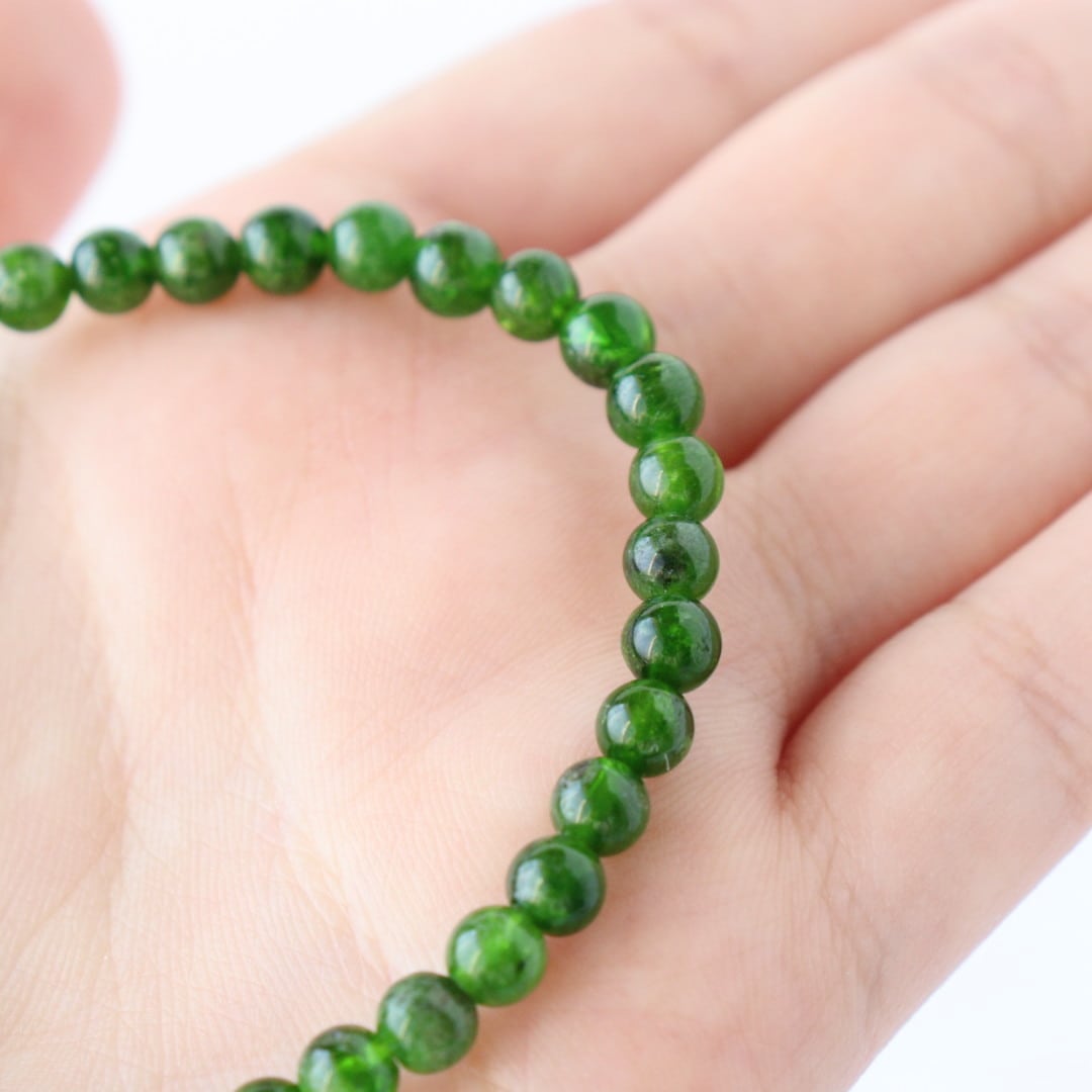 澄んだ新緑を思わせる鮮やかなグリーンが美しい、クロムダイオプサイトのブレスレット。
