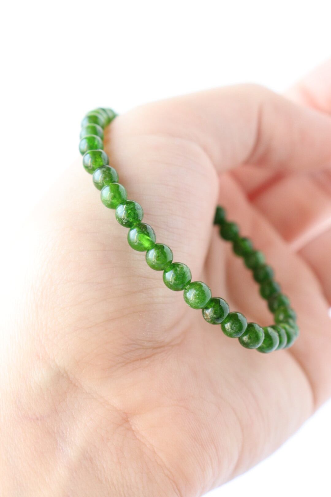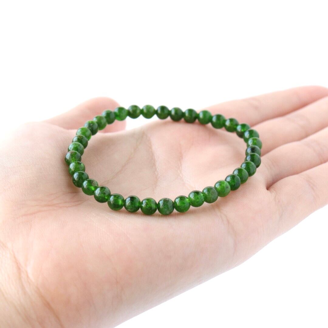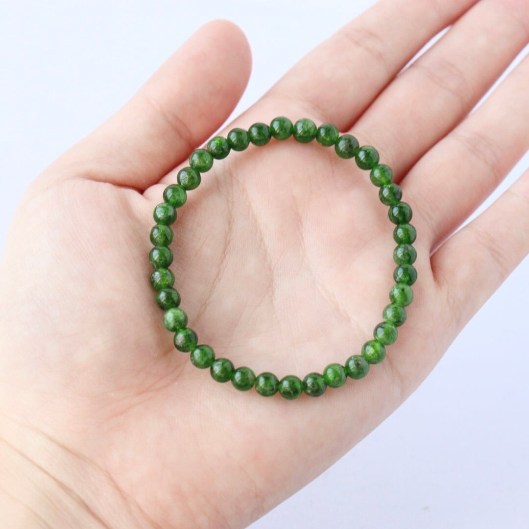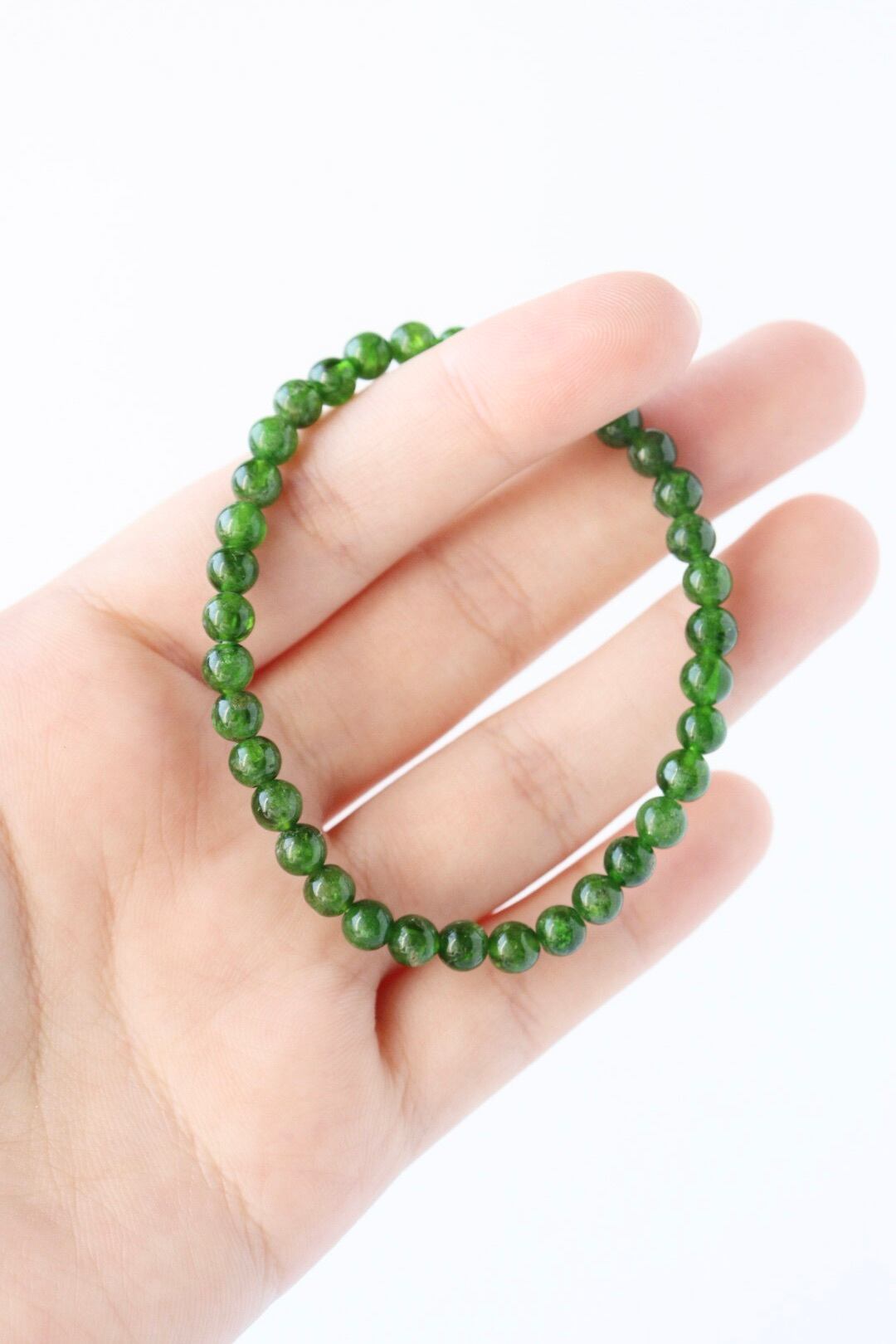 澄んだ新緑を思わせる鮮やかなグリーンが美しい、クロムダイオプサイトのブレスレット。
