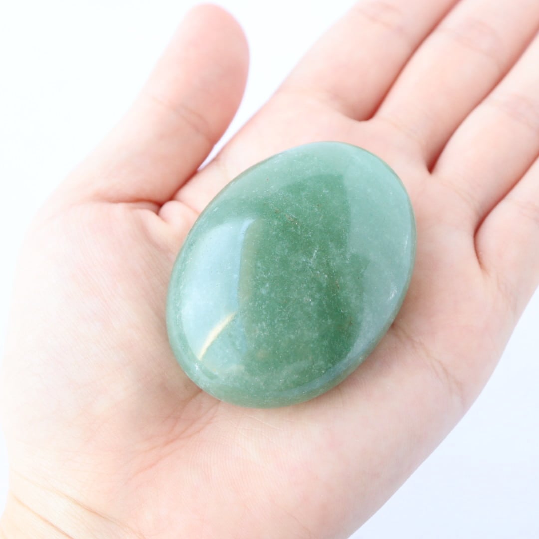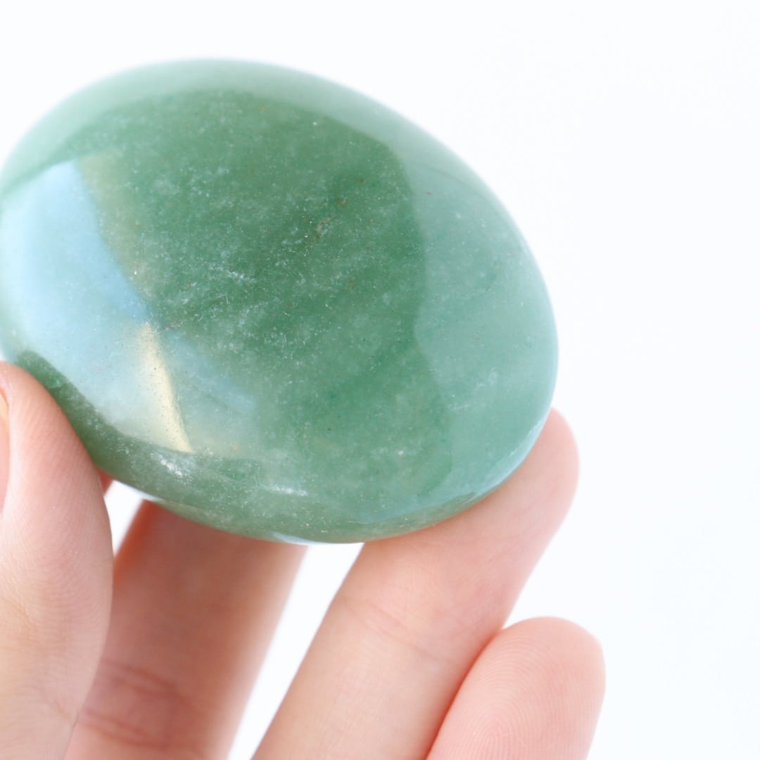 こちらは、ころんとした形に磨かれたグリーンアベンチュリンの握り石。