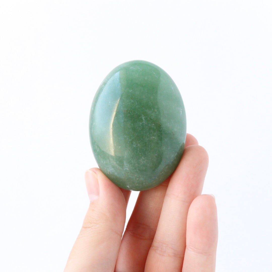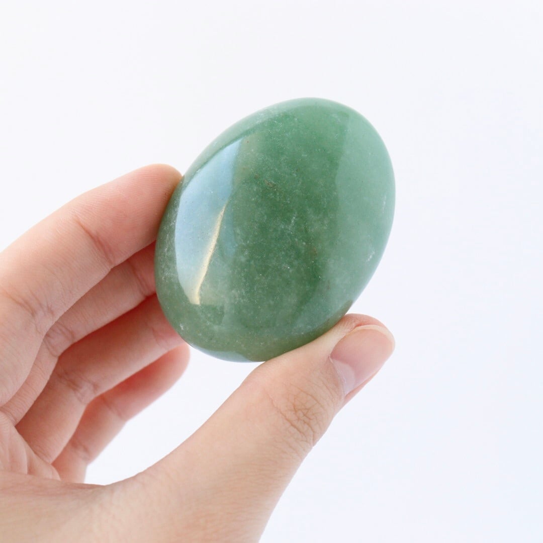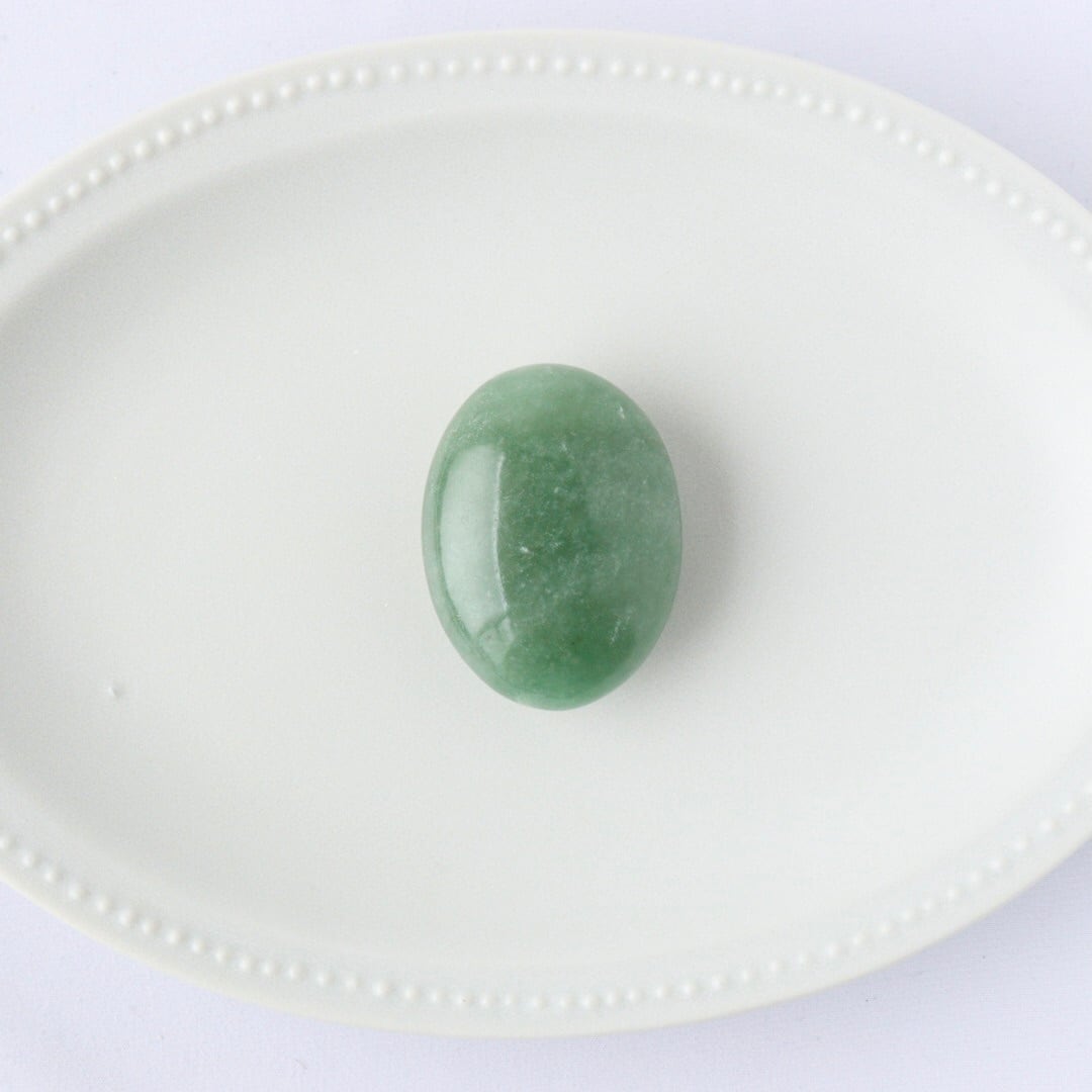 ぽってりとしたフォルムと、つやつやとした表情が愛らしいグリーンアベンチュリンの握り石。