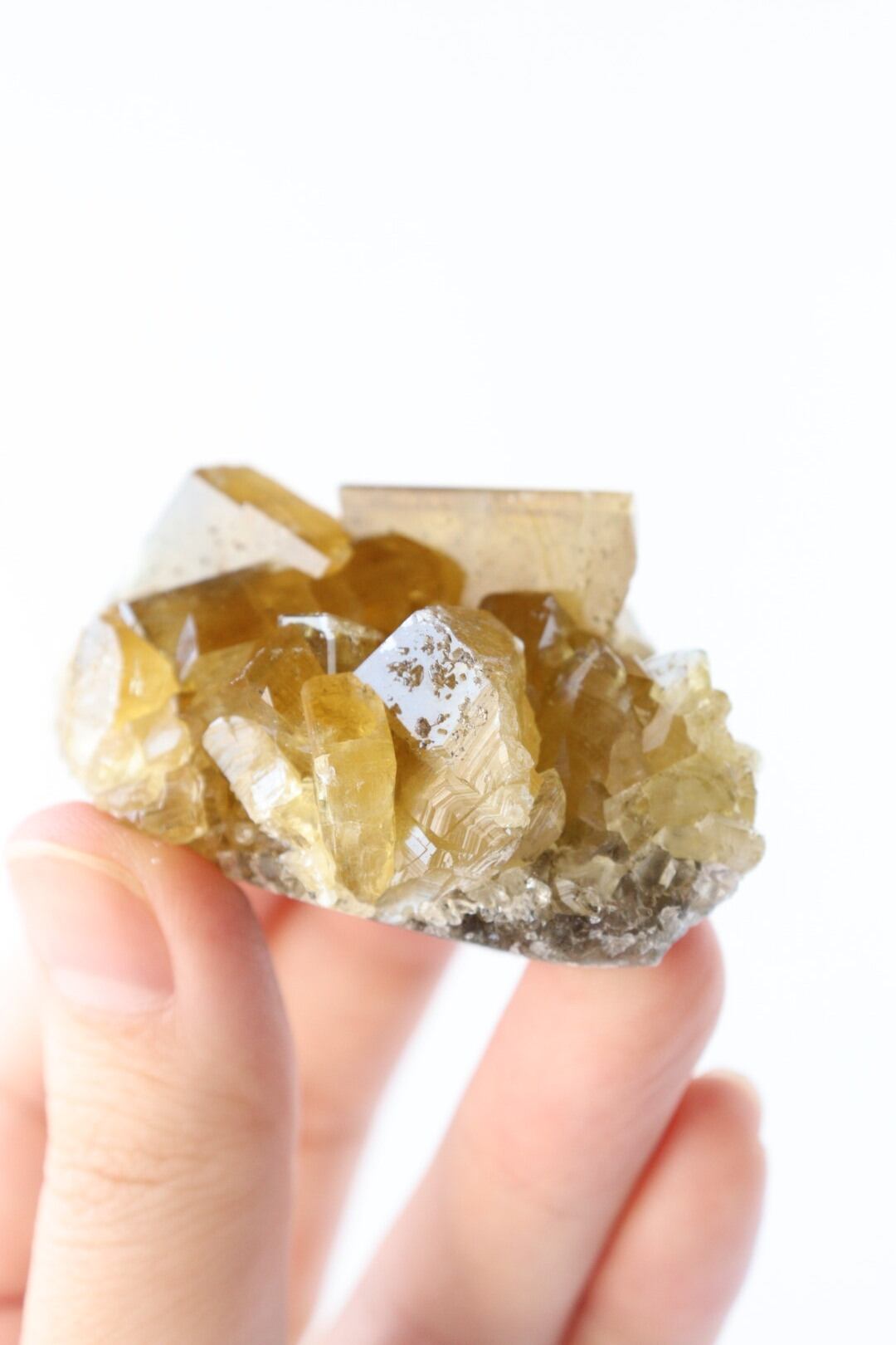 世界各地で見つかりますが、透明感のある黄色や青みを帯びた結晶は特に希少で、古くは医学や儀式にも用いられていたそう。