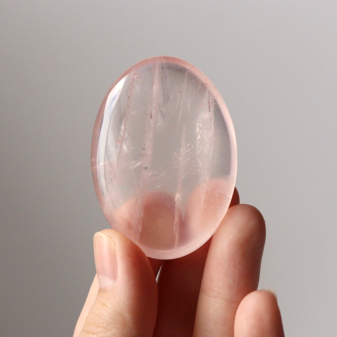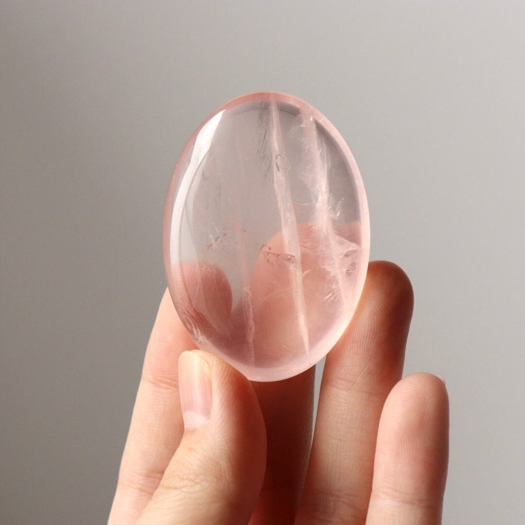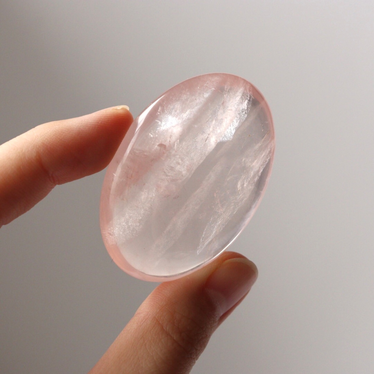淡く繊細なピンクがやさしく透ける、ローズクォーツの握り石。