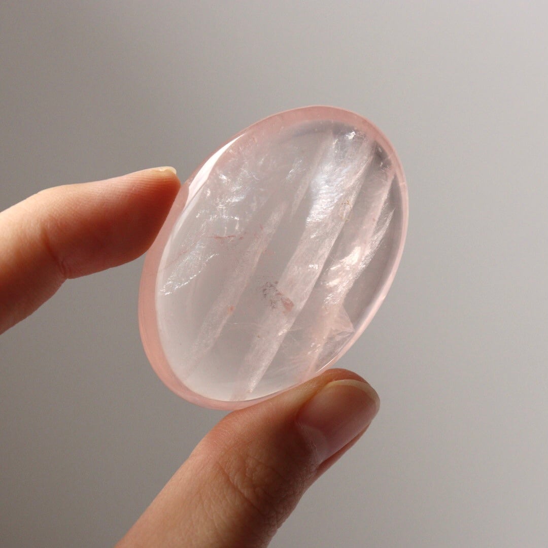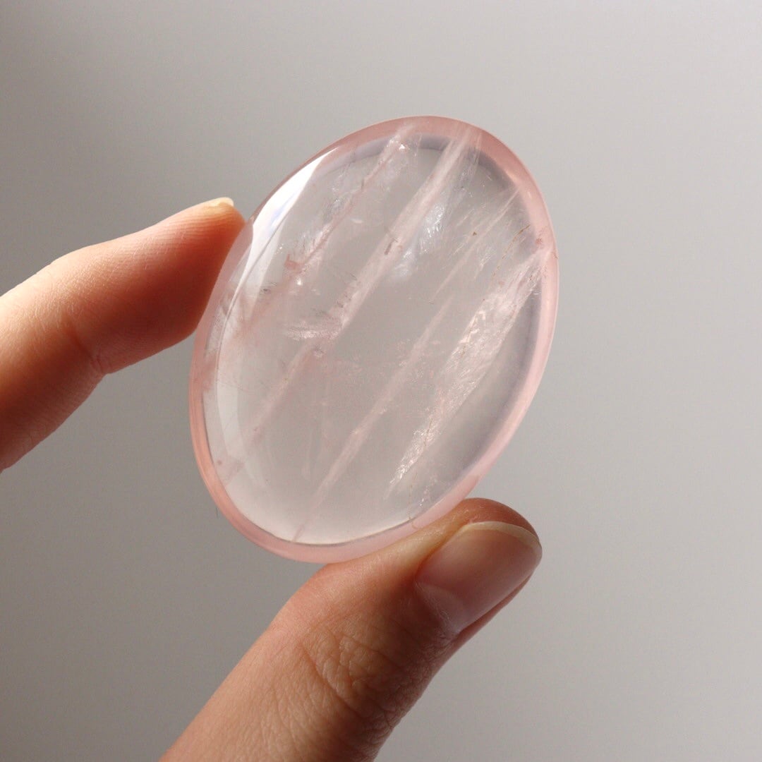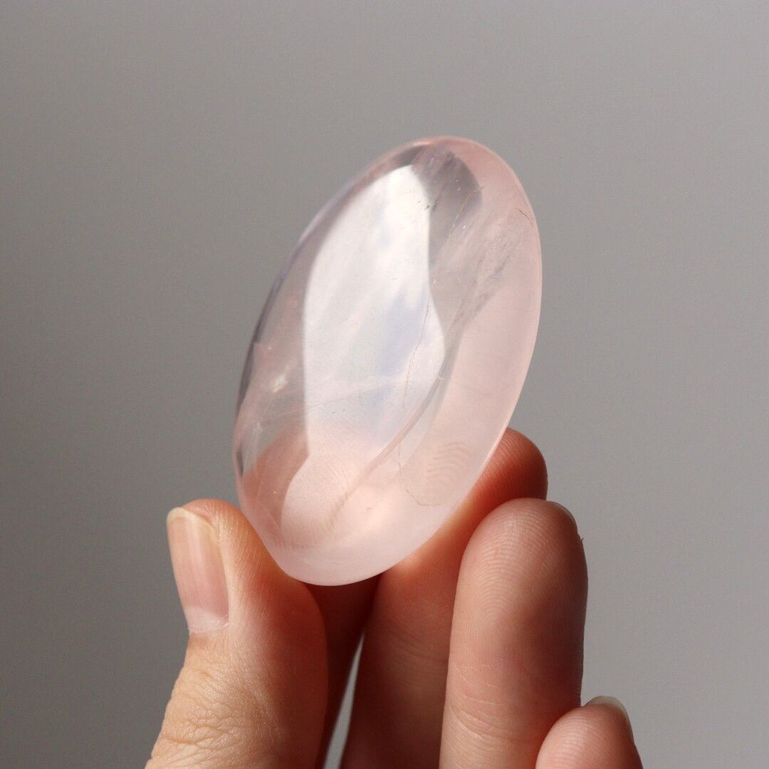 淡く繊細なピンクがやさしく透ける、ローズクォーツの握り石。