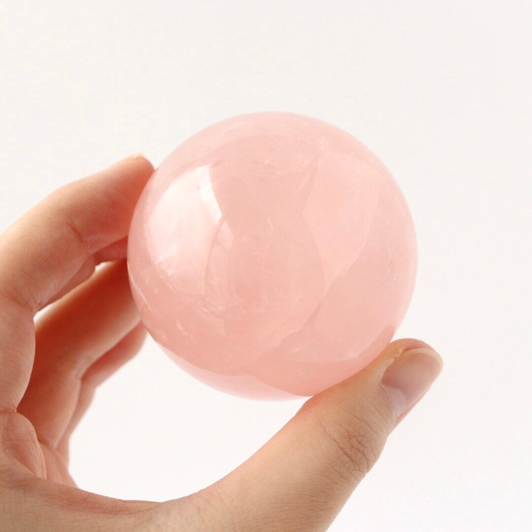 明るいベビーピンクカラーが美しい、ローズクォーツのスフィア。