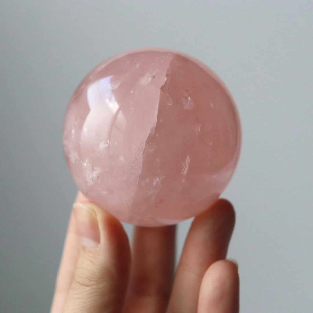 ローズクォーツの中でもはっきりとした明るいピンクをもつ、希少なスフィアです。