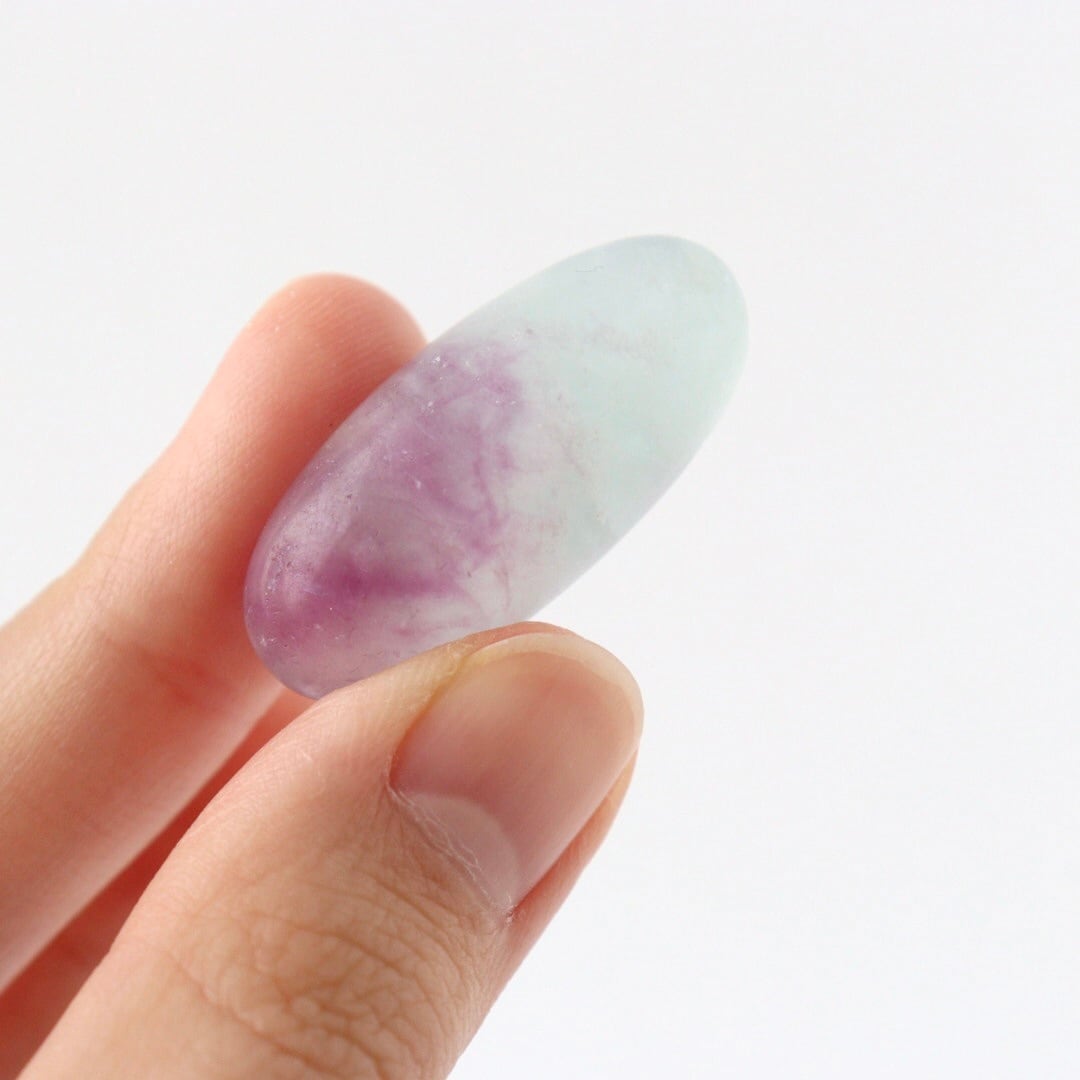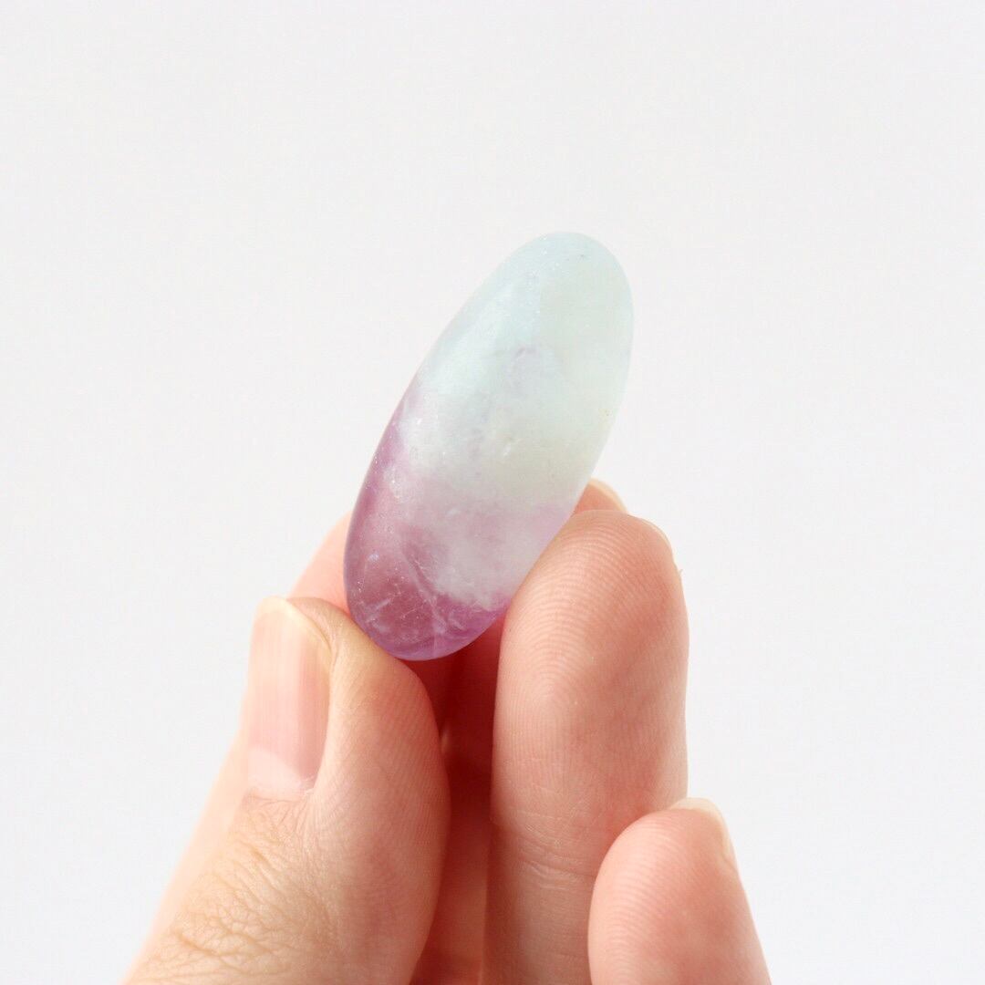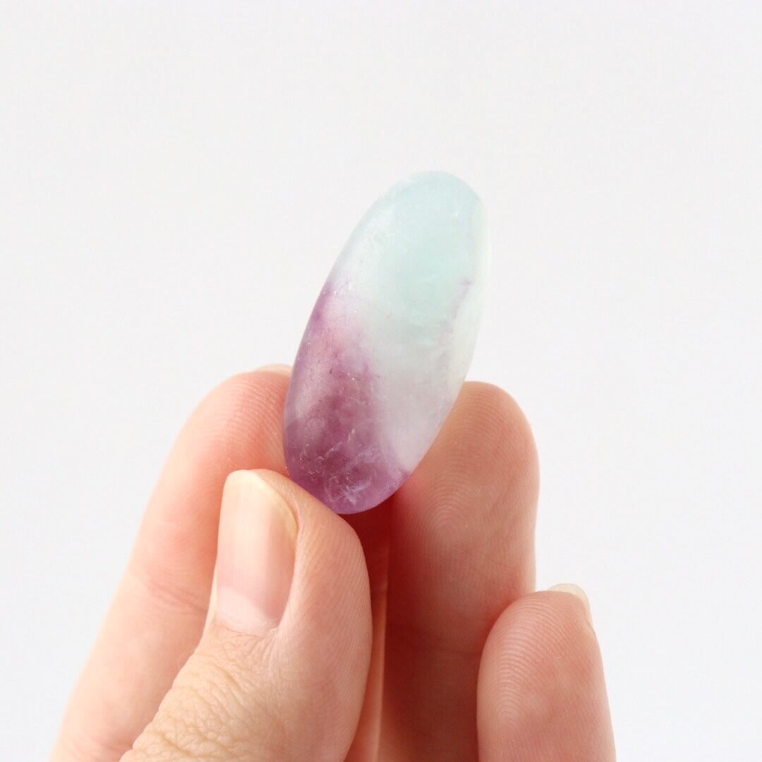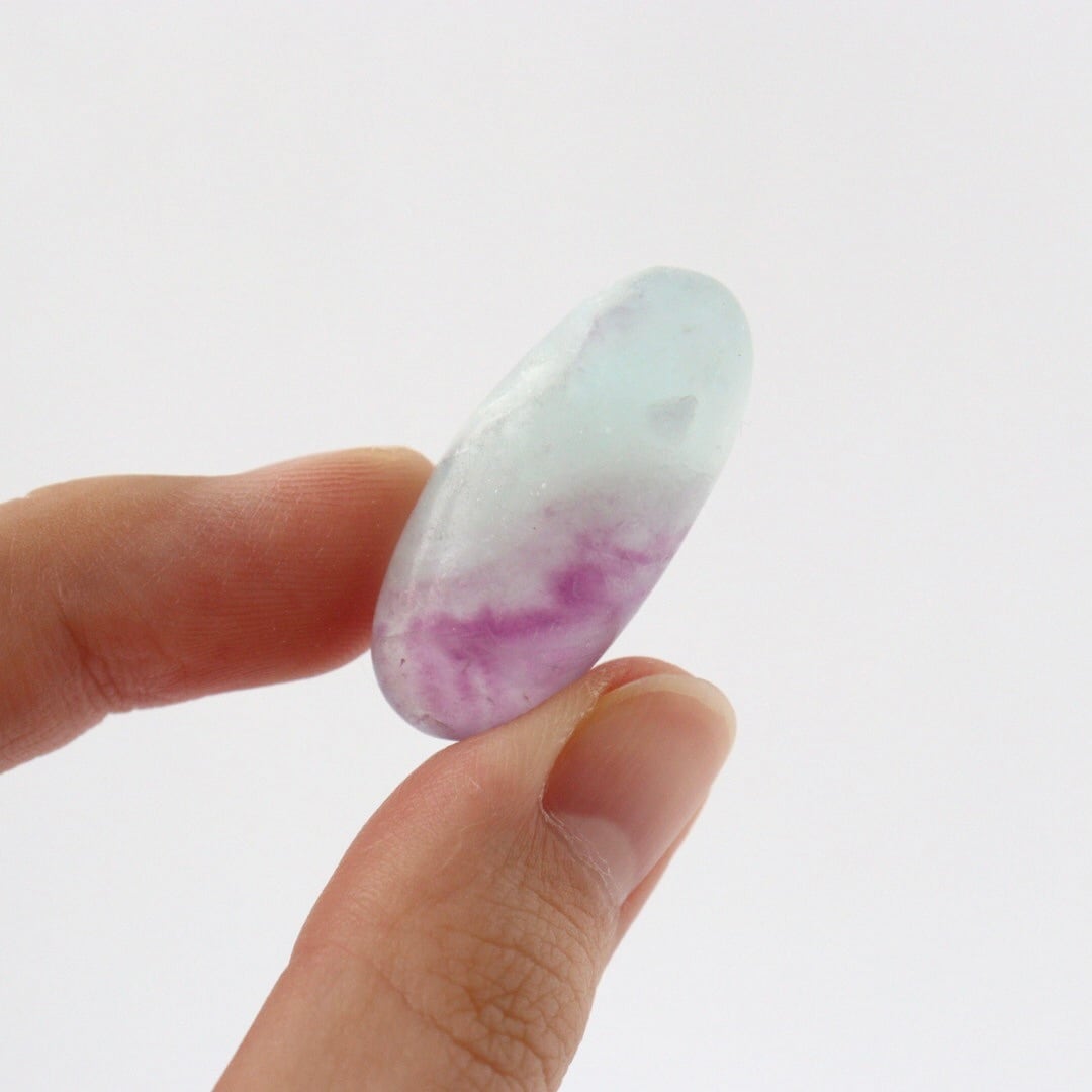 透き通るブルーと華やかなパープルの結晶をもつブルーフローライトのタンブル。
