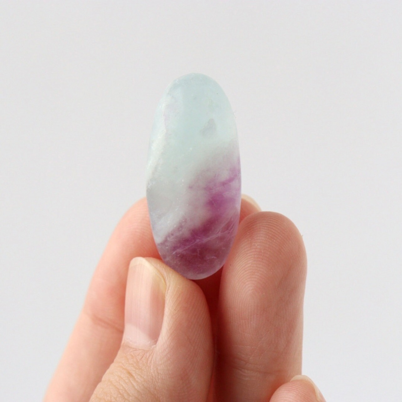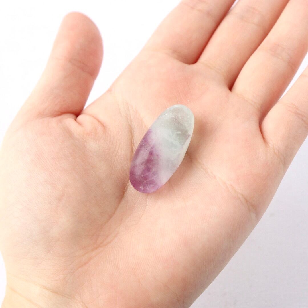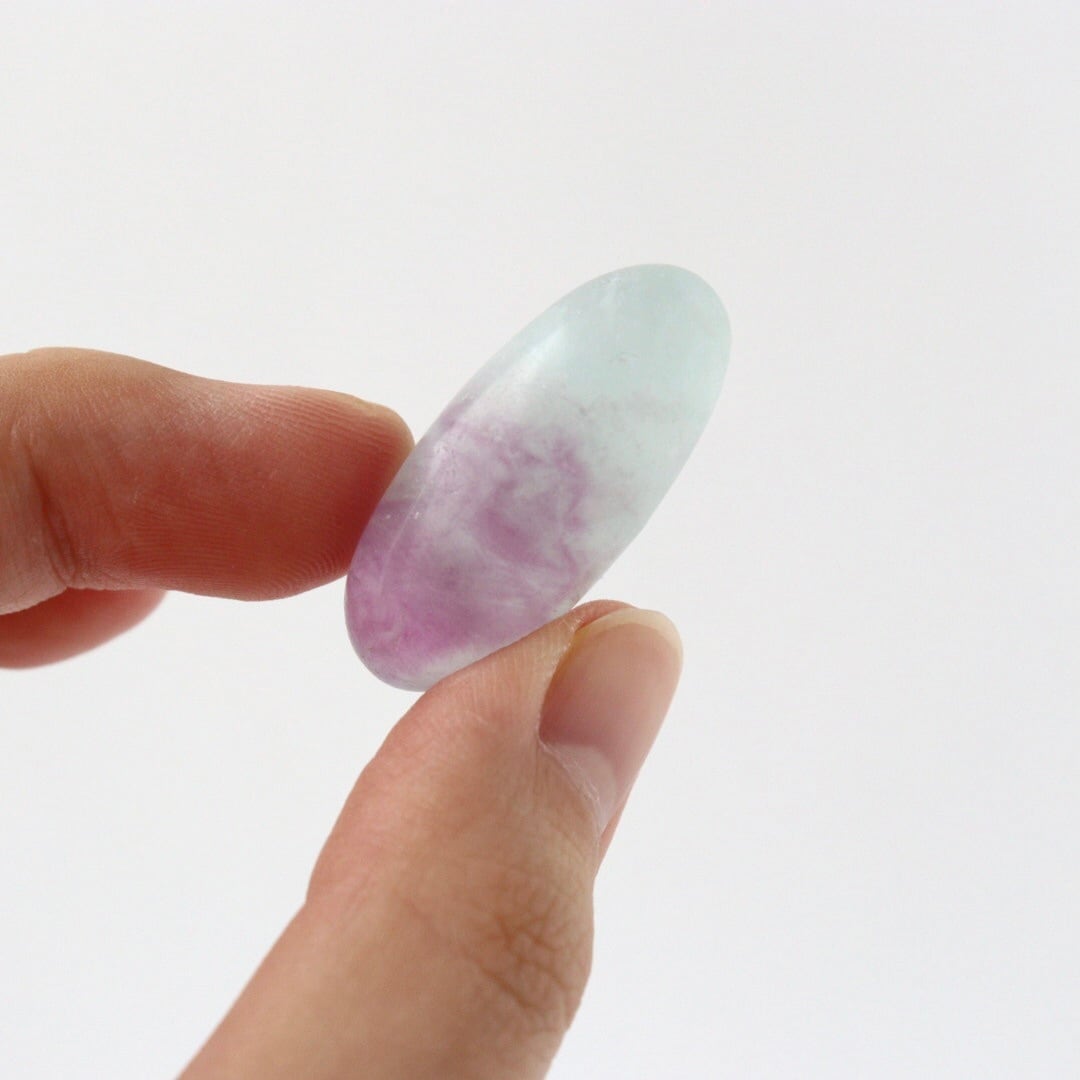透き通るブルーと華やかなパープルの結晶をもつブルーフローライトのタンブル。