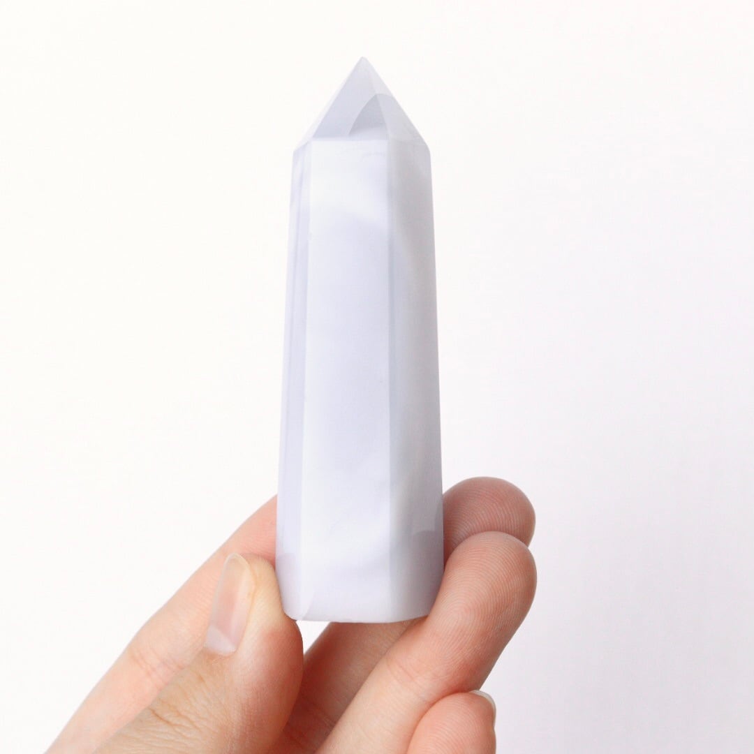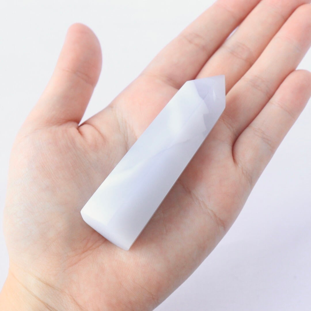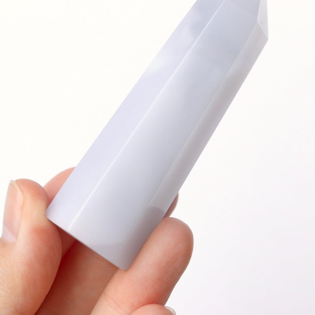 ペールラベンダー色が印象的な、ブルーカルセドニーのタワー。