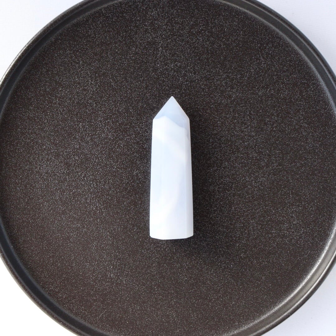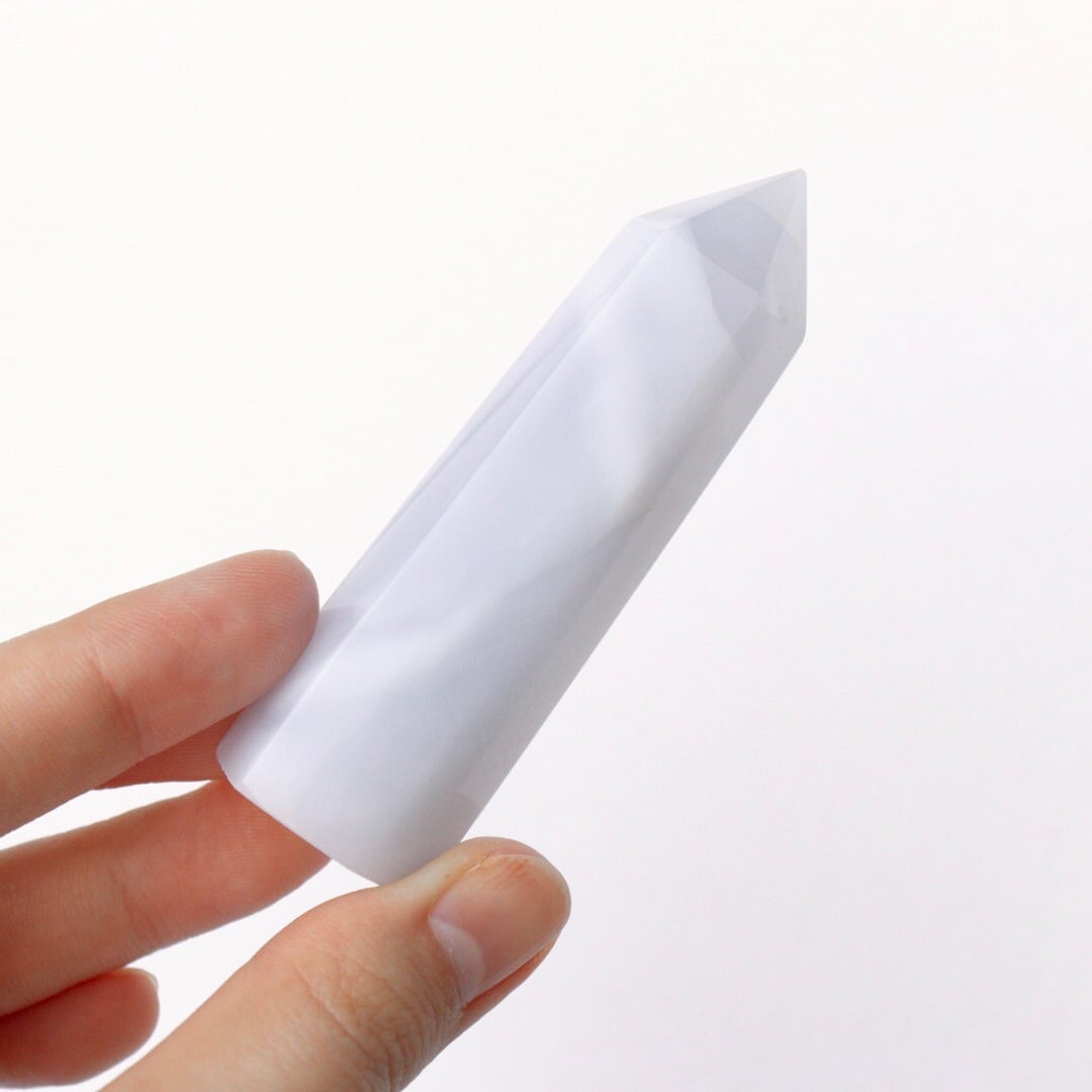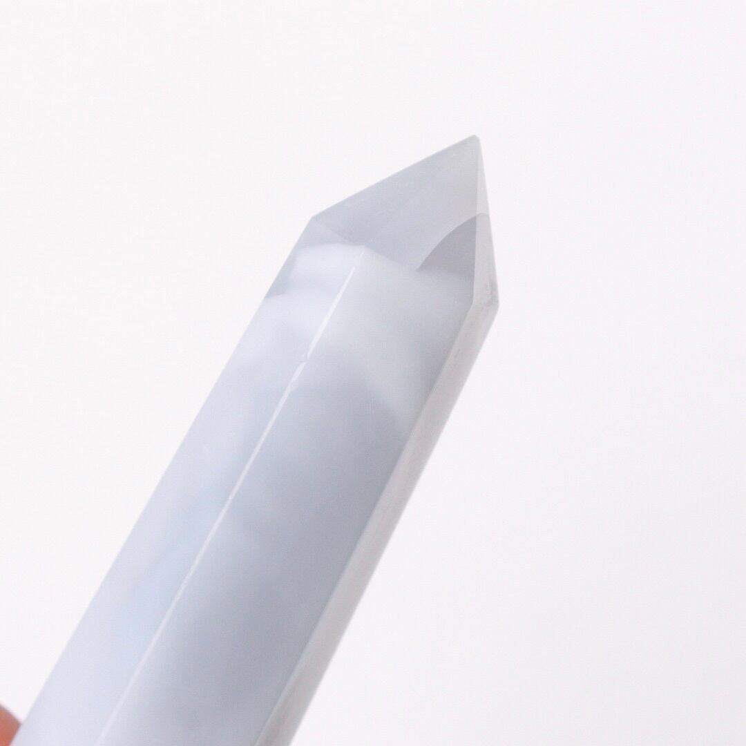 ペールラベンダー色が印象的な、ブルーカルセドニーのタワー。