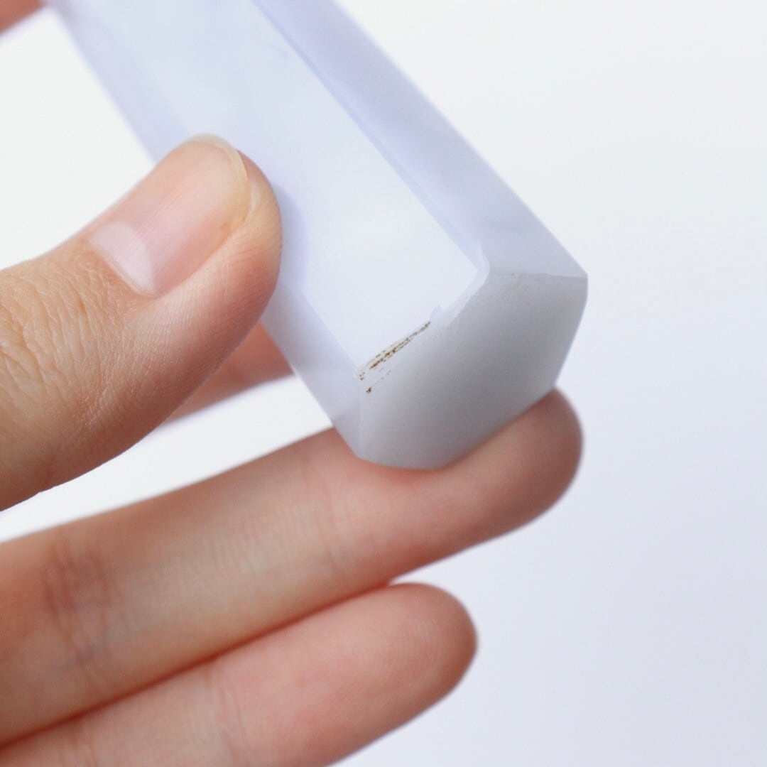 一見不透明に見えますが、光を当てると透き通るほどの透明感のあるブルー。