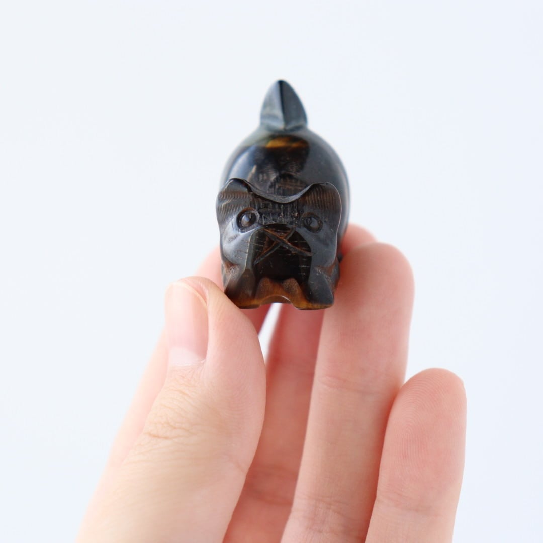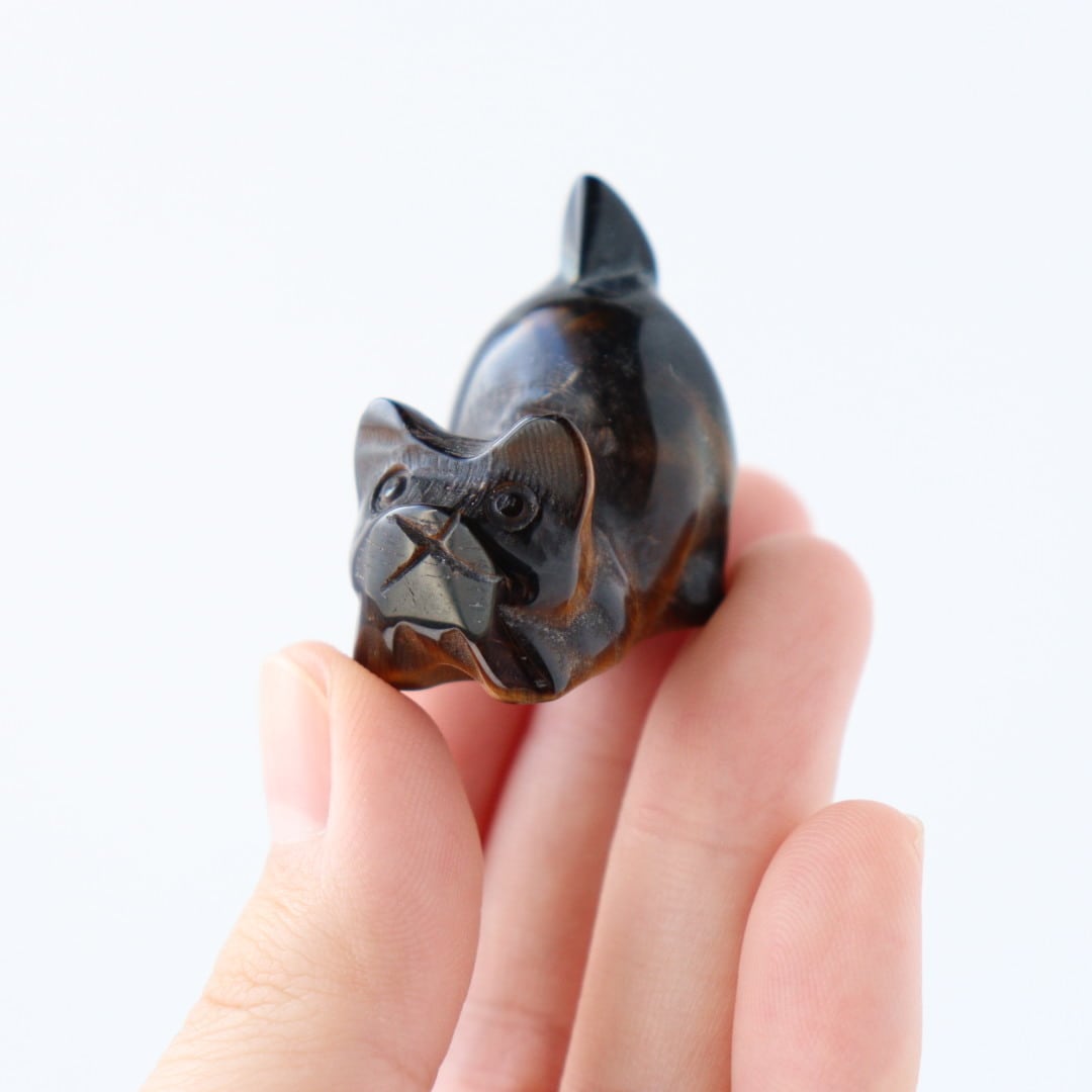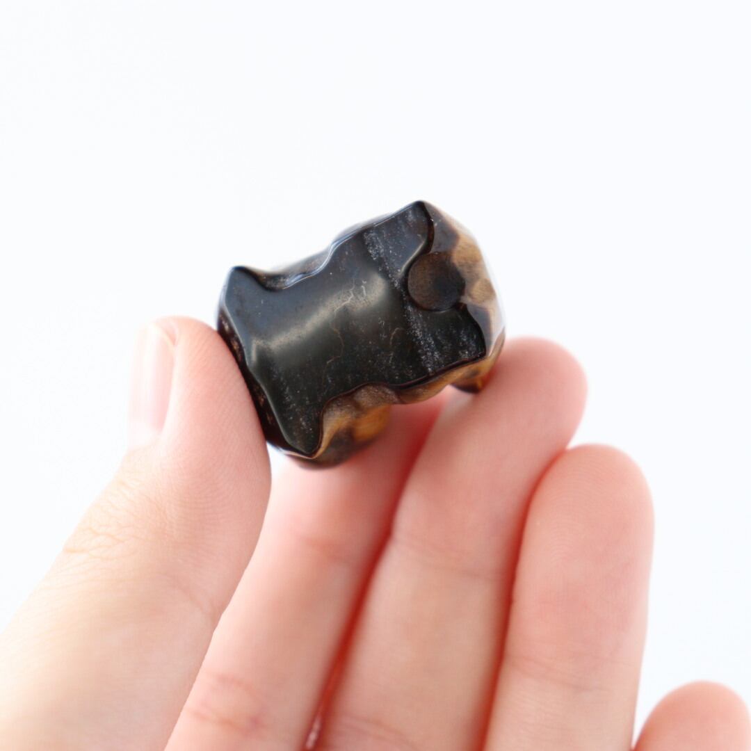 こちらは、一見すると黒に近い落ち着いた色合いですが、光を受けるとタイガーアイ特有のゴールドの輝きがはっきりと浮かび上がります。