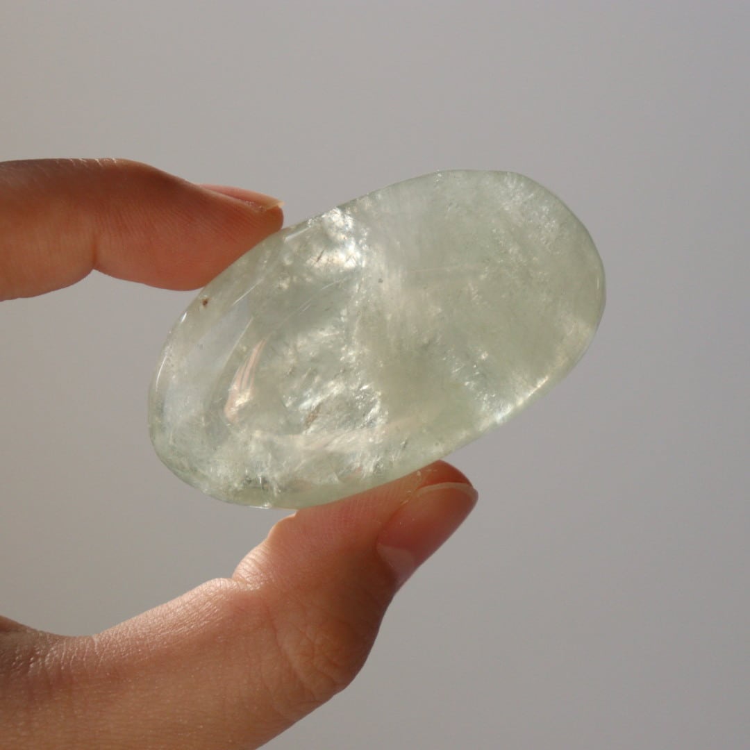 透明な美しい結晶を手に取り眺めると淡いグリーンの輝きが疲れてしまったこころを優しく包み、リラックスさせてくれます。