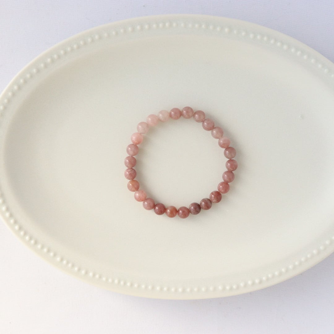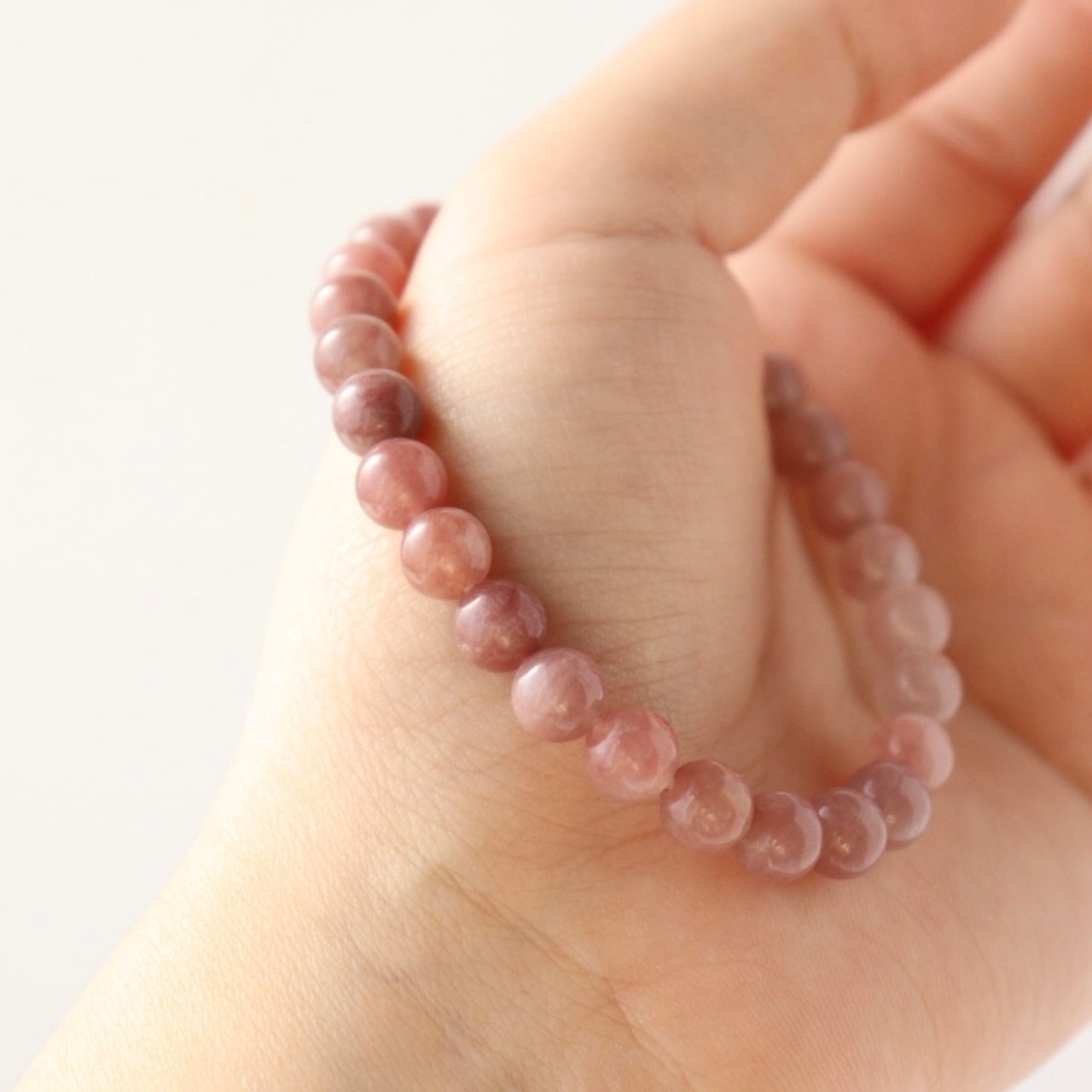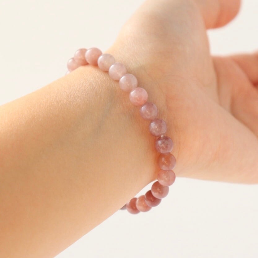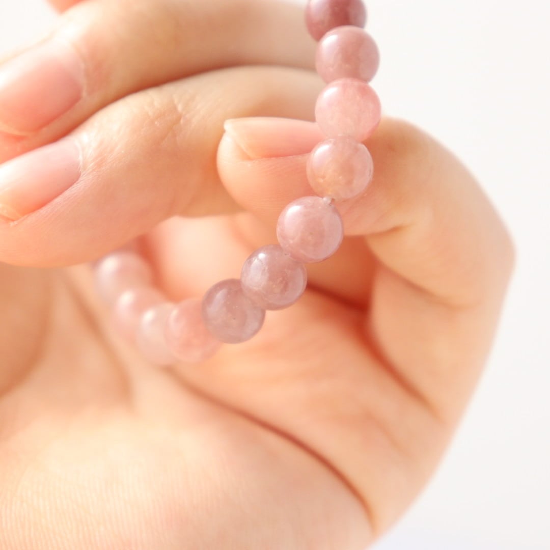 やわらかなピンクが光を通してふわりと浮かび上がる、ピンクアベンチュリンのブレスレット。