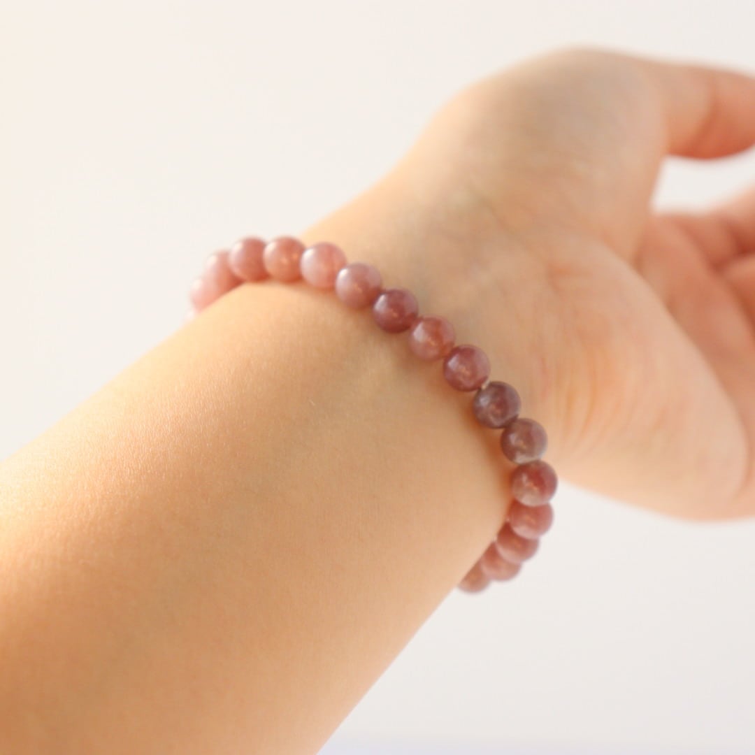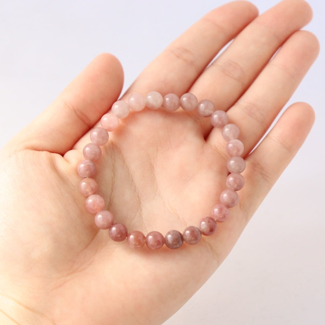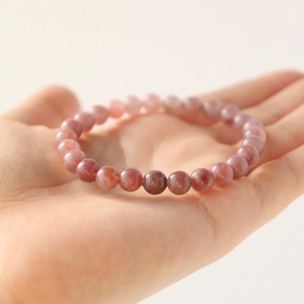 やわらかなピンクが光を通してふわりと浮かび上がる、ピンクアベンチュリンのブレスレット。