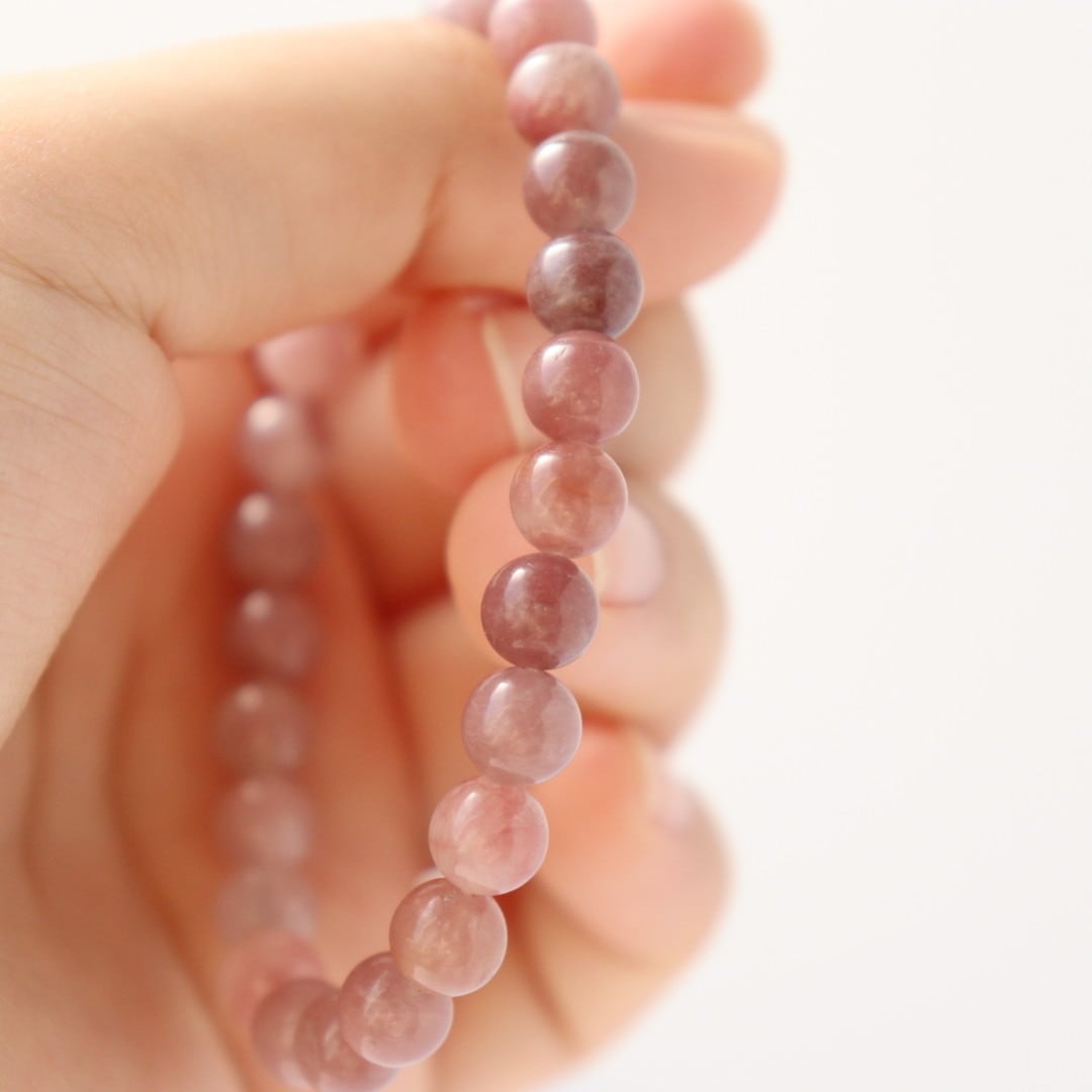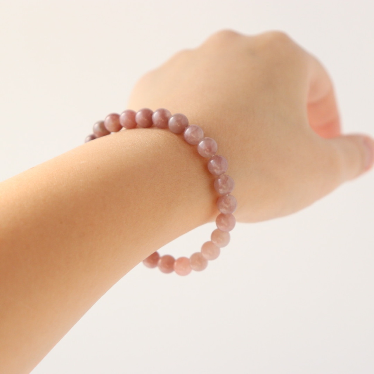 こちらは、光を透かすことでピンクの発色がよりはっきりと感じられるブレスレット。