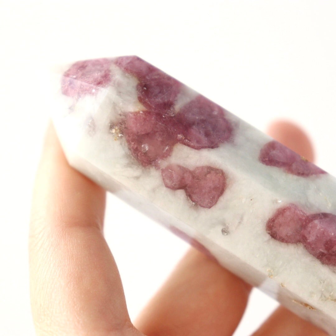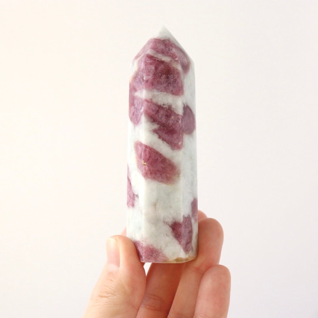 桜の花びらが散りばめられたようなピンクトルマリンのタワー。