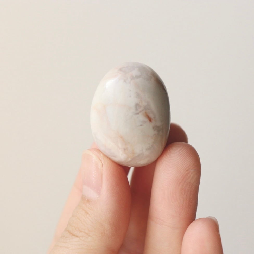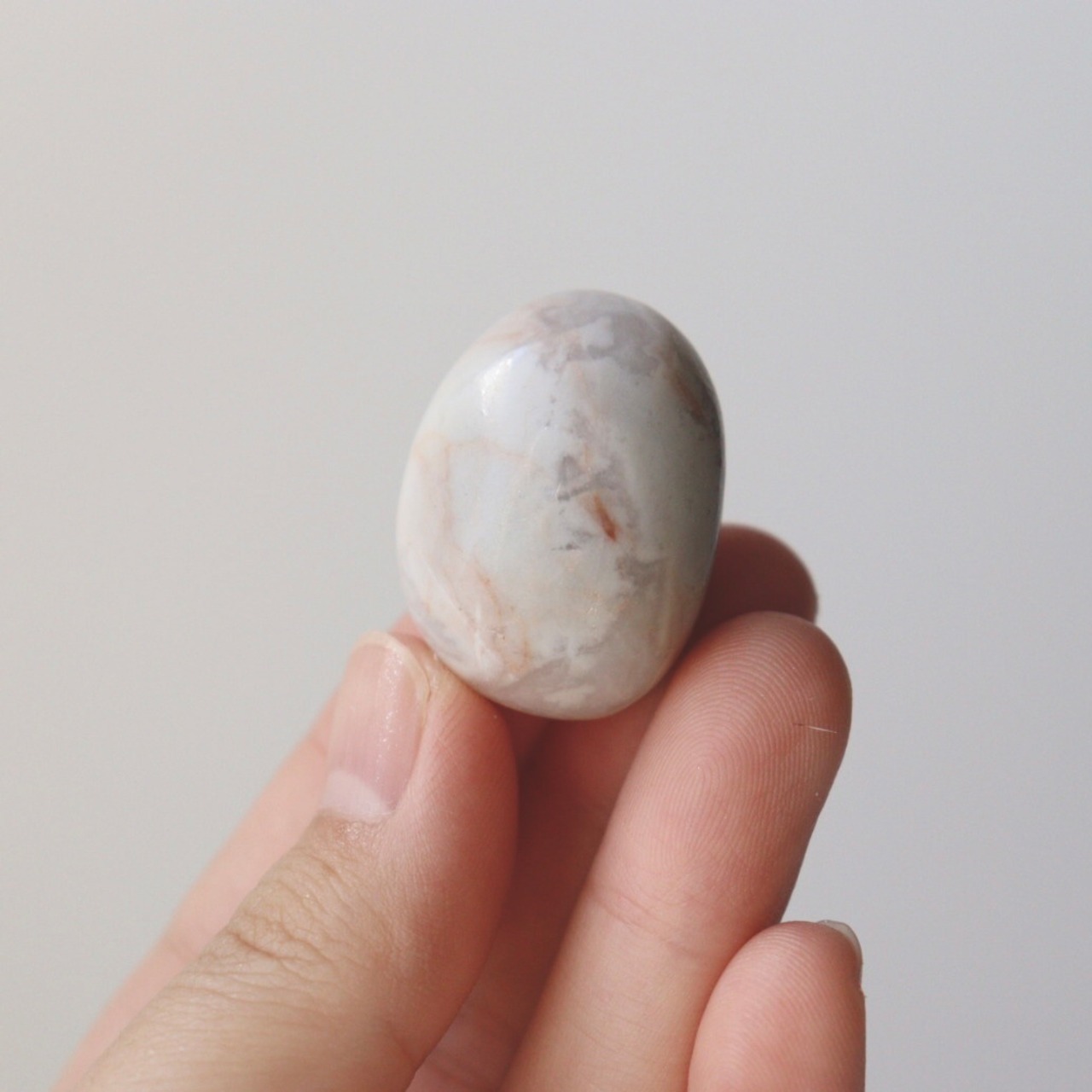 やわらかなホワイトを纏うホワイトアゲートのタンブル。