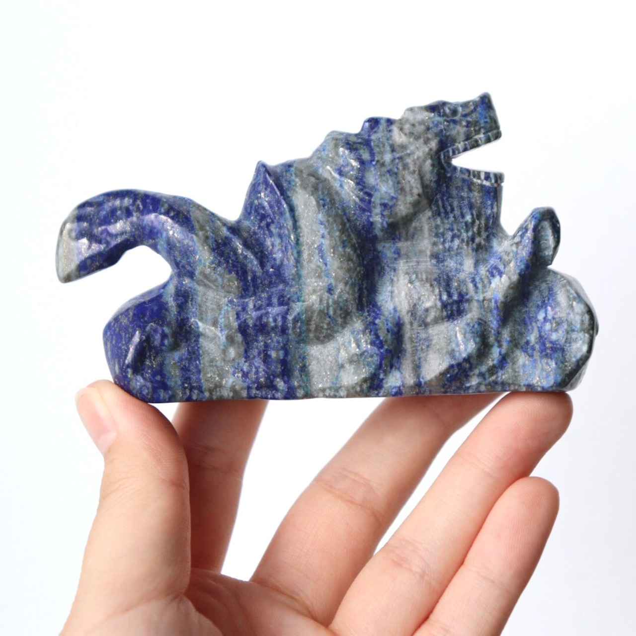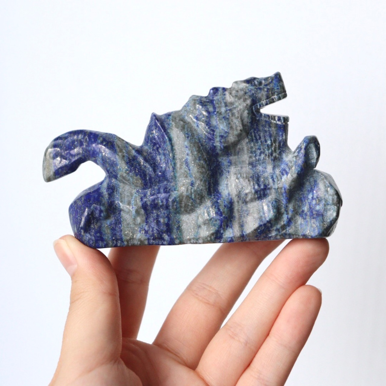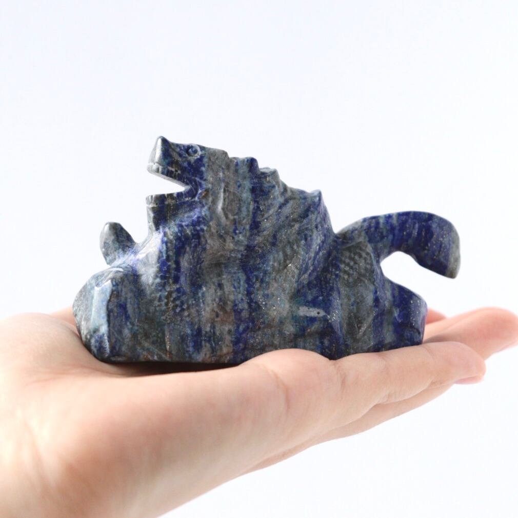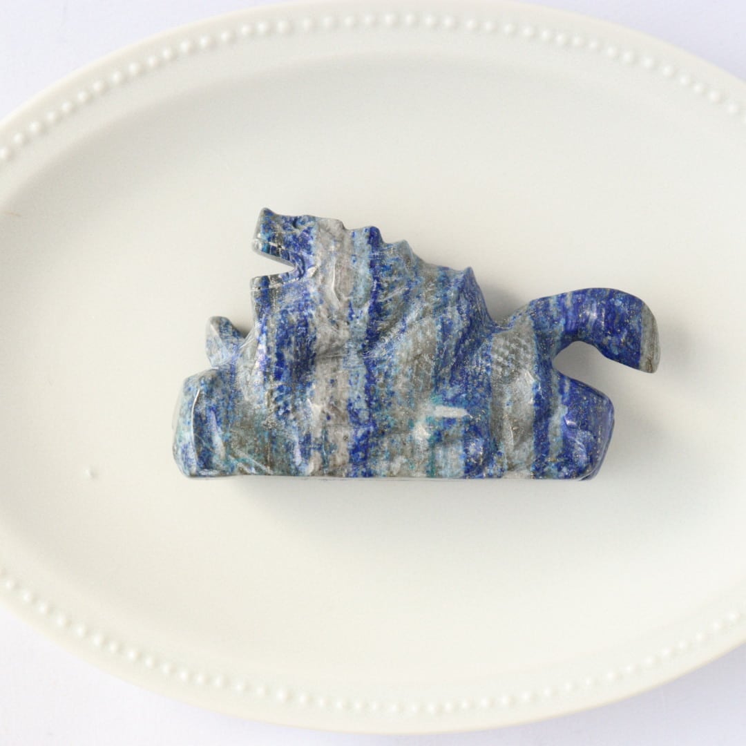 こちらは、ブルーとグレーにゴールドが散りばめられたラピスラズリの龍。