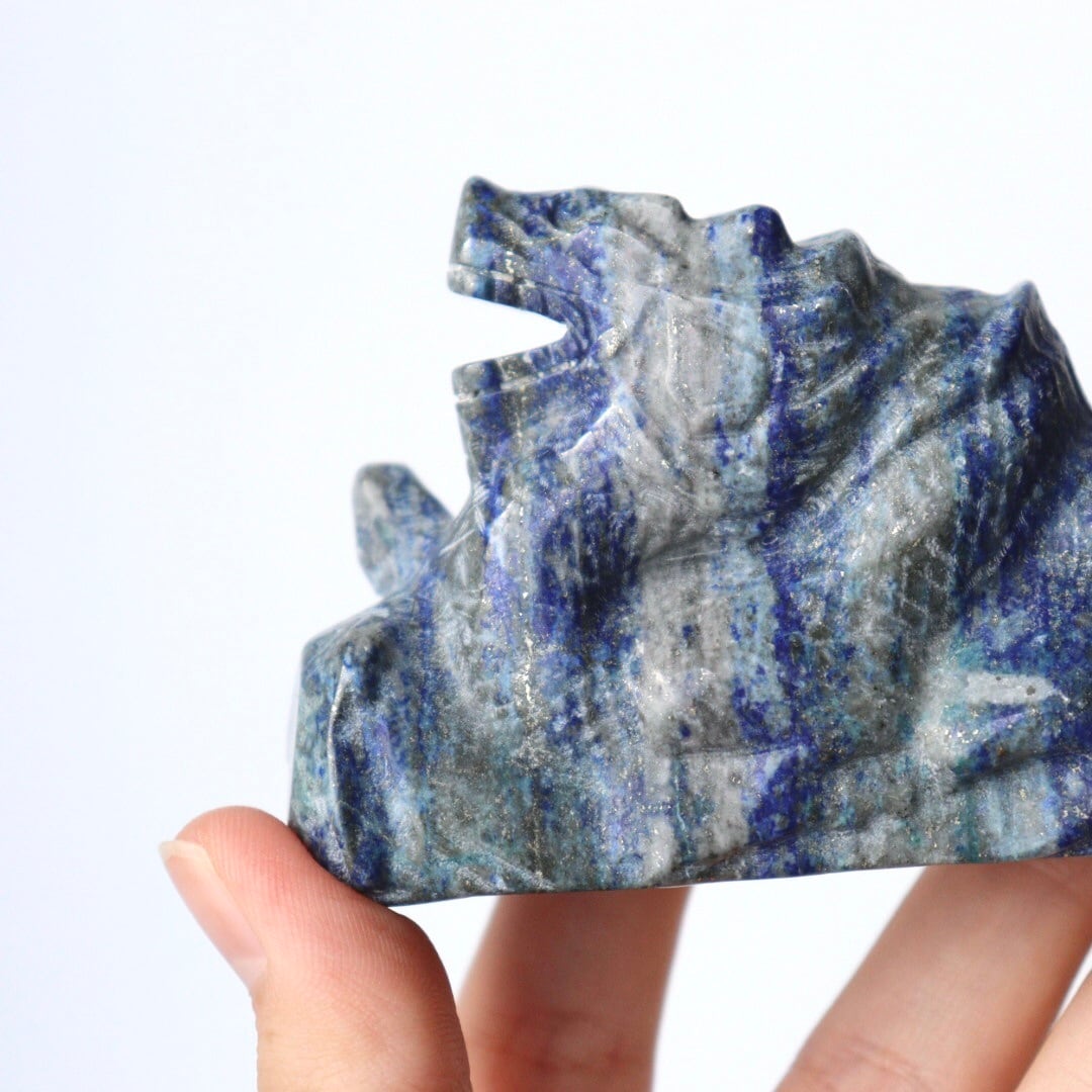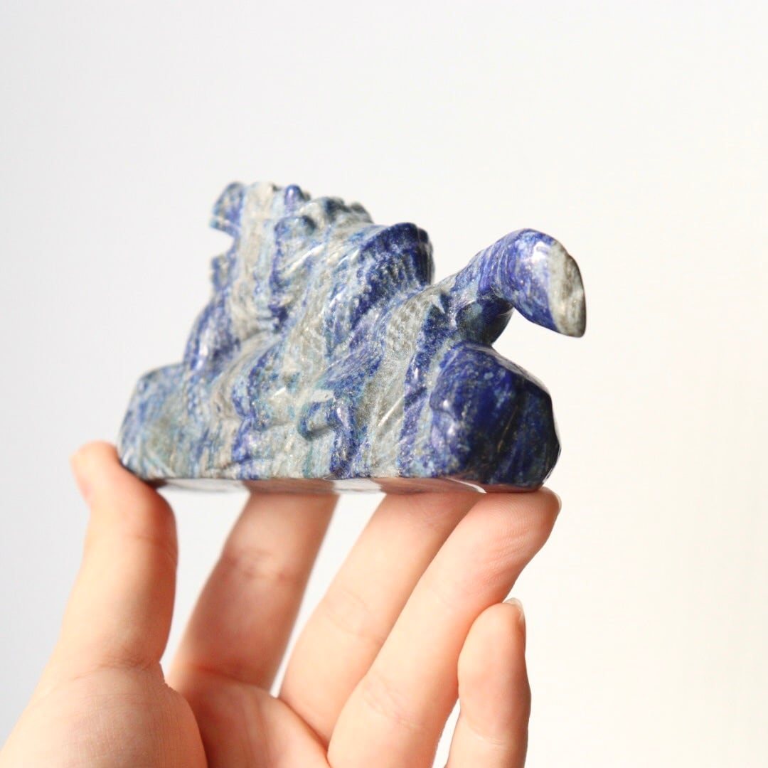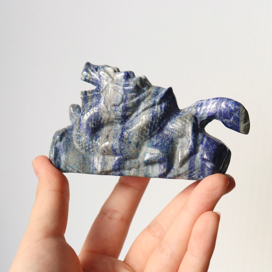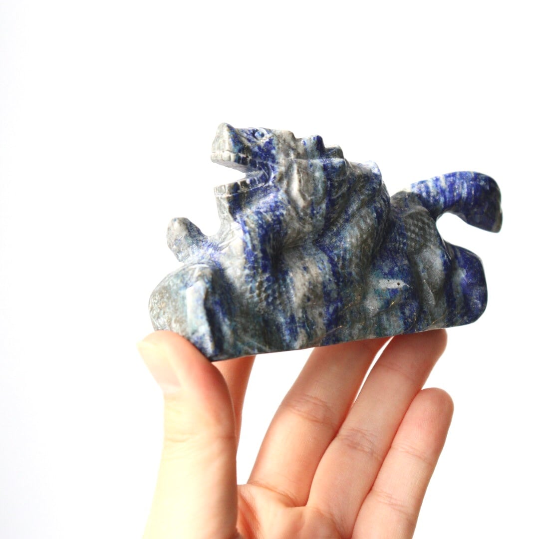 こちらは、ブルーとグレーにゴールドが散りばめられたラピスラズリの龍。