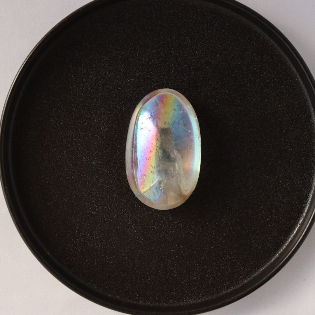 内部構造の希少性が際立つ一方、表面のエンジェルオーラ加工(金属による蒸着)は一部に摩耗や剥がれが見られます。また、石面由来の小さなへこみも数か所ございます。