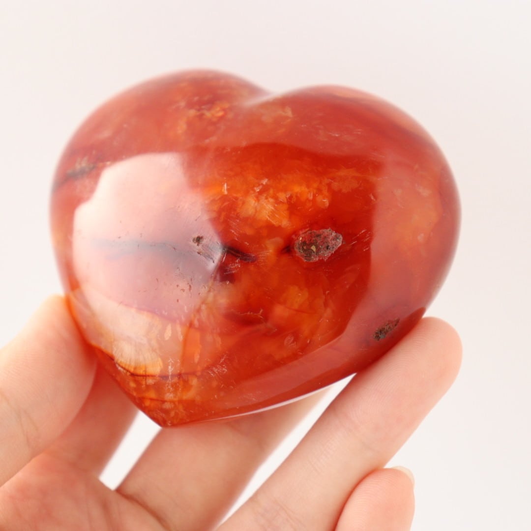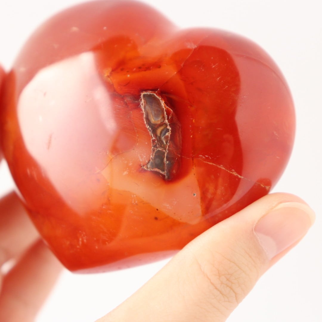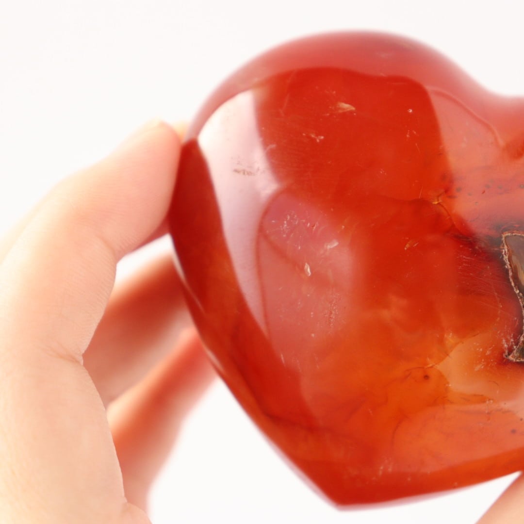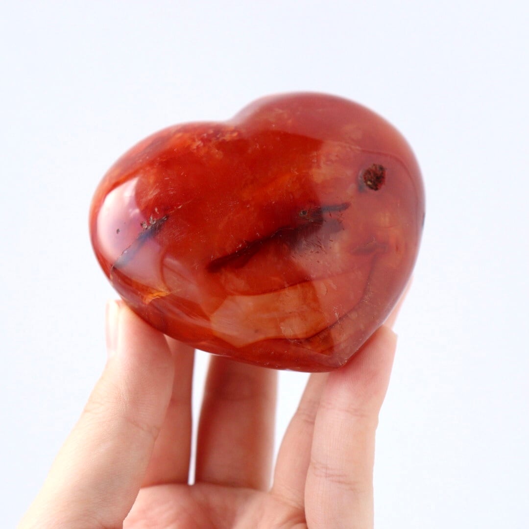 こちらは、アゲートらしい透明感をしっかりと残しながら、濃い赤色に発色したレッドアゲートのハート。