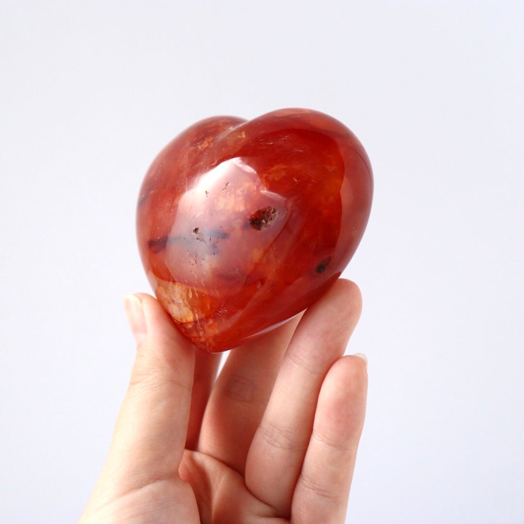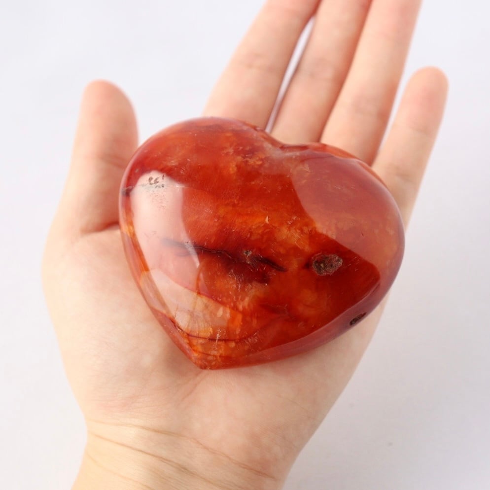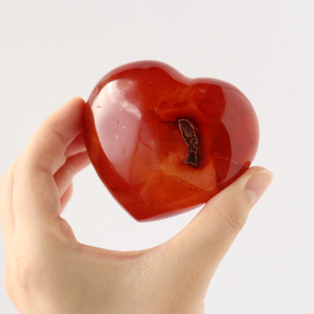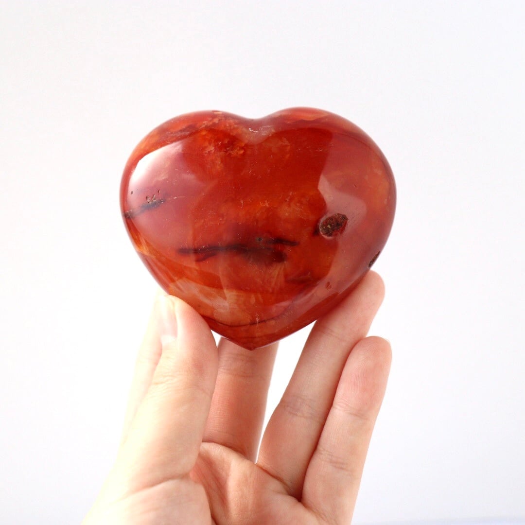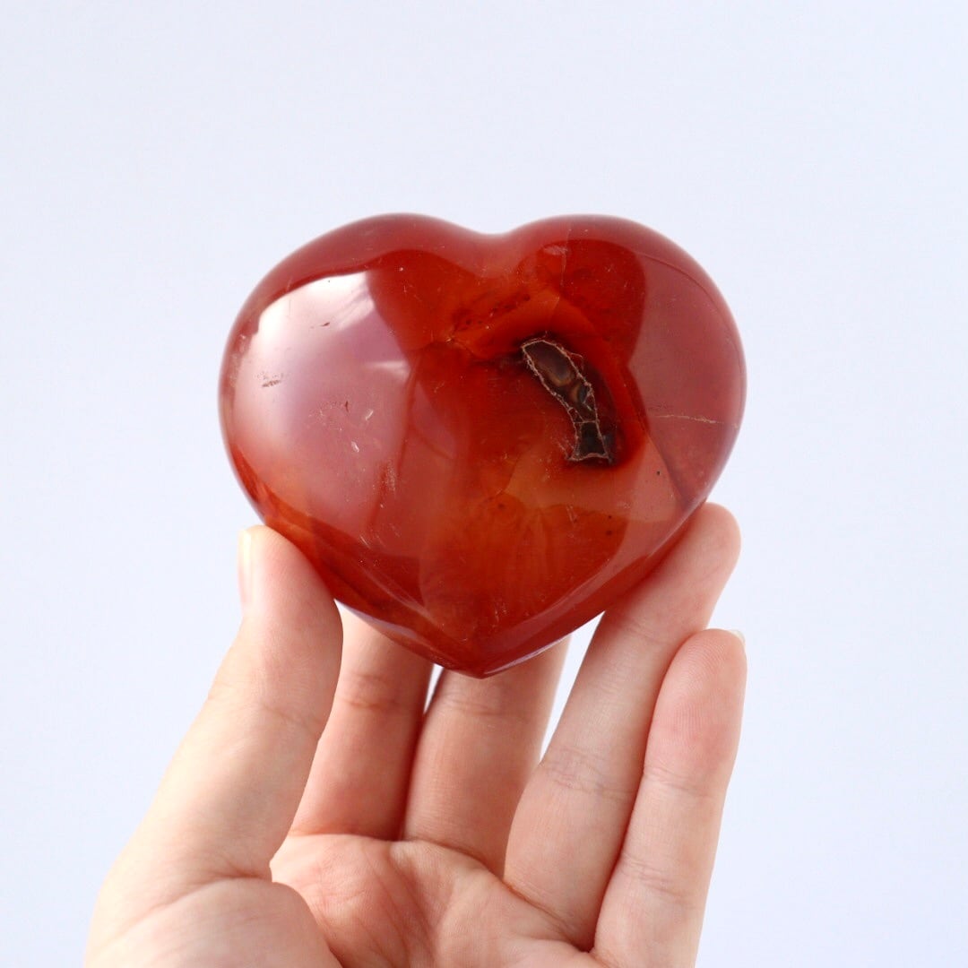 こちらは、アゲートらしい透明感をしっかりと残しながら、濃い赤色に発色したレッドアゲートのハート。