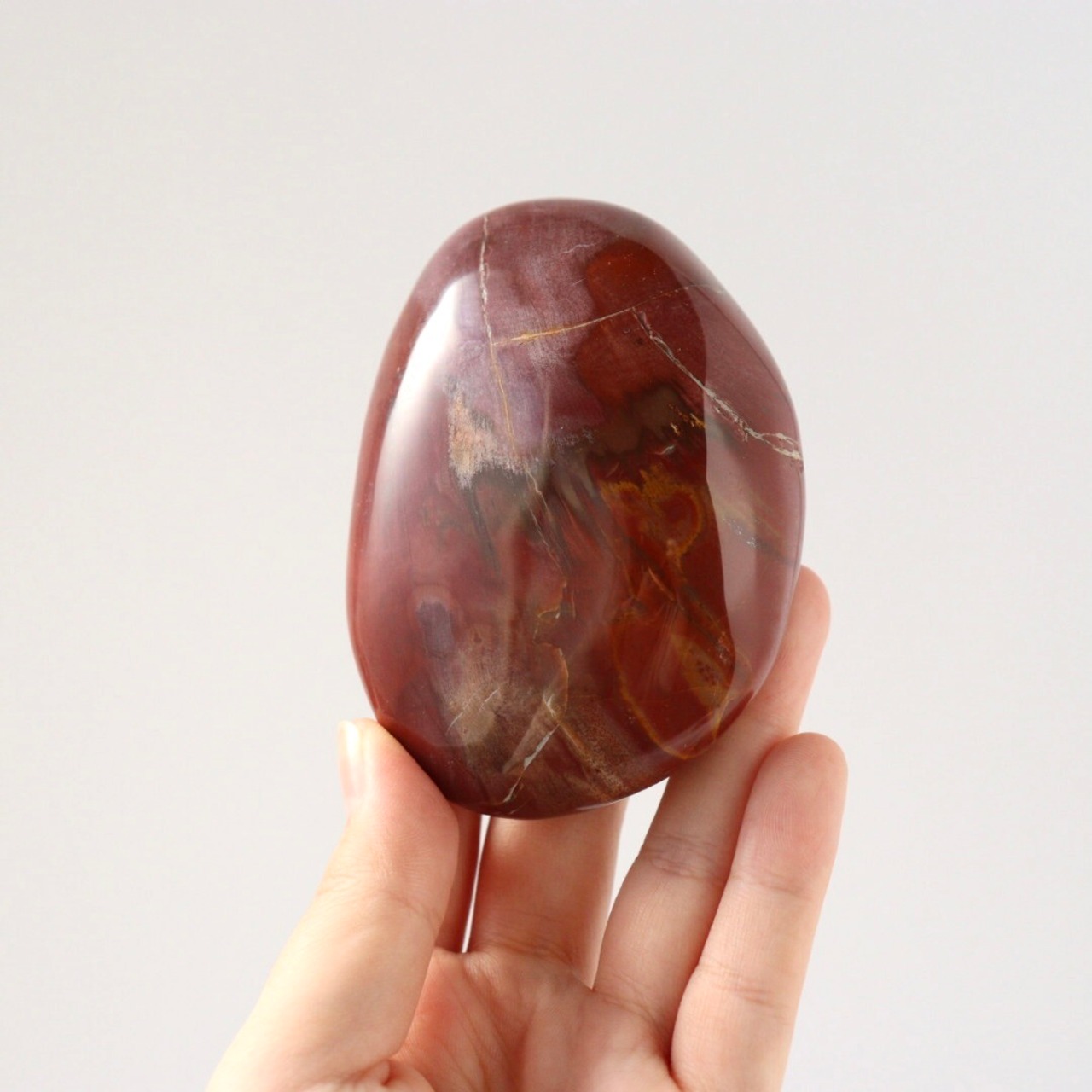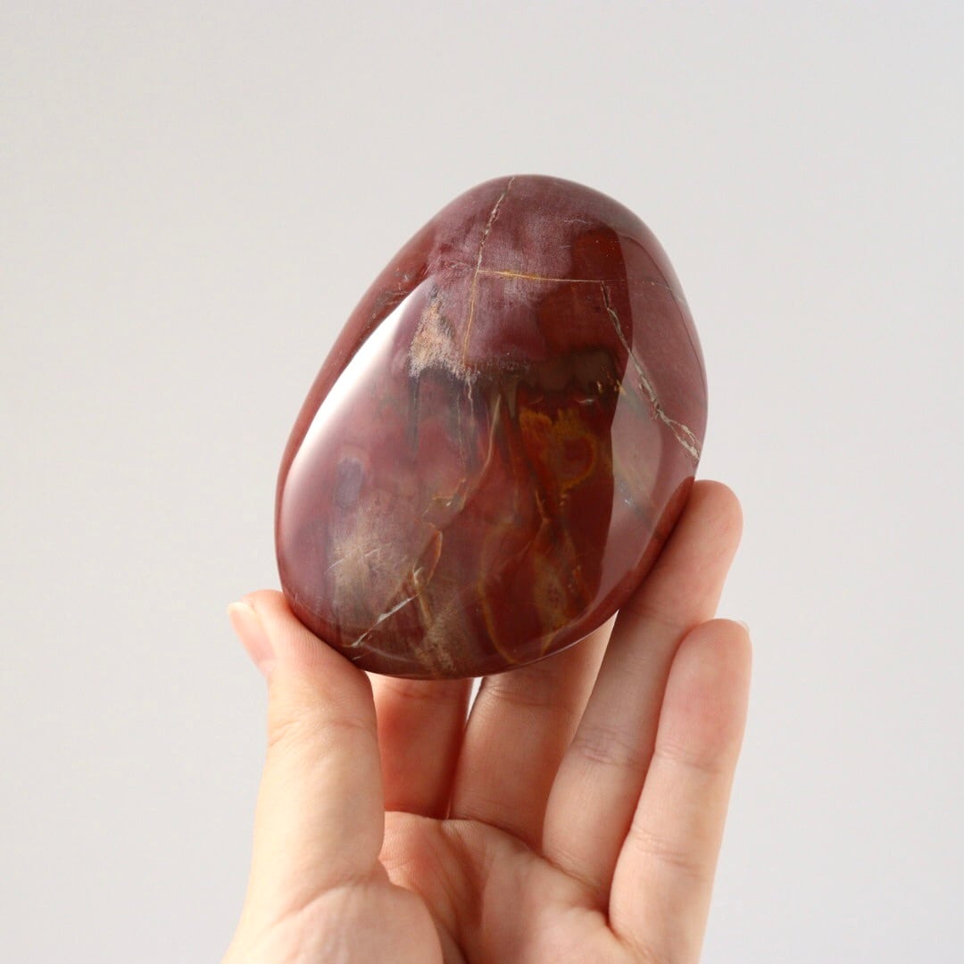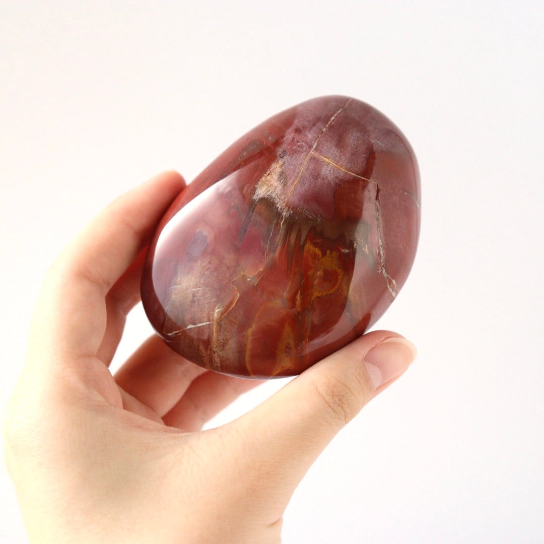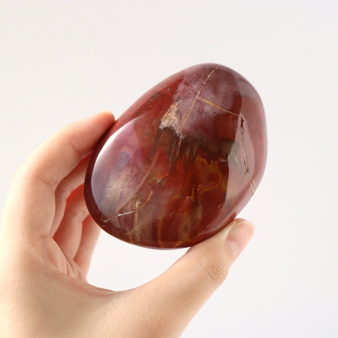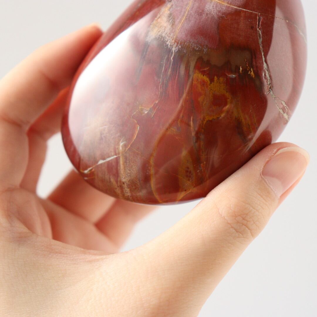 こちらは、大きな大きなペトリファイドウッドが磨かれた、大きな握り石。