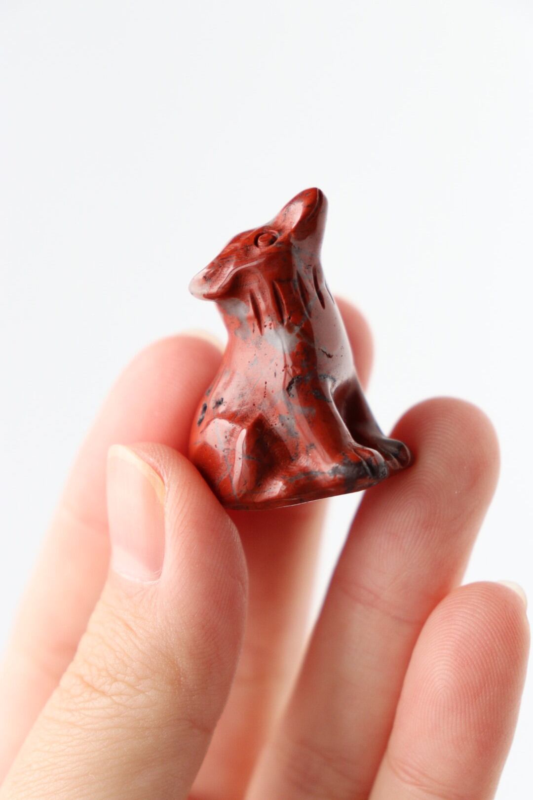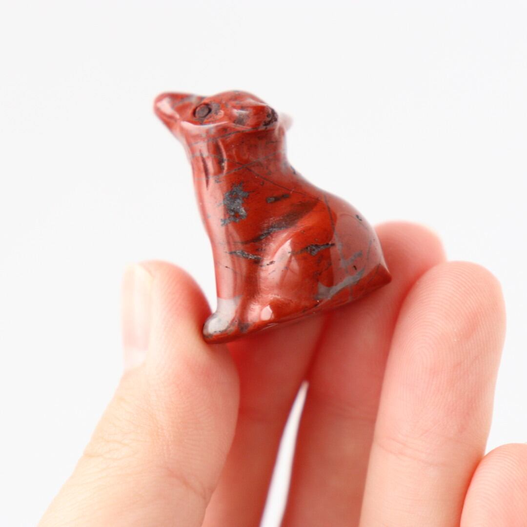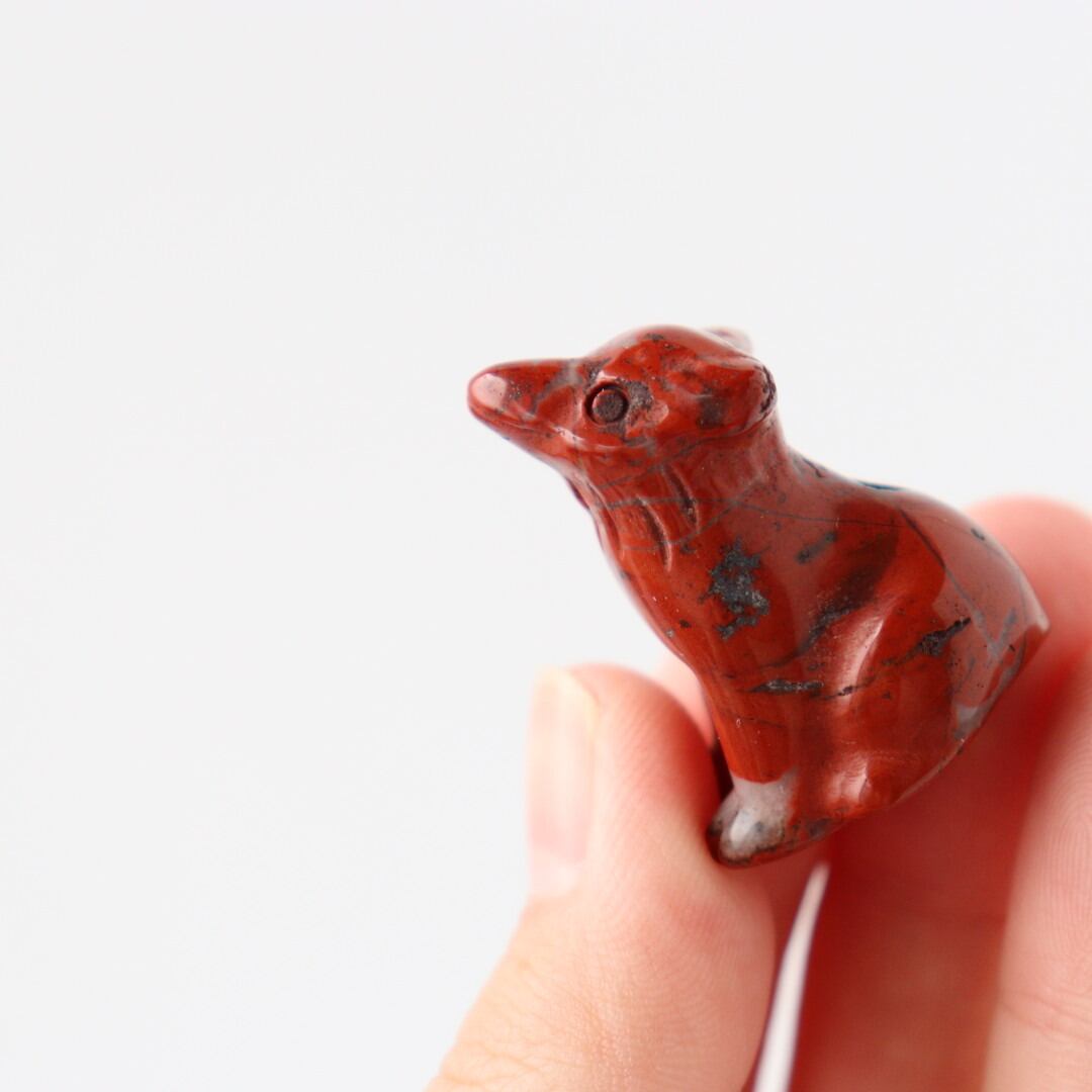 こちらのピースは、その赤色のジャスパーが狼の姿に丁寧に彫刻されたもの。