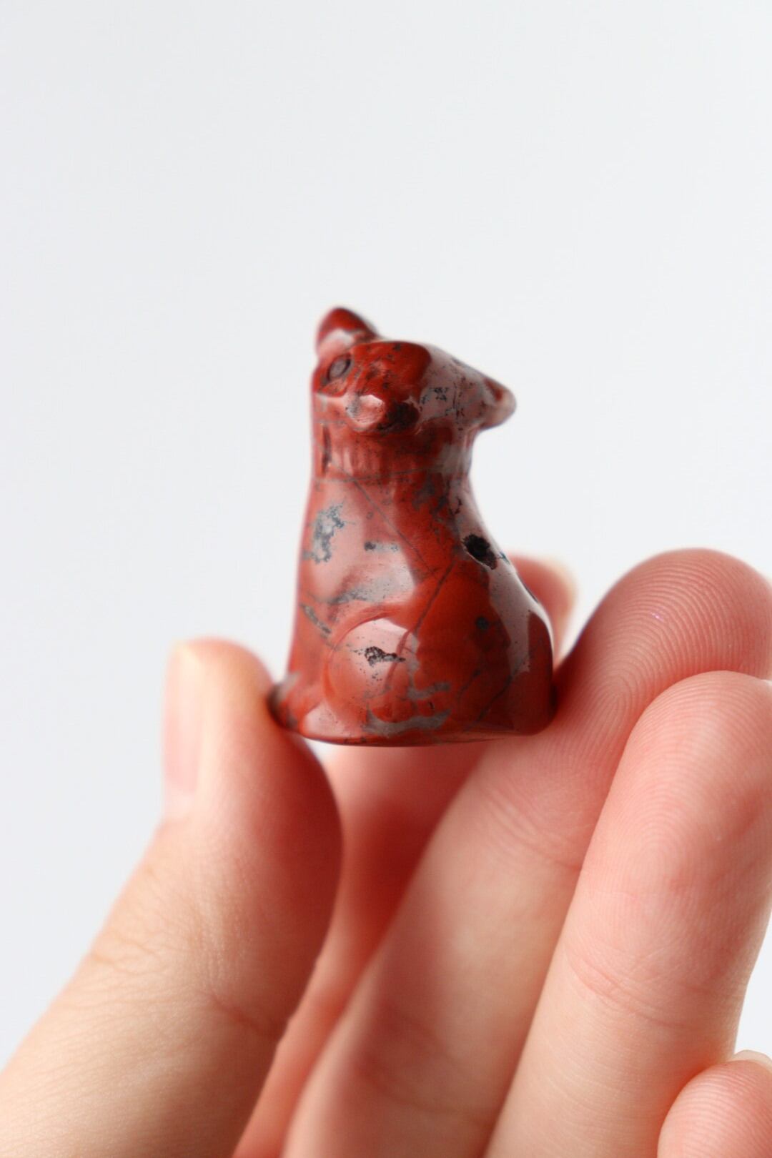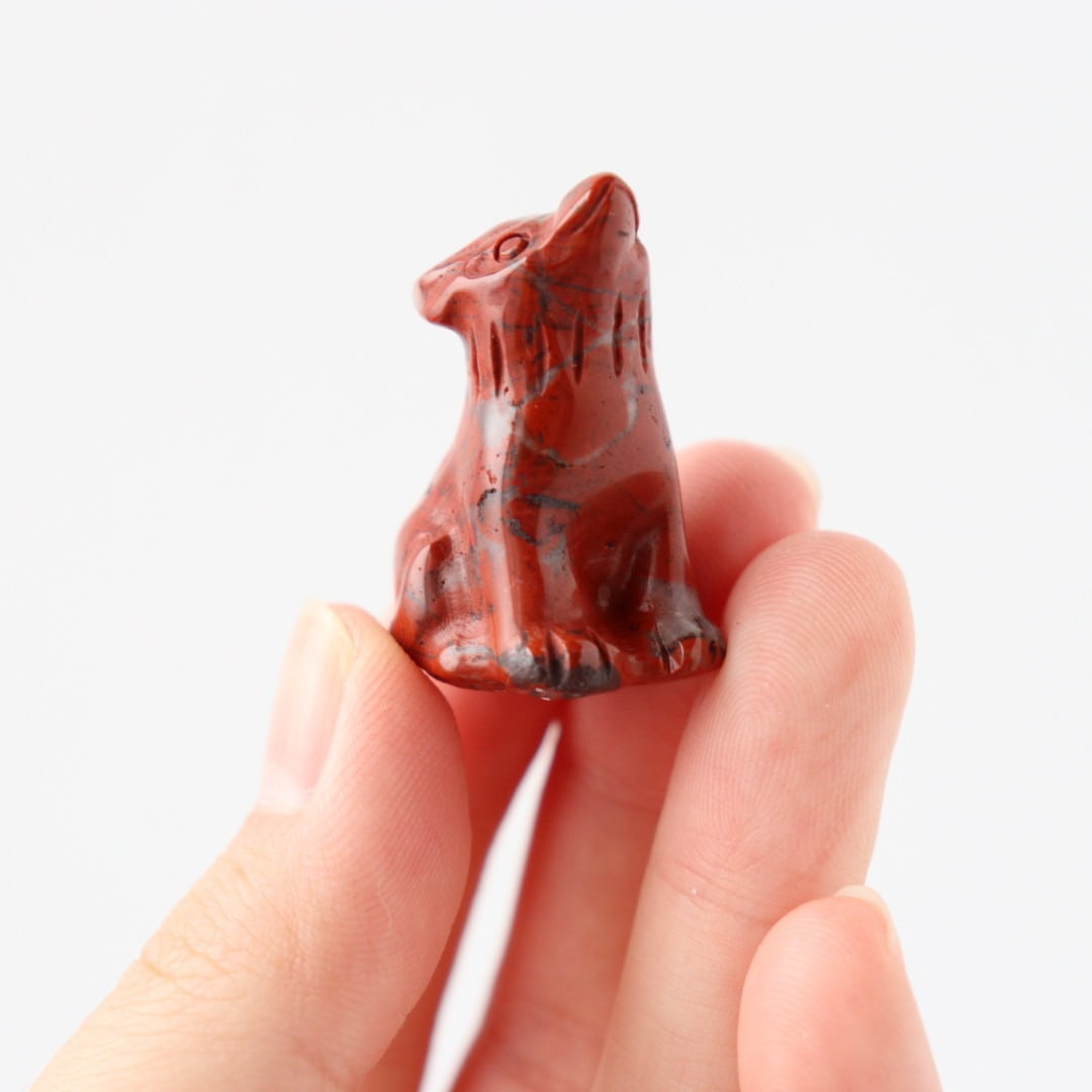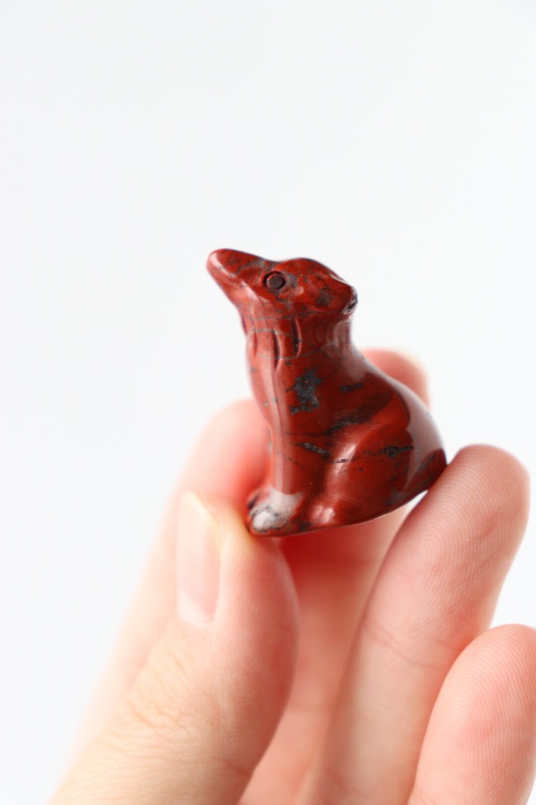 こちらのピースは、その赤色のジャスパーが狼の姿に丁寧に彫刻されたもの。