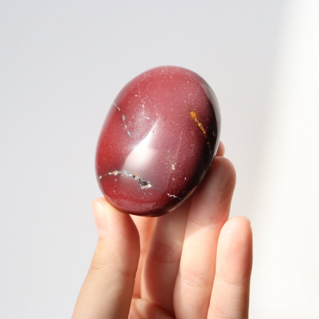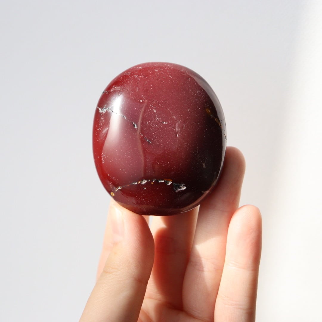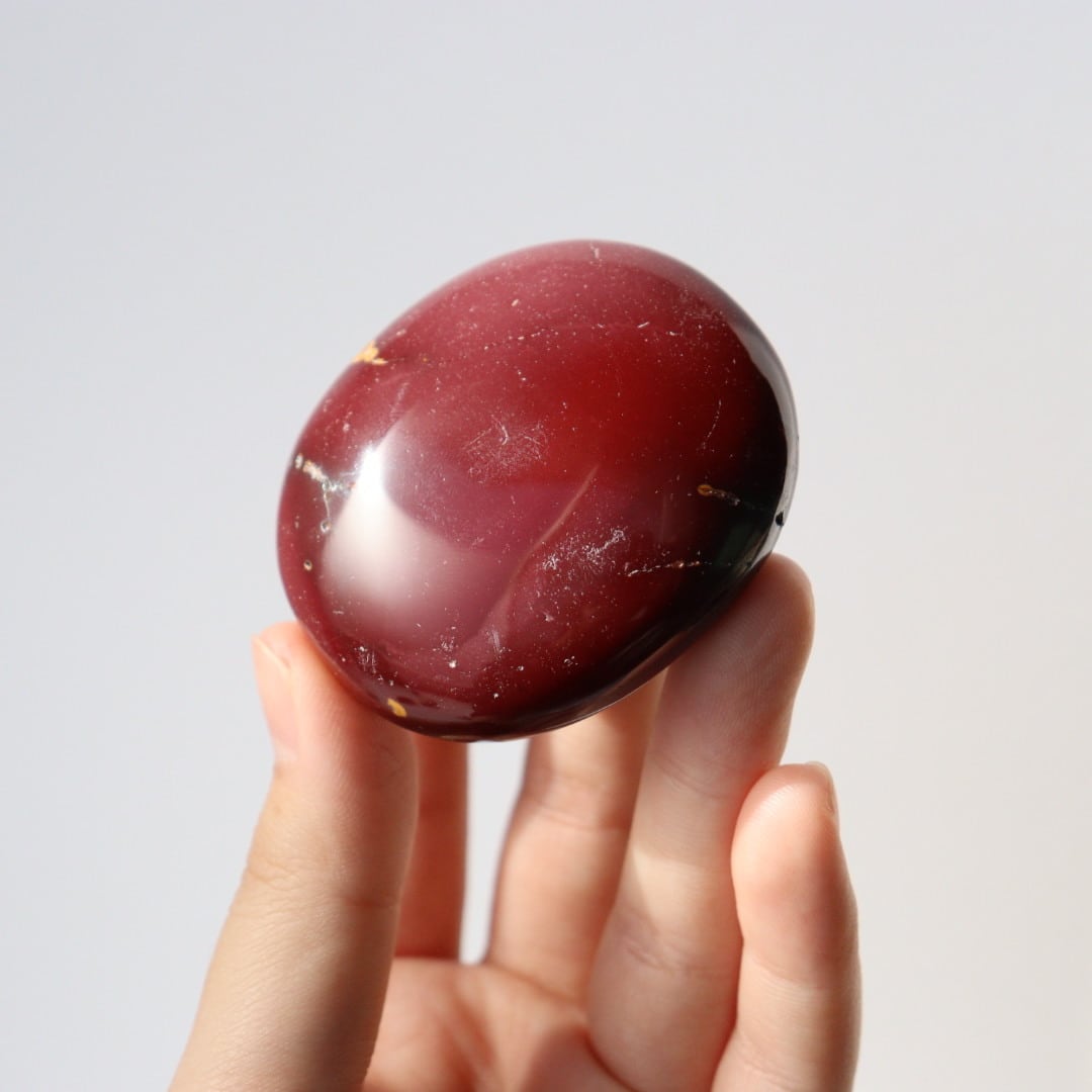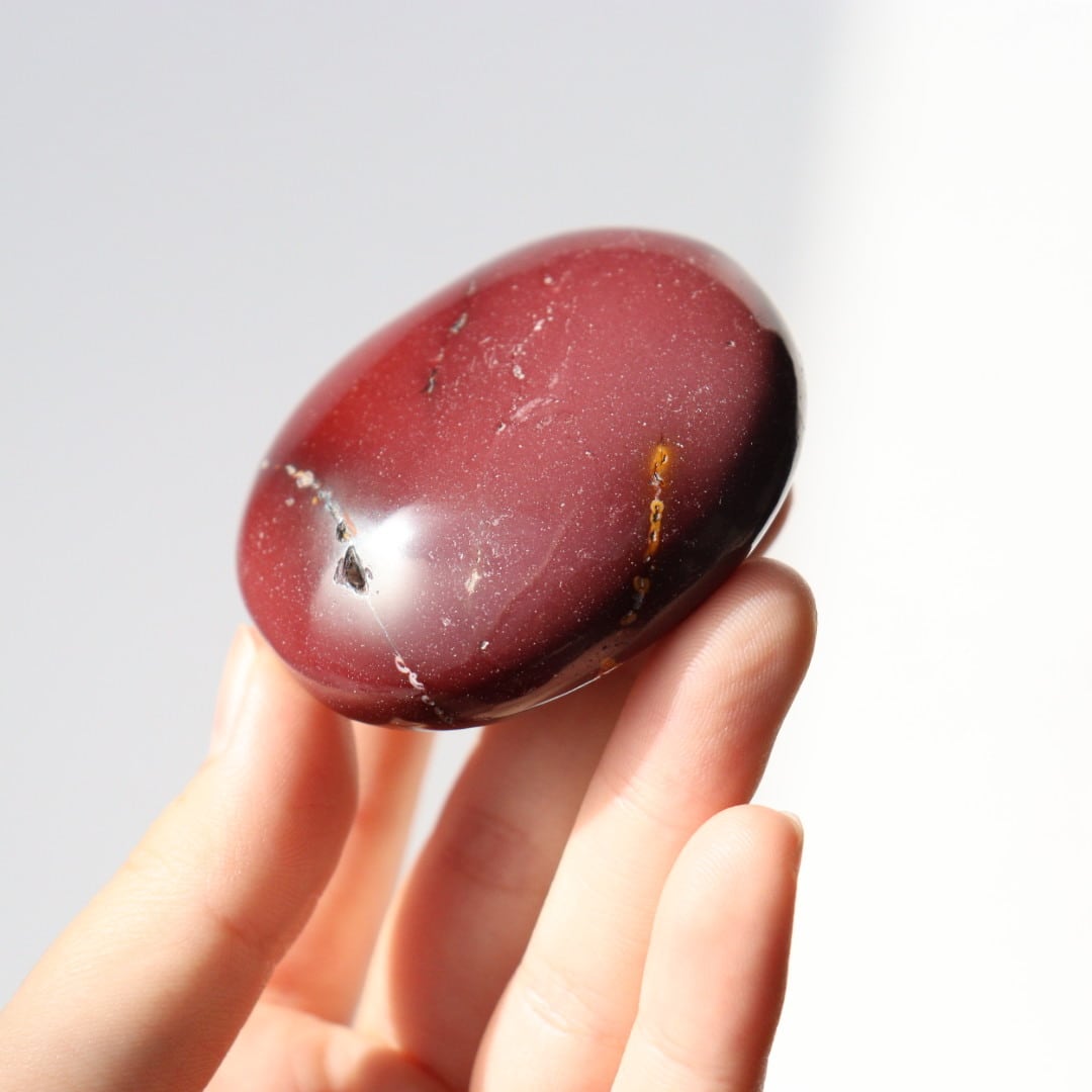 マットなワインレッドカラーが美しい、ムーアカイトの握り石。