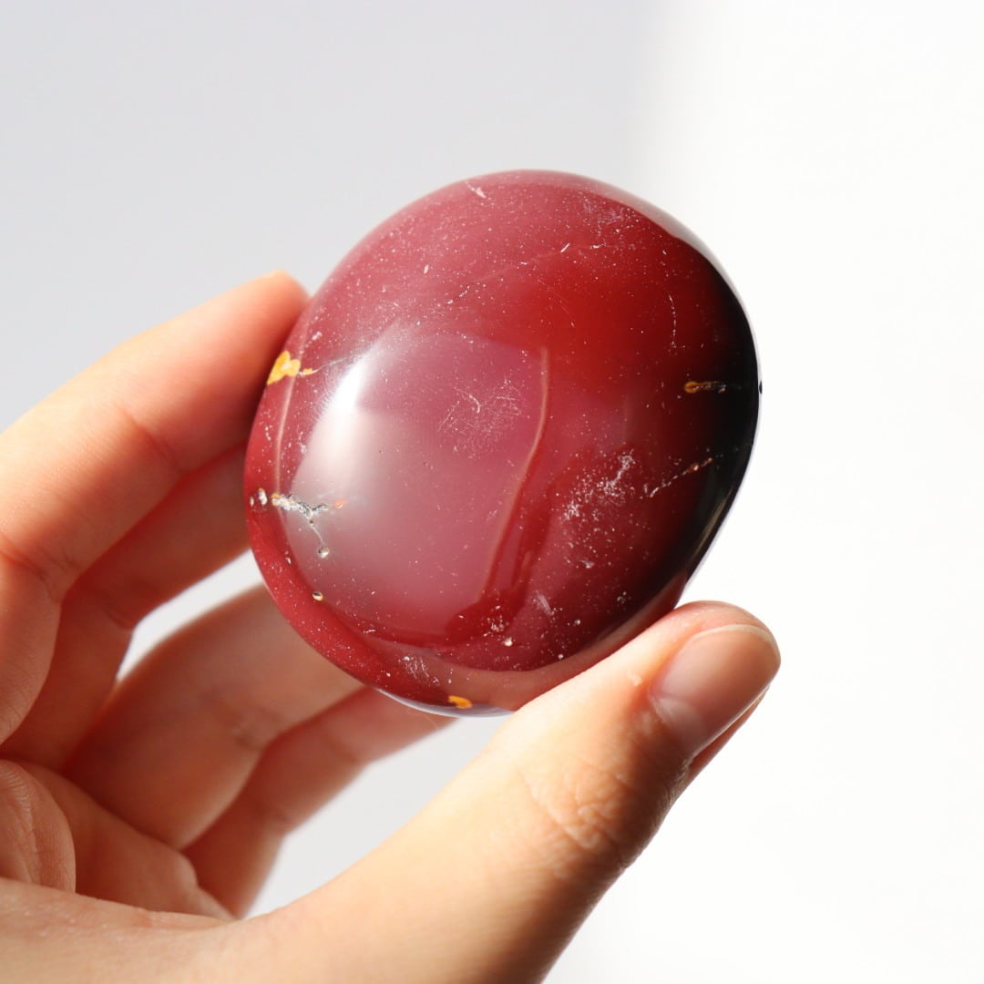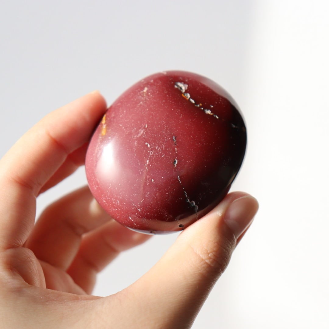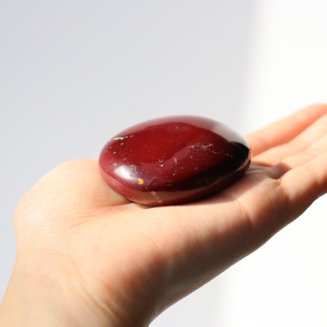 マットなワインレッドカラーが美しい、ムーアカイトの握り石。