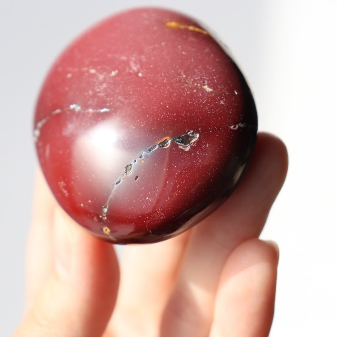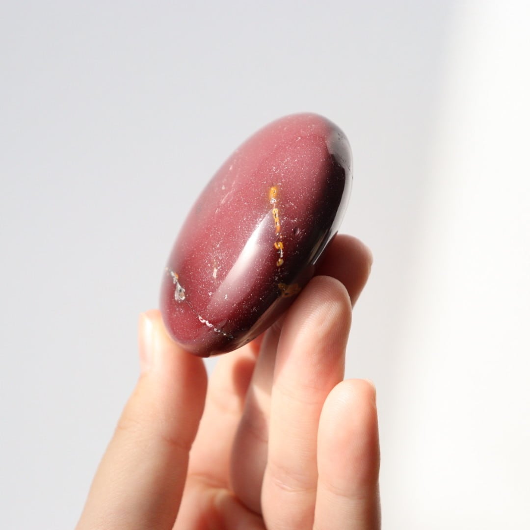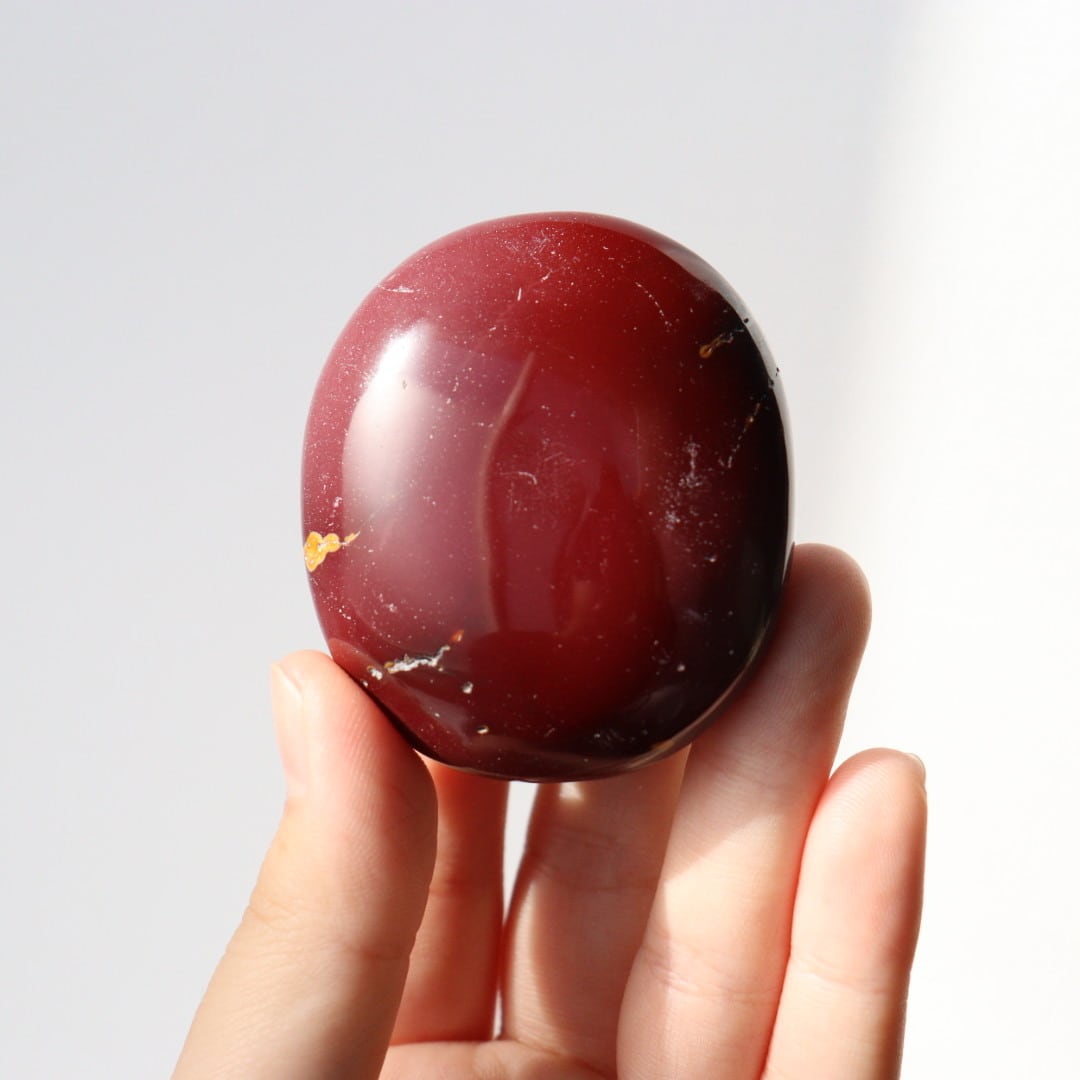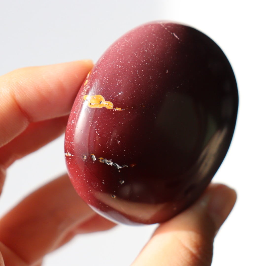 マットなワインレッドカラーが美しい、ムーアカイトの握り石。