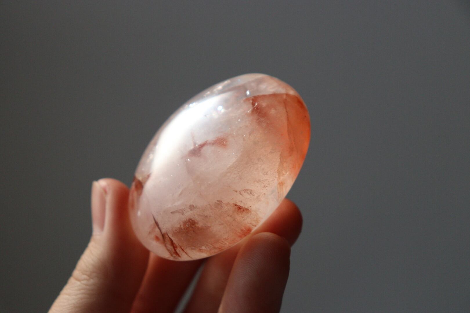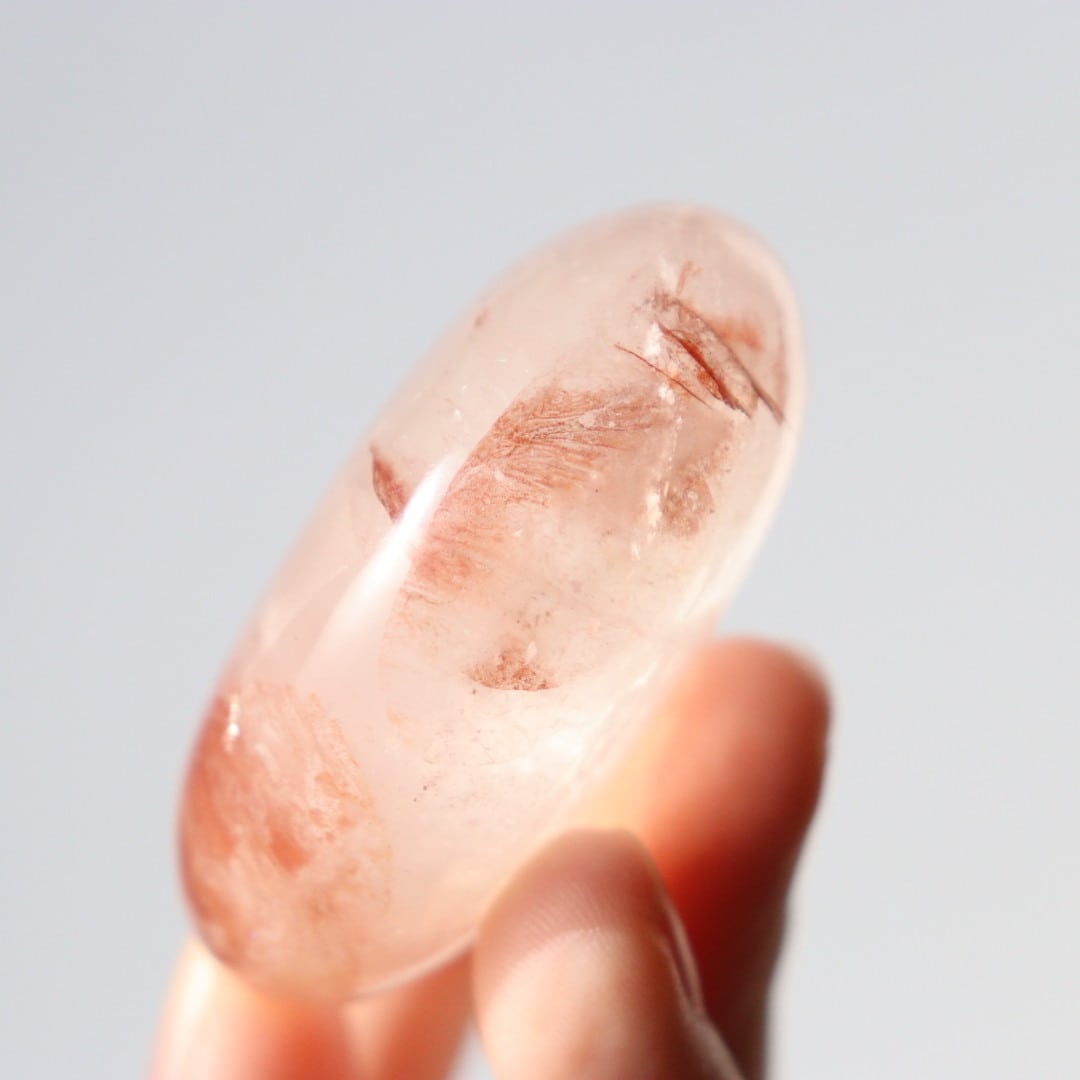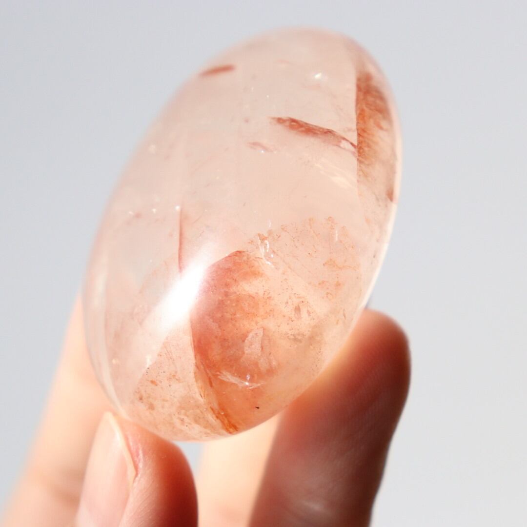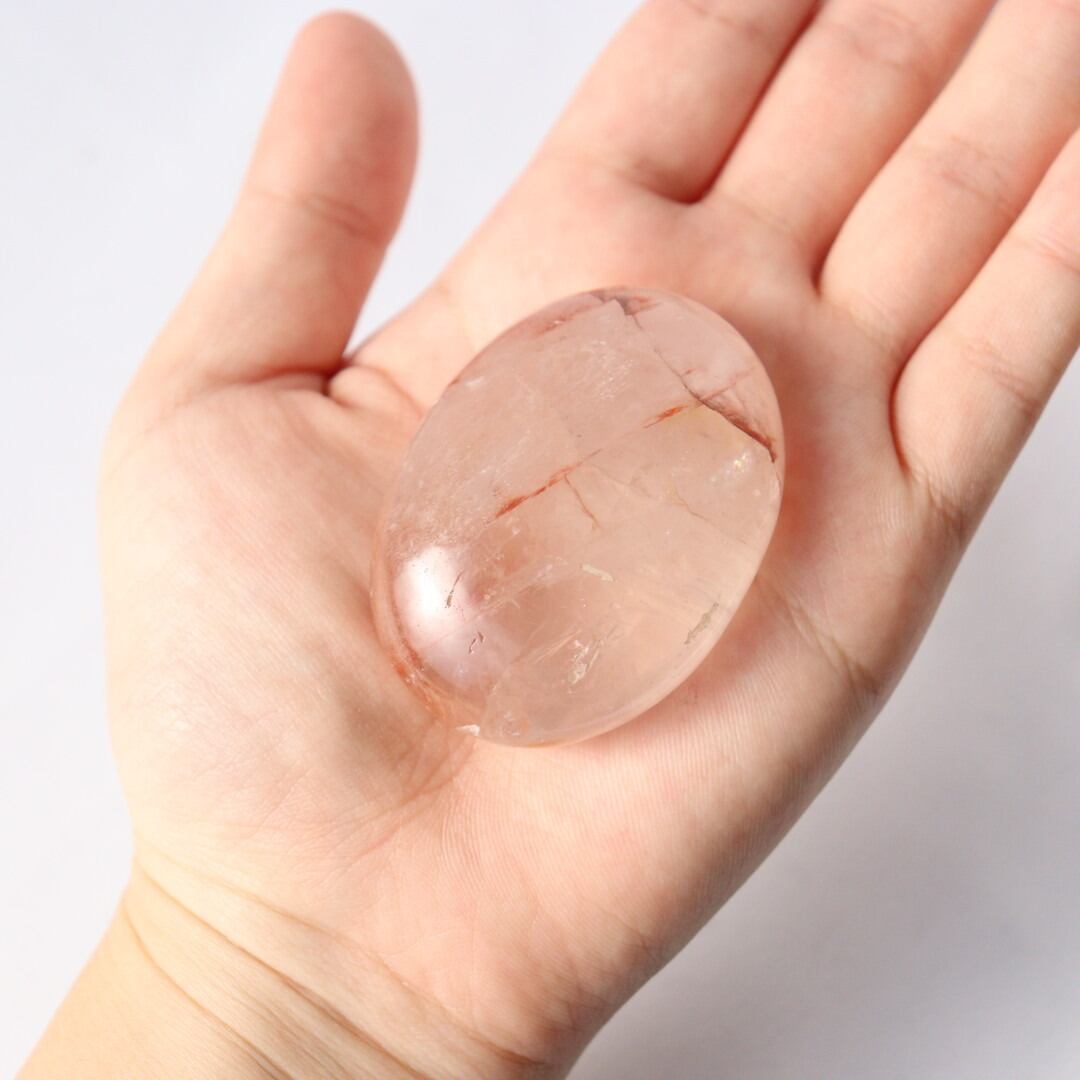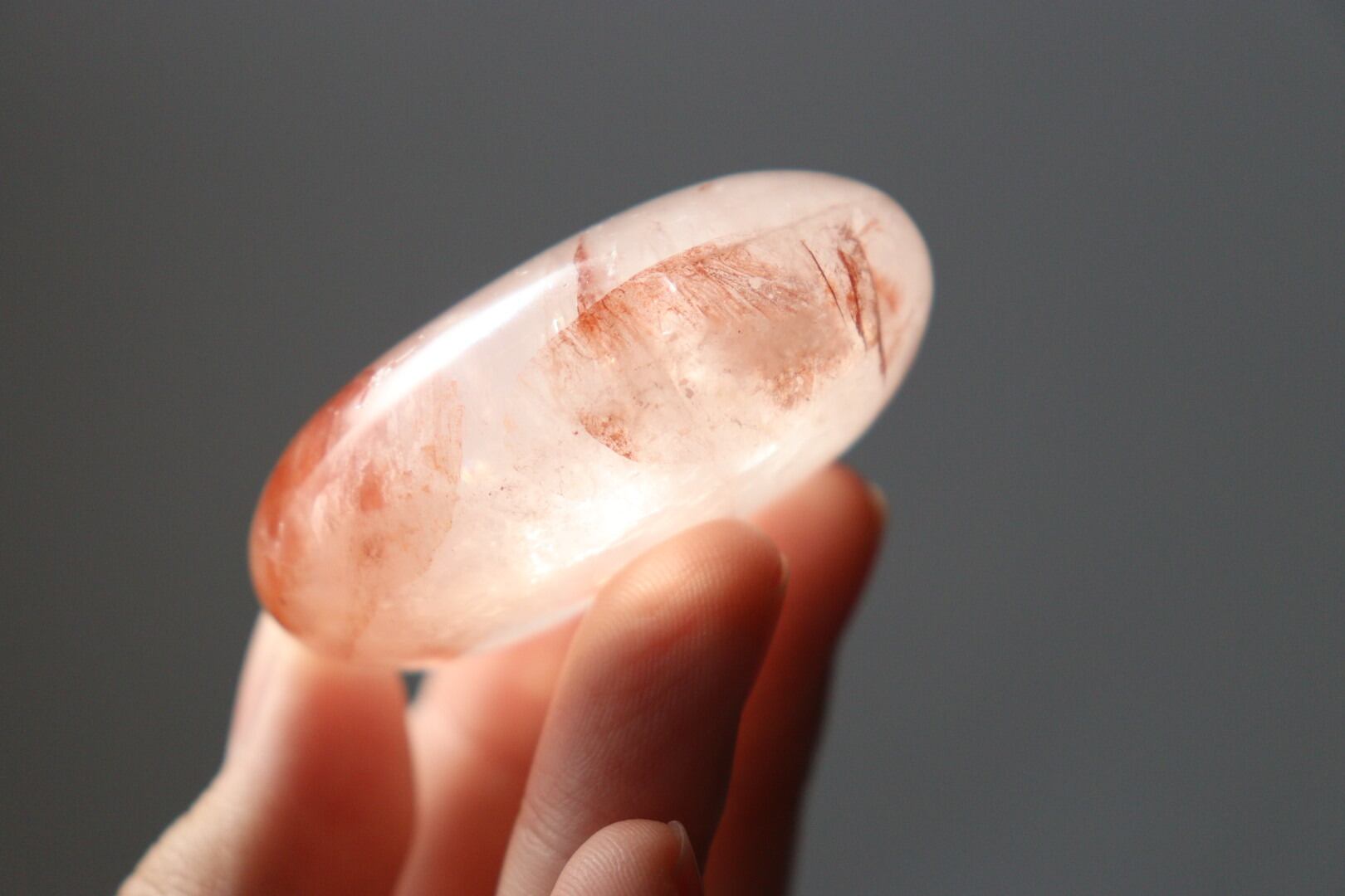 水の中をイメージさせるような透明感の、レッドヘマタイトインクォーツの握り石。