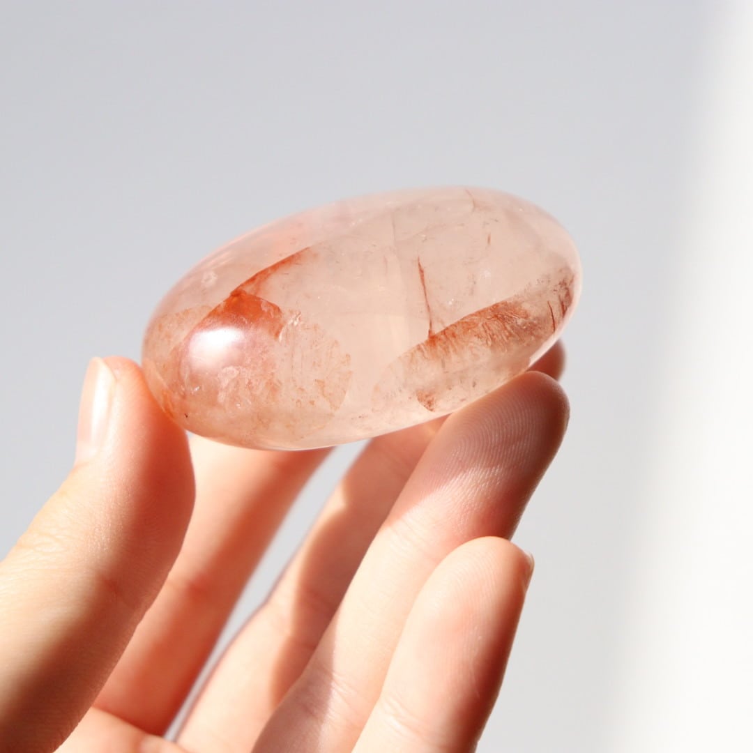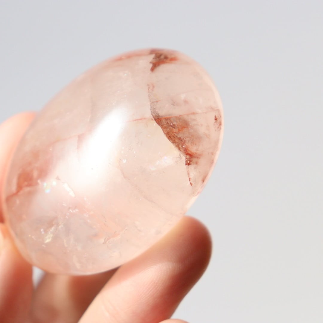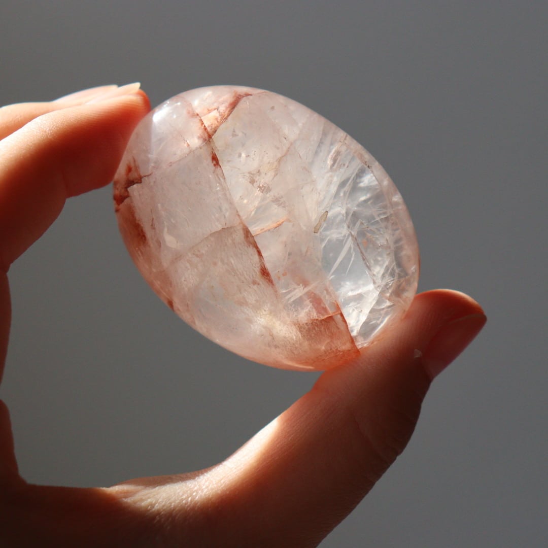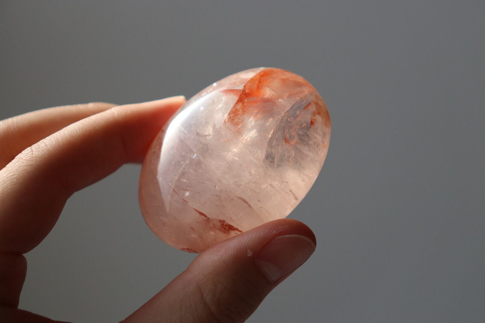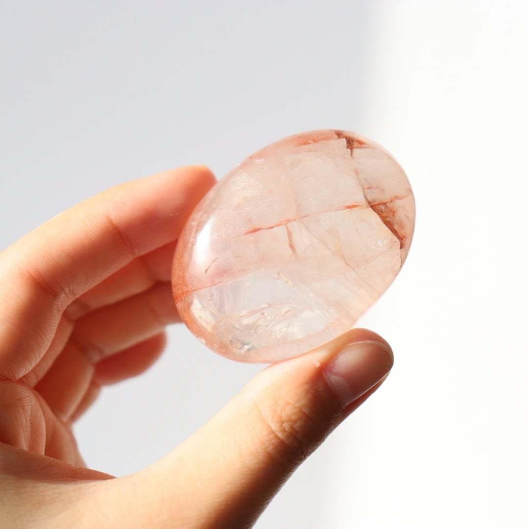 水の中をイメージさせるような透明感の、レッドヘマタイトインクォーツの握り石。