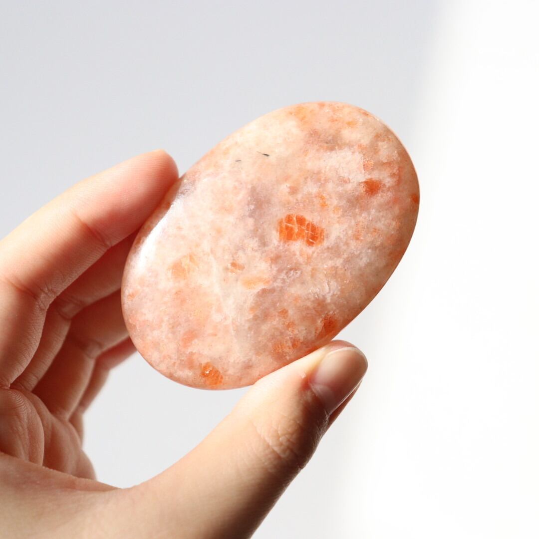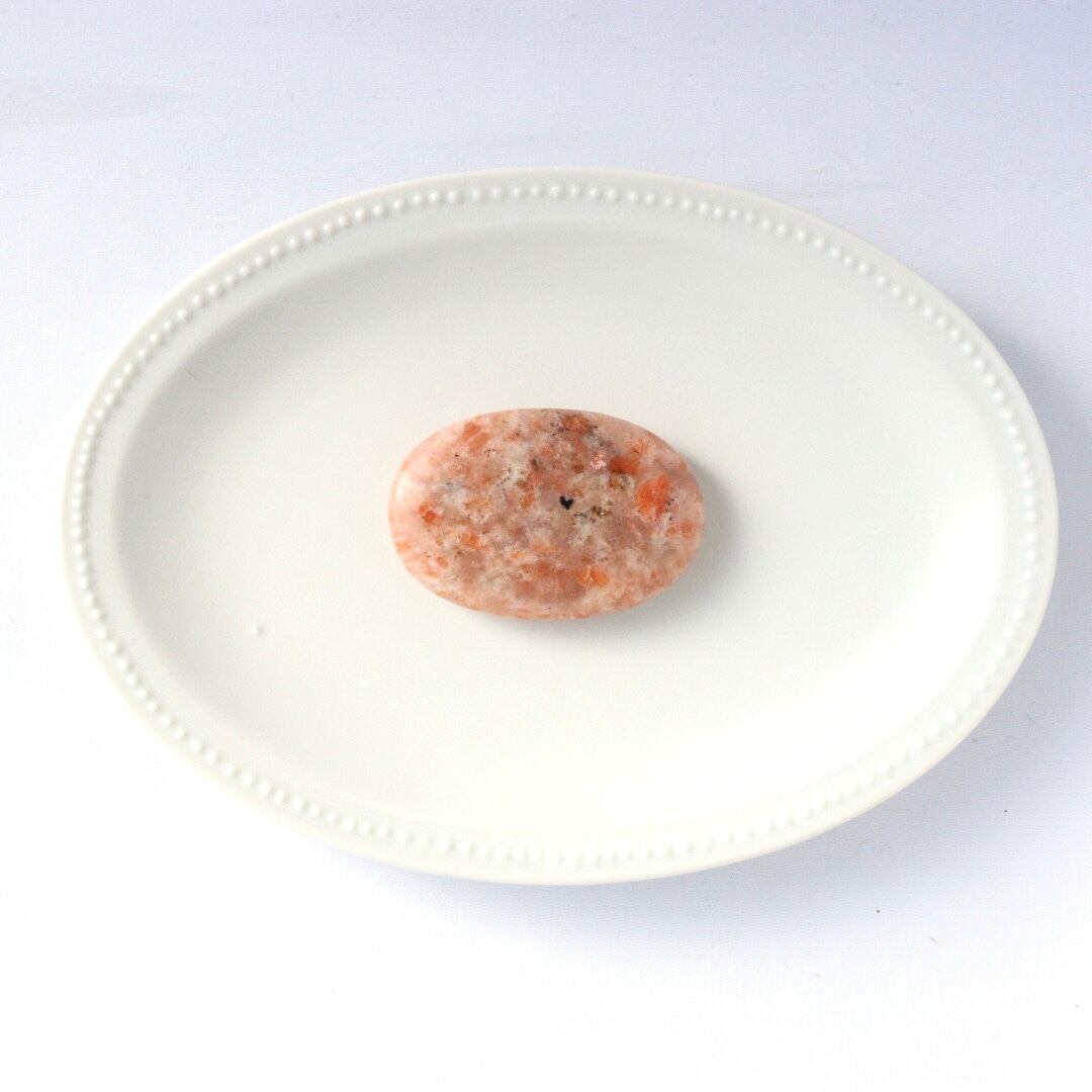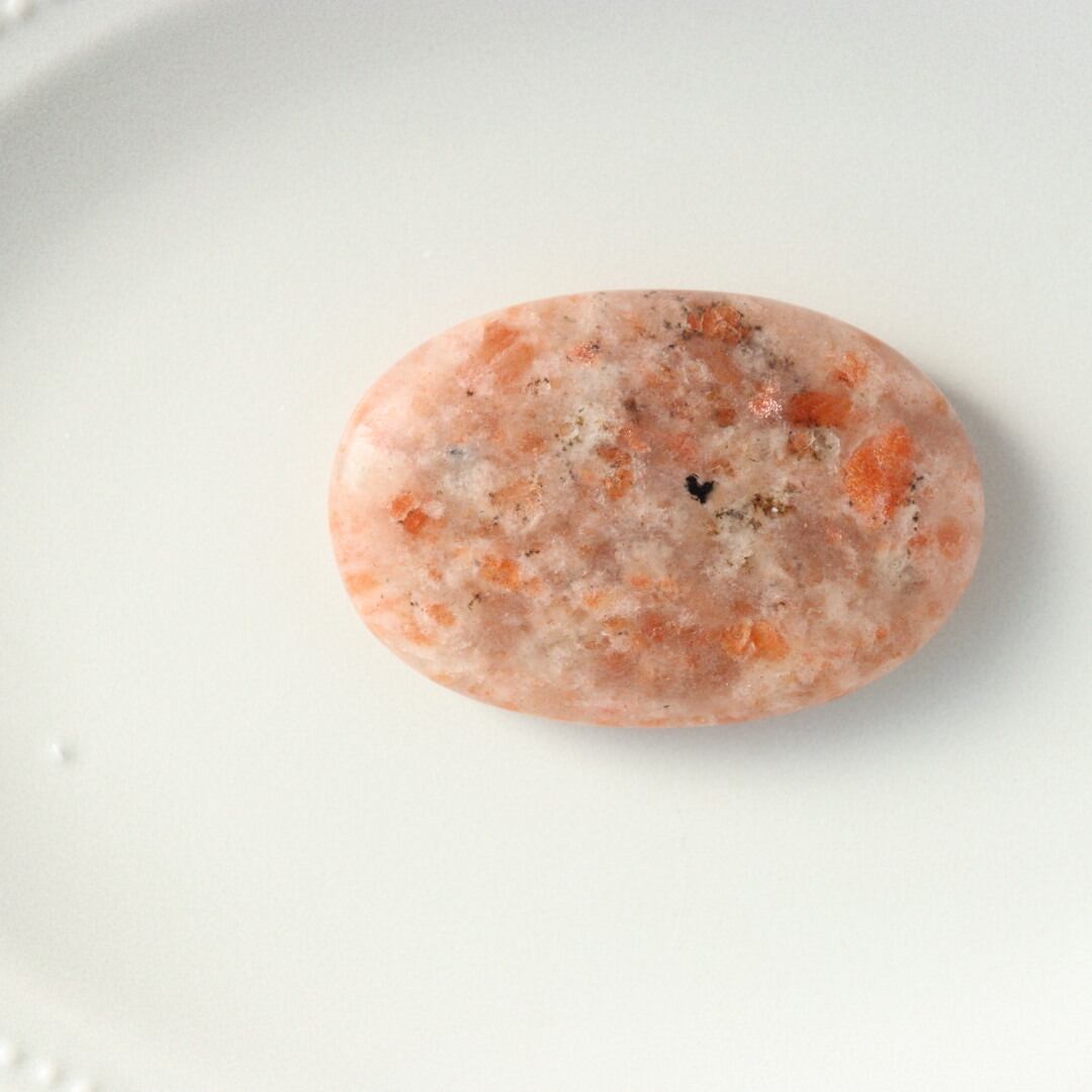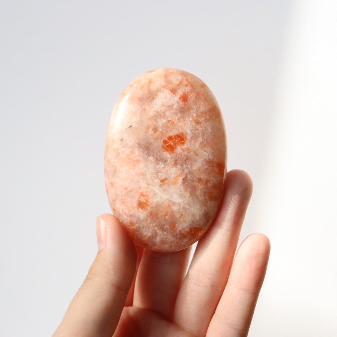 太陽のようなオレンジの輝きを湛えた、サンストーンの握り石。