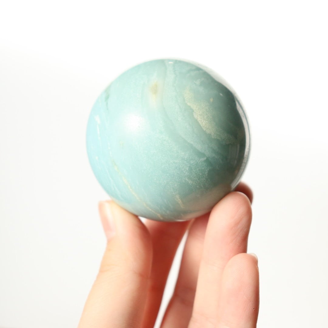カリブ海を思わせる鮮やかなブルーグリーンが広がる、カリビアンブルーカルサイトのスフィア。