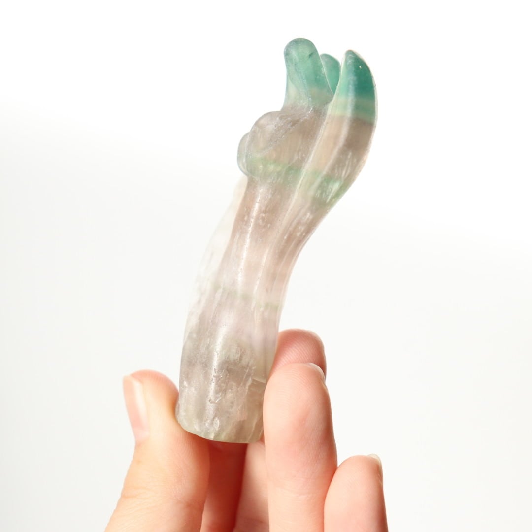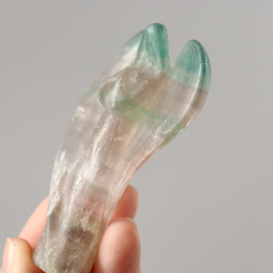 柔らかなグリーンのラインが浮かび上がる、グリーンフローライトの天使。