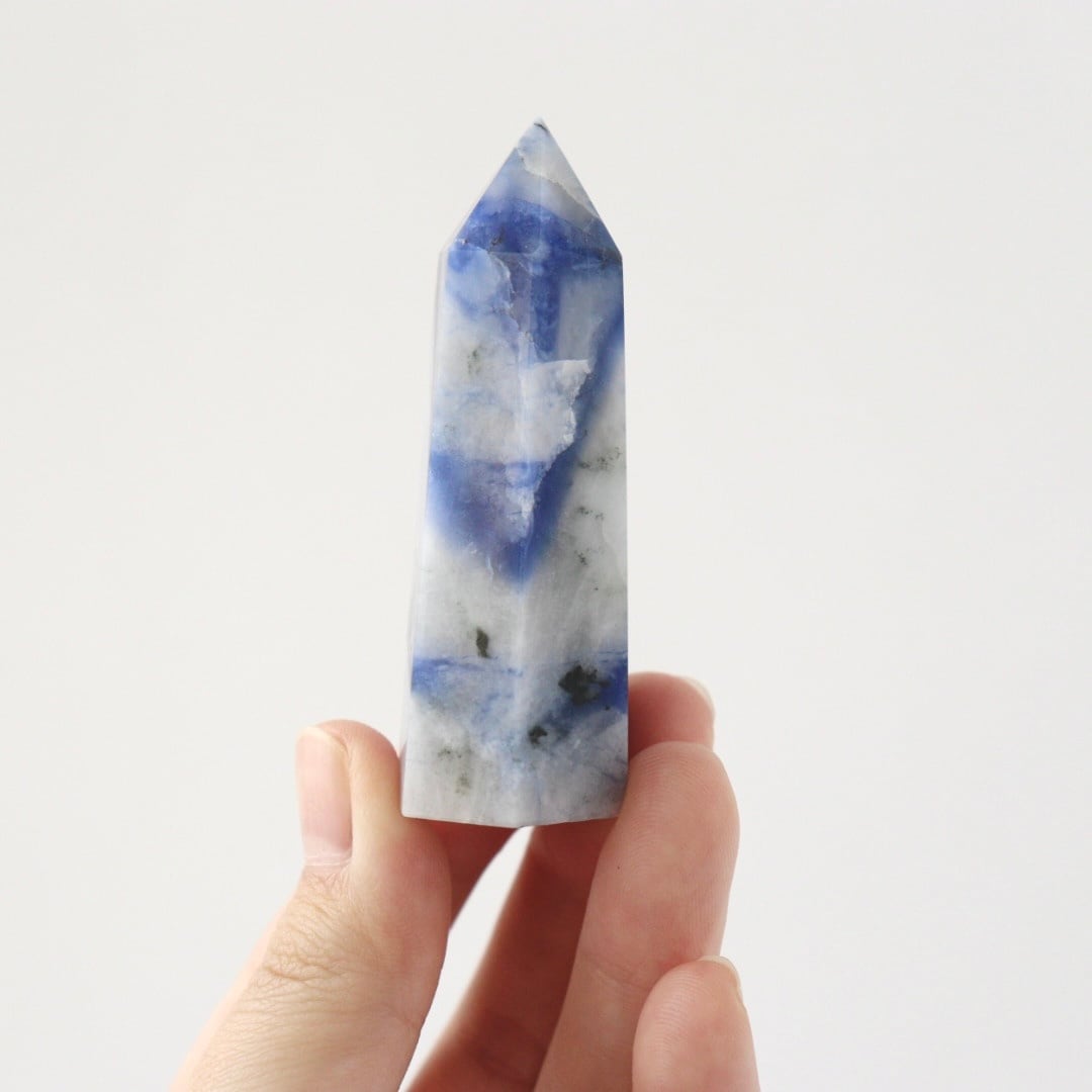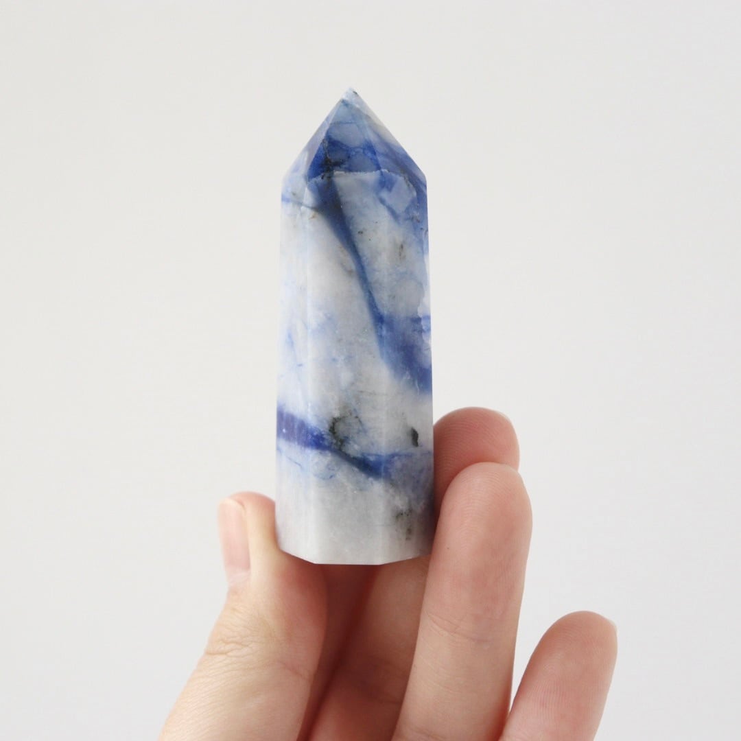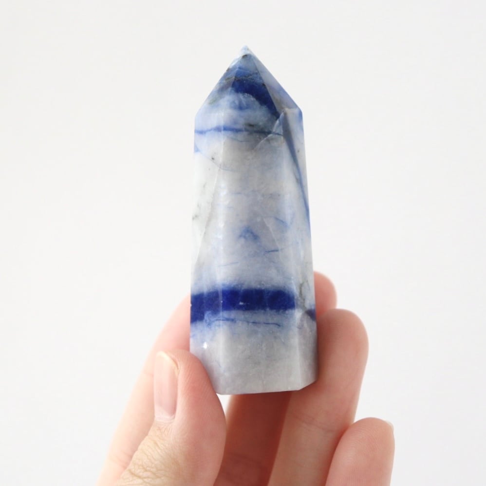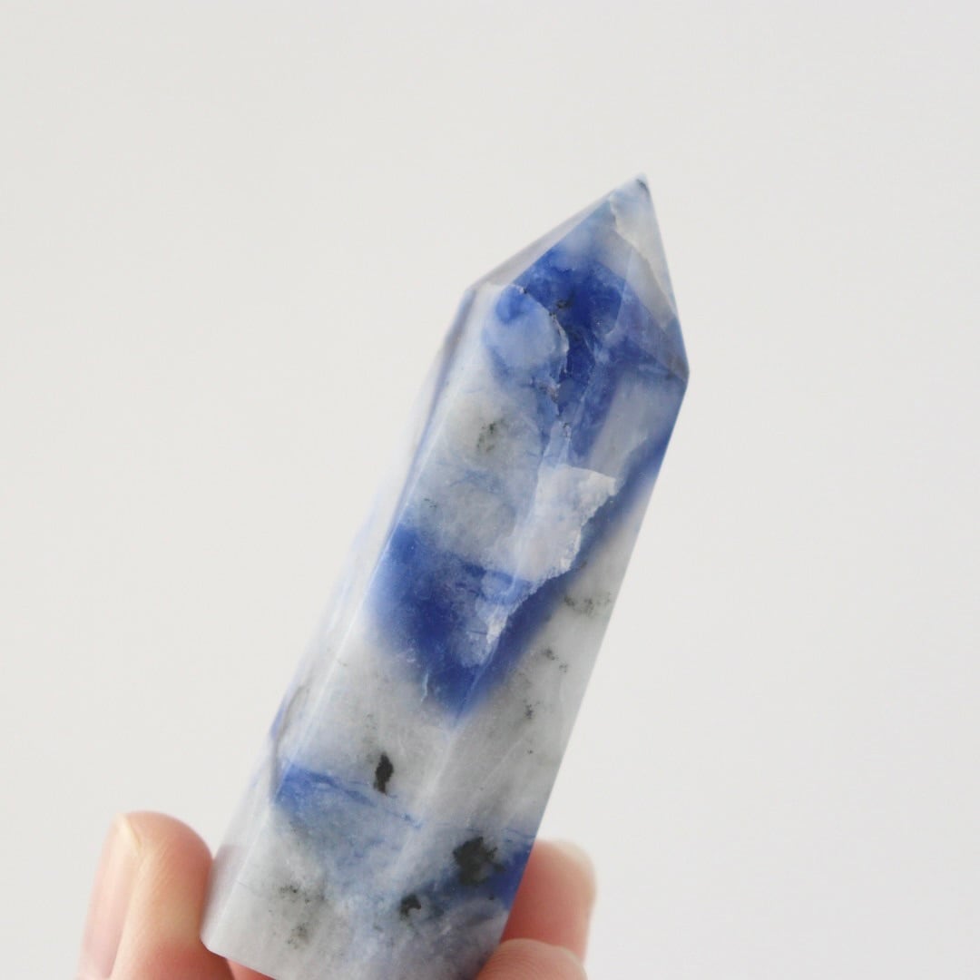 ブルーの深みや不思議な透明感が大変美しい。ソーダライトのタワーをお楽しみください。