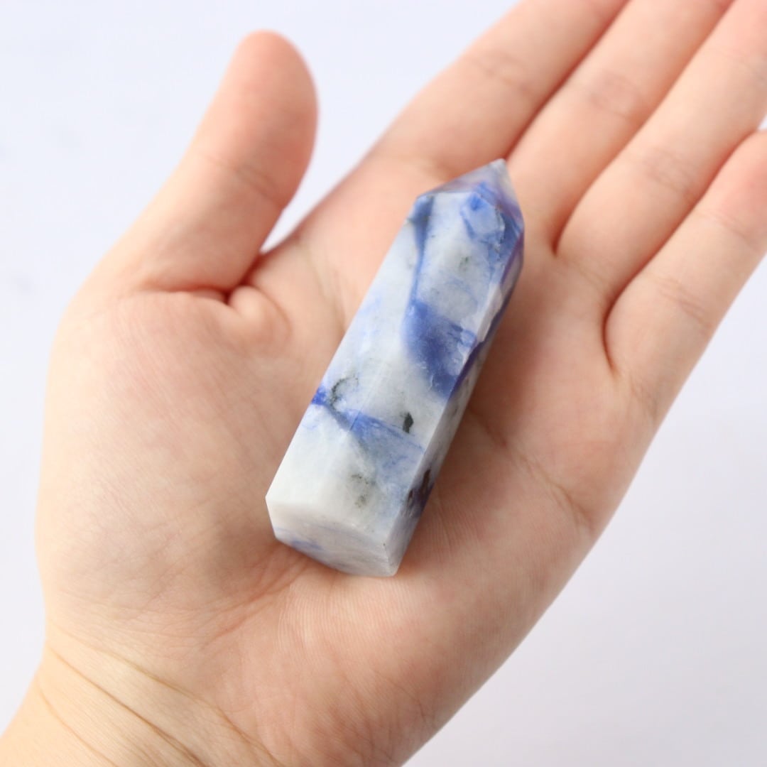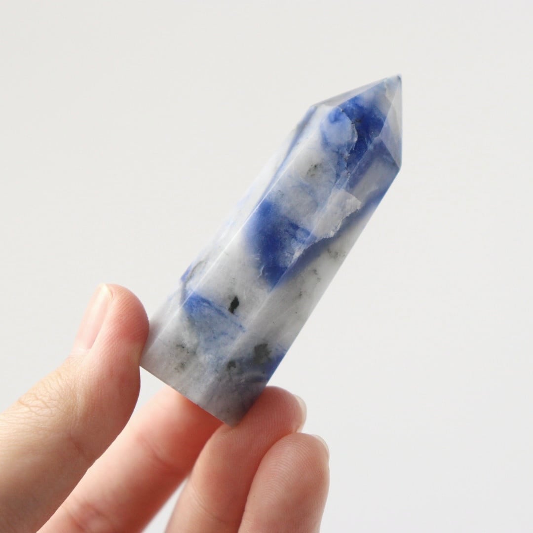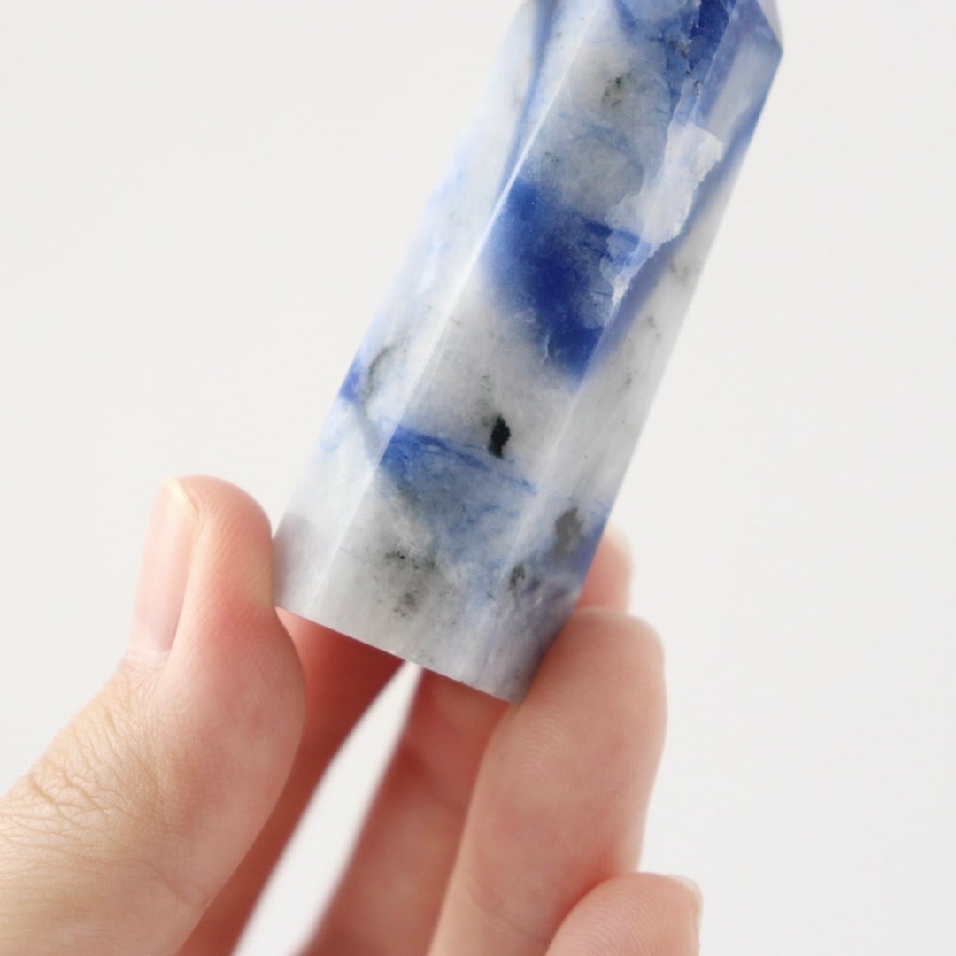 ブルーの深みや不思議な透明感が大変美しい。ソーダライトのタワーをお楽しみください。