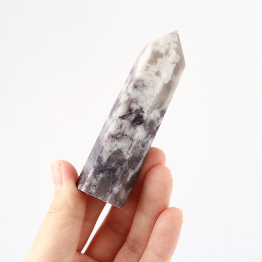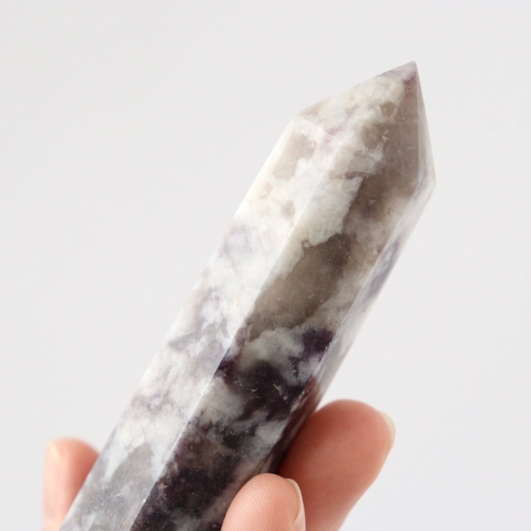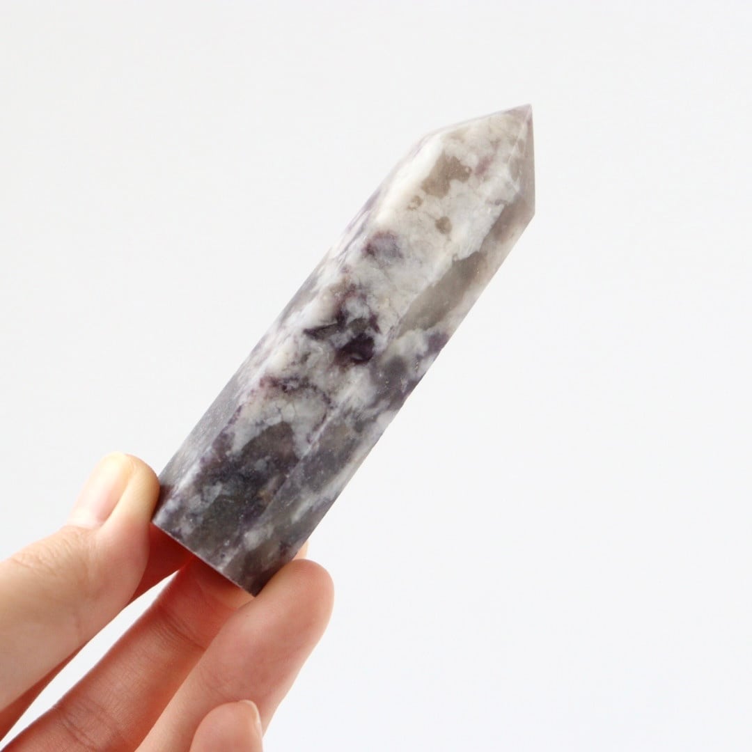 こちらは、ユニコーンストーンの魅力がよく現れた神秘的なカラーのタワー。