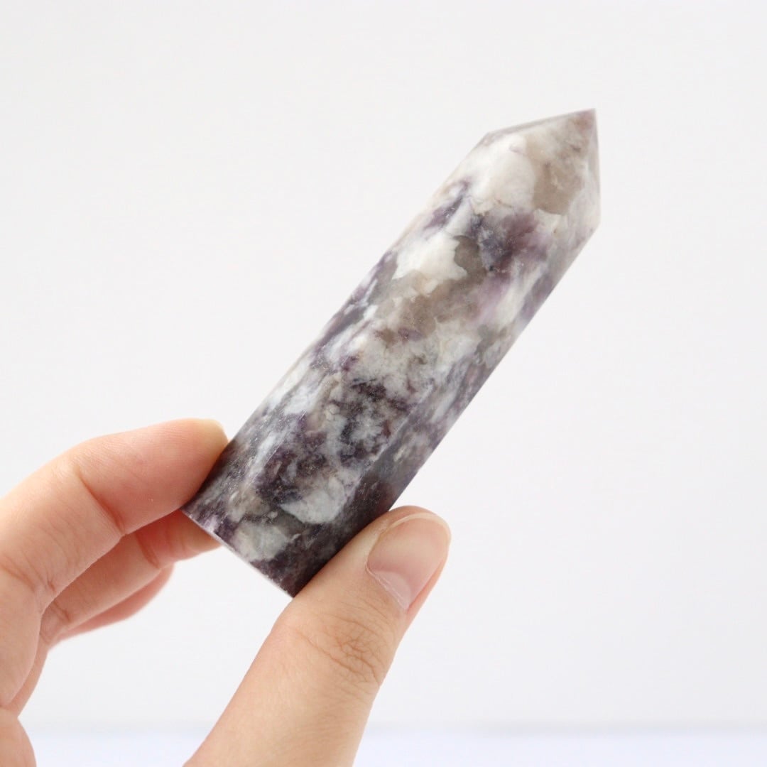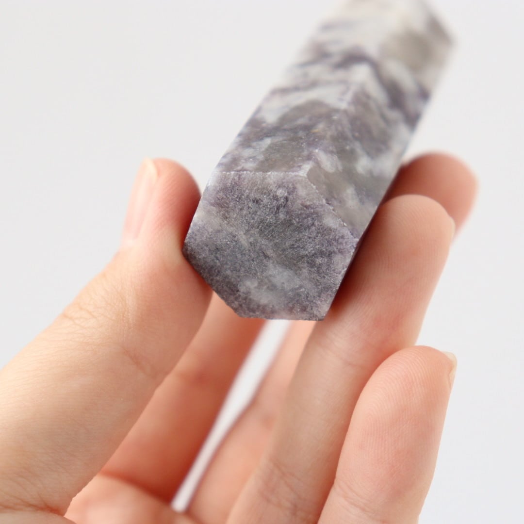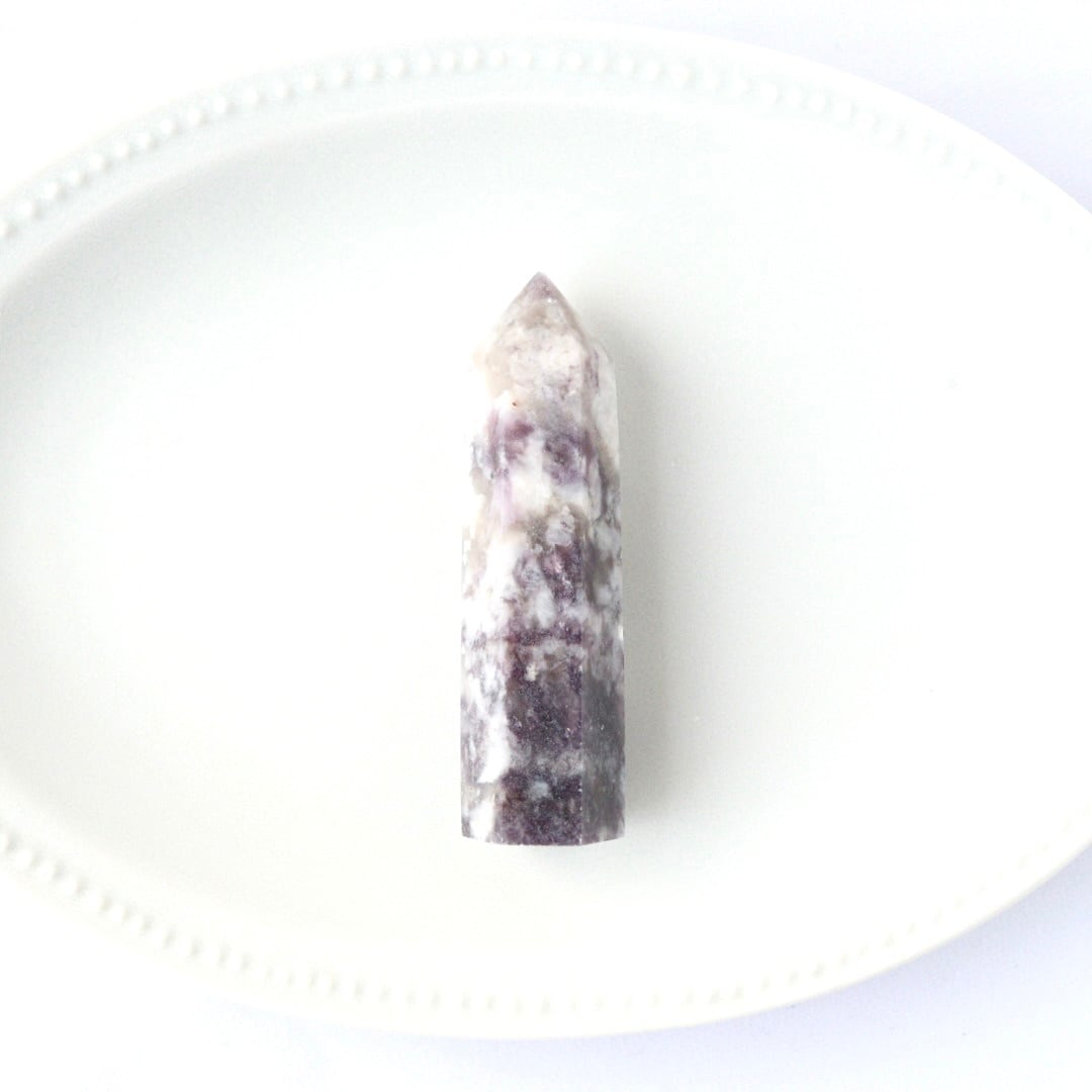 こちらは、ユニコーンストーンの魅力がよく現れた神秘的なカラーのタワー。