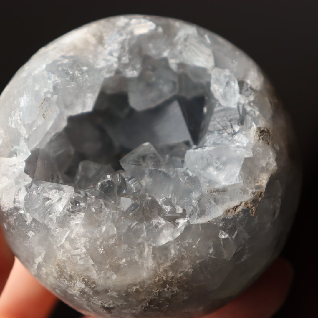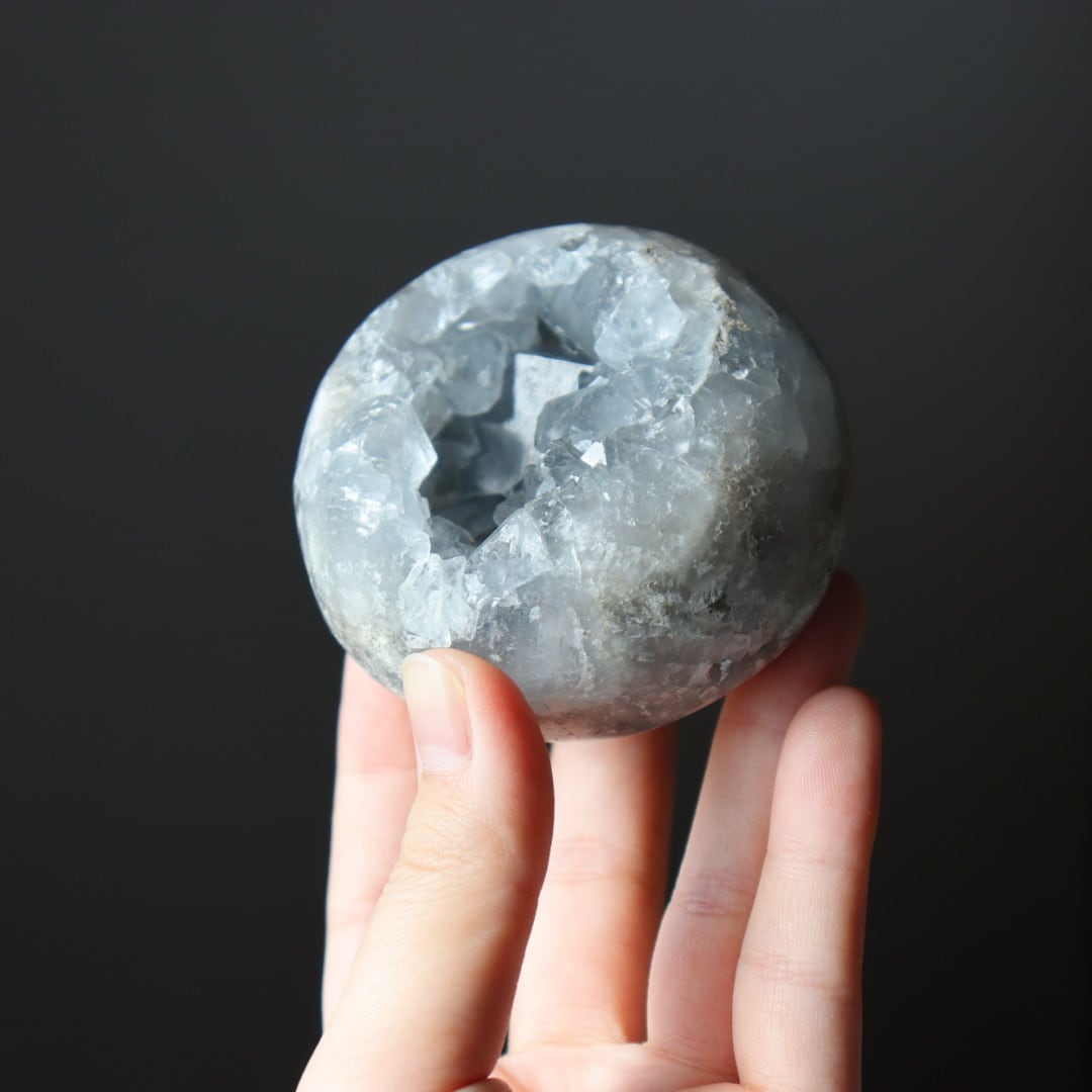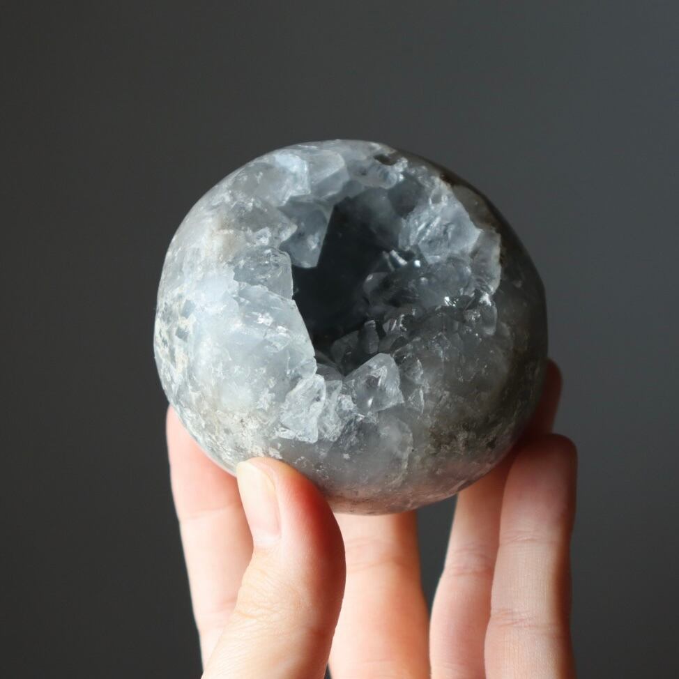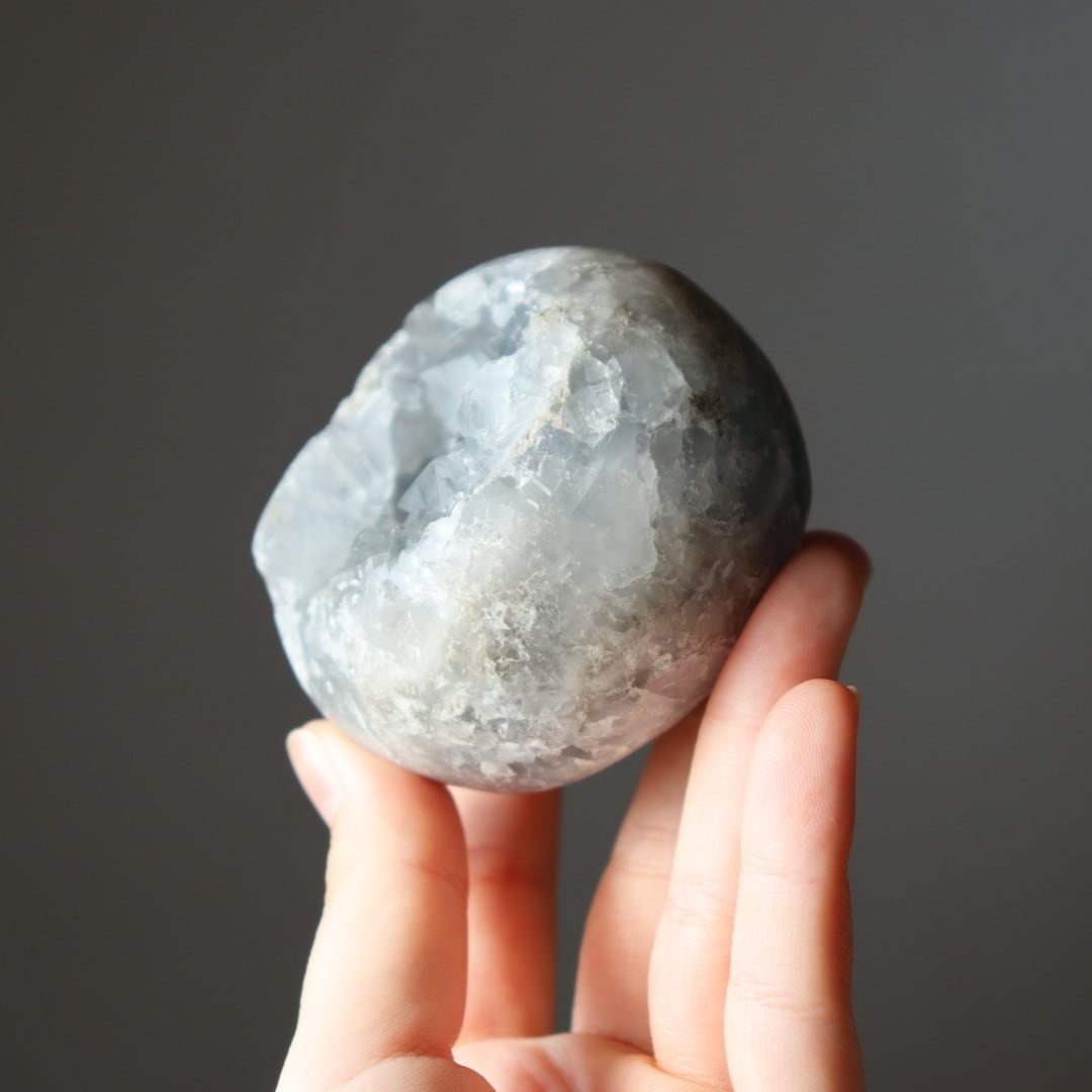 こちらは、大きな恐竜の卵を思わせる、存在感のある塊状のセレスタイトクラスター。
