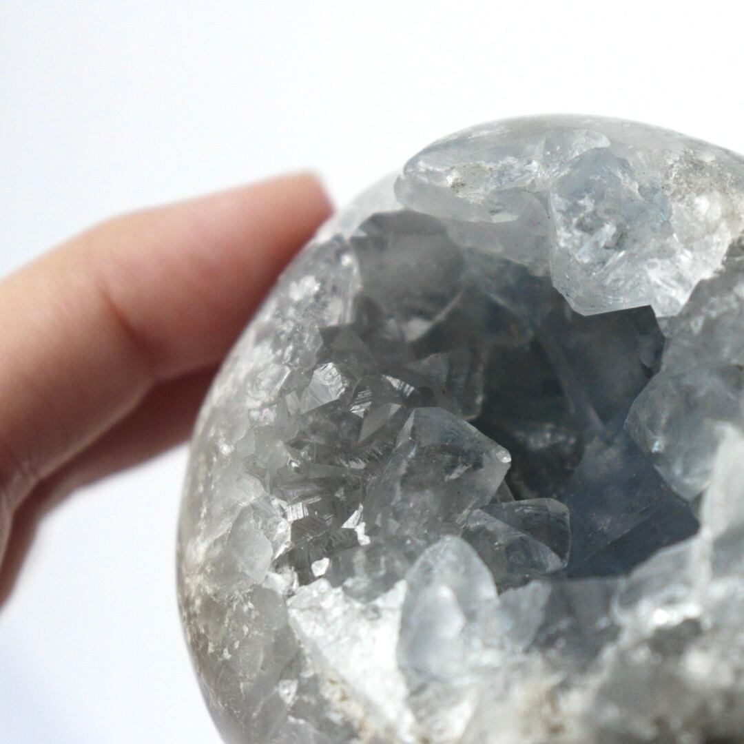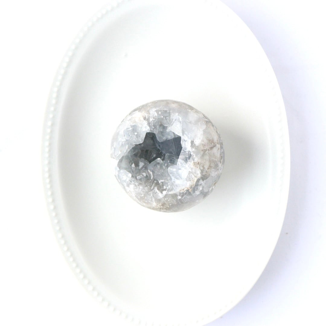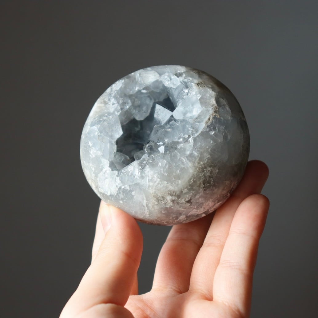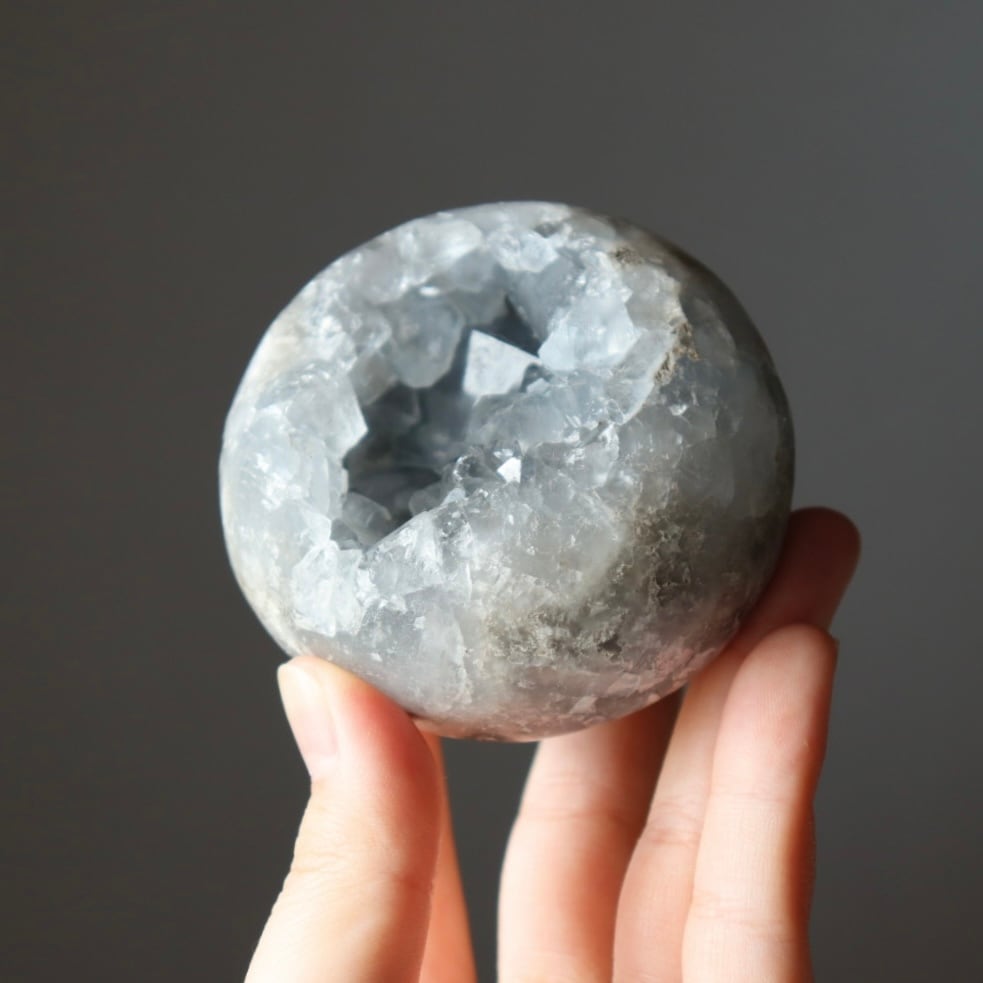 こちらは、大きな恐竜の卵を思わせる、存在感のある塊状のセレスタイトクラスター。