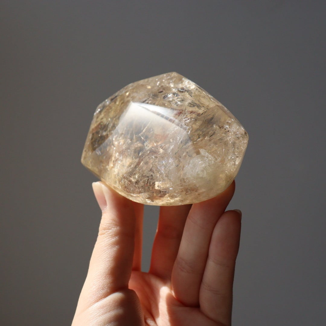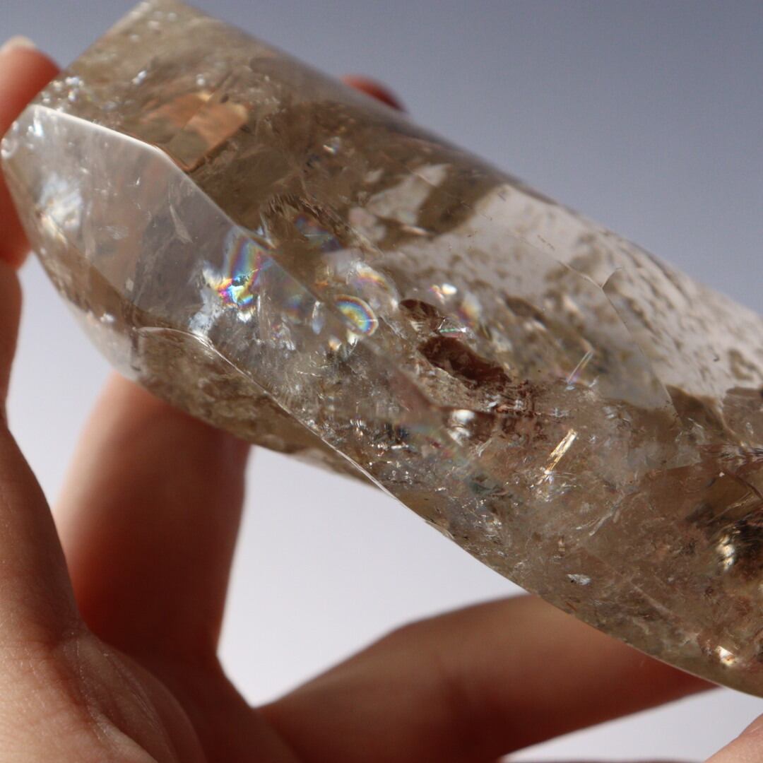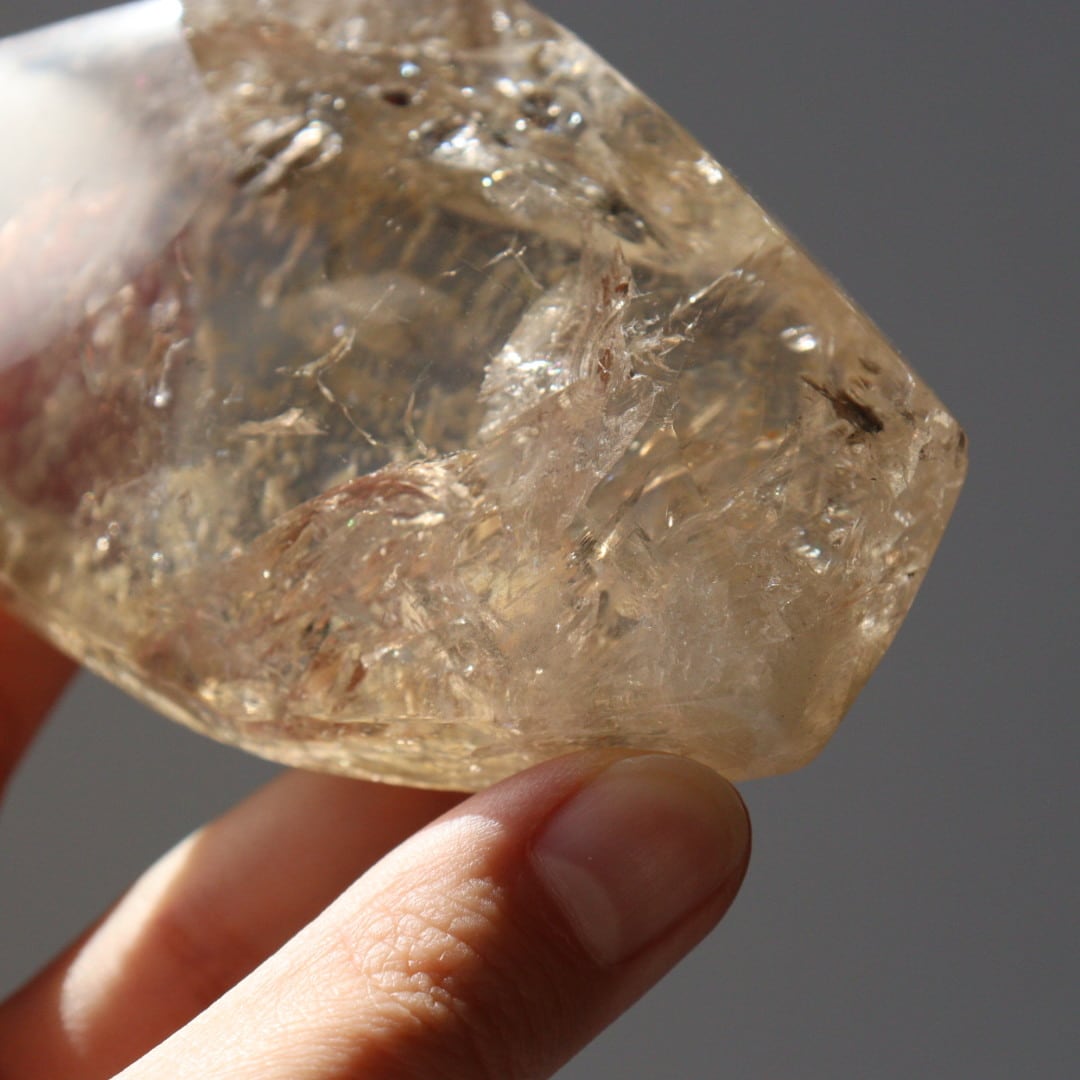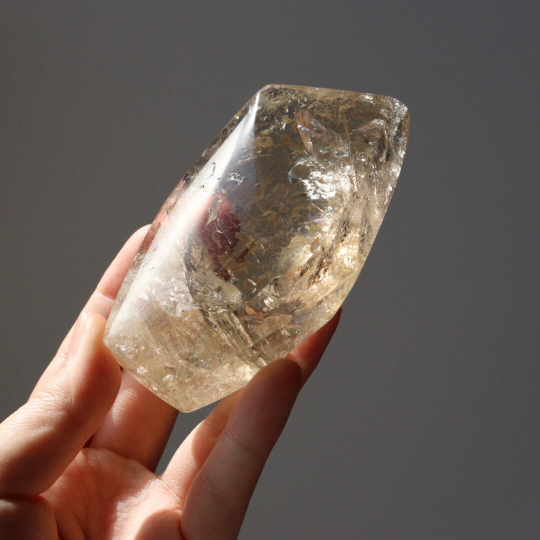 あふれるような輝きと美しい虹をたたえた、圧倒的な存在感のシトリンフリーフォーム。