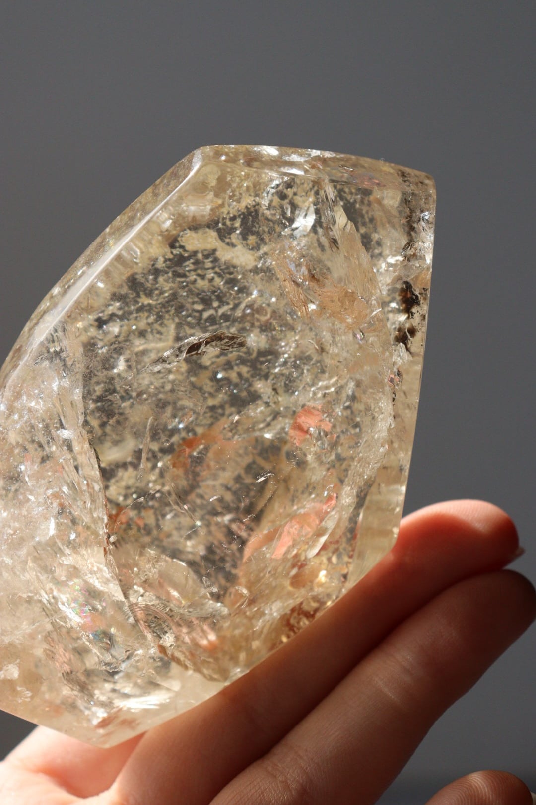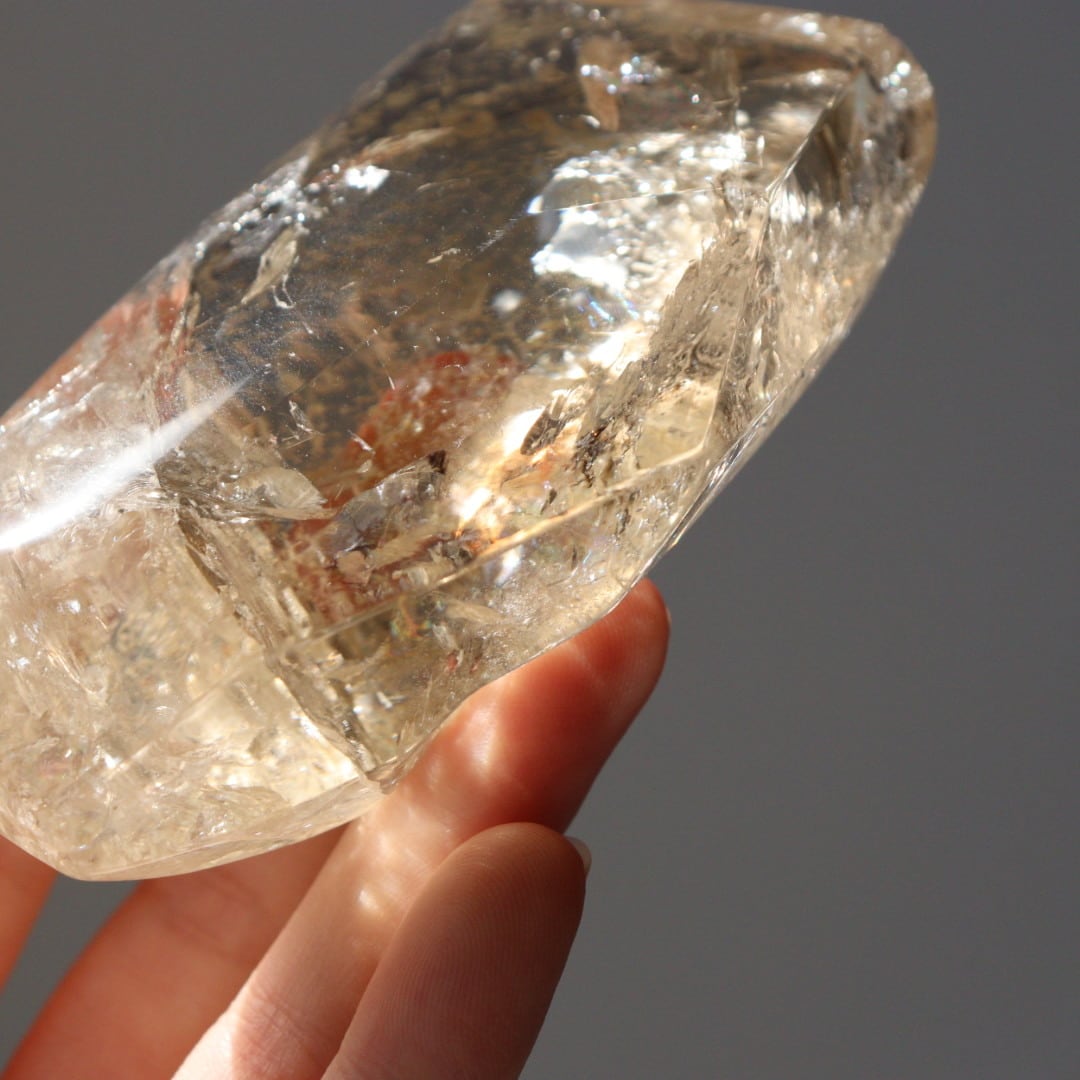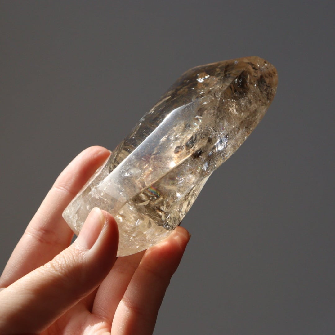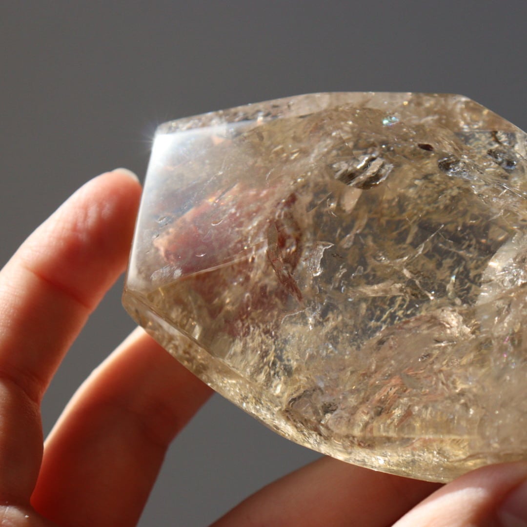 あふれるような輝きと美しい虹をたたえた、圧倒的な存在感のシトリンフリーフォーム。