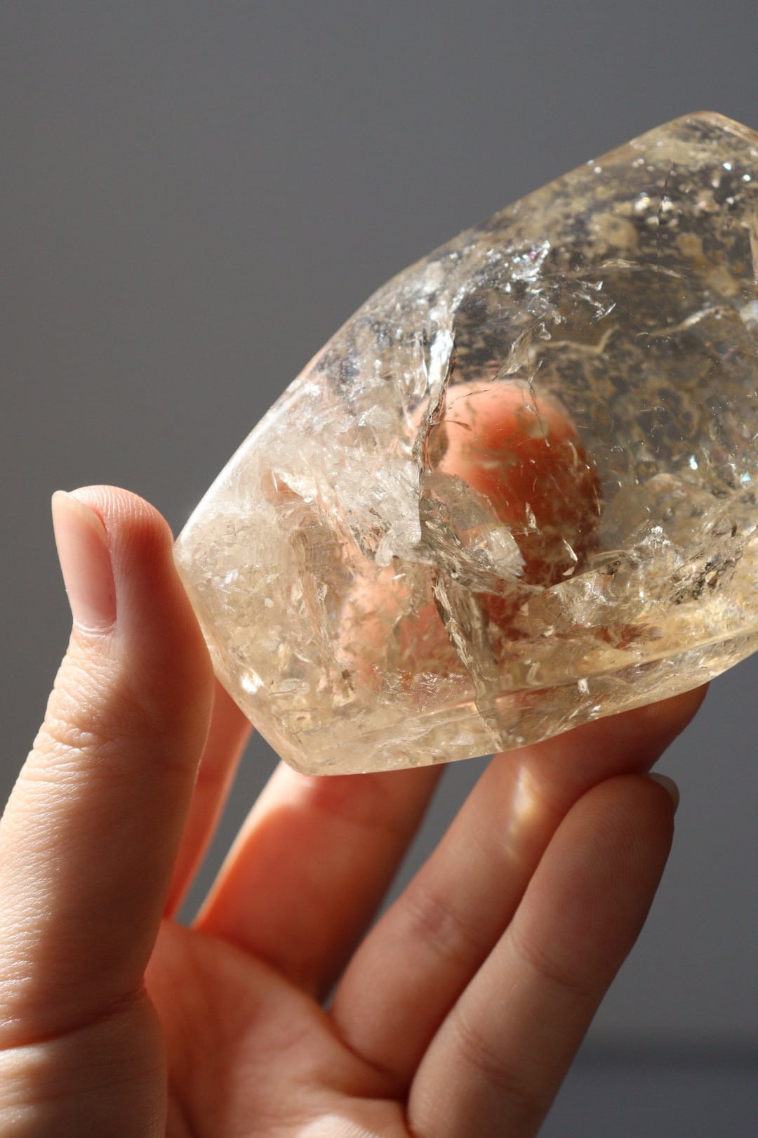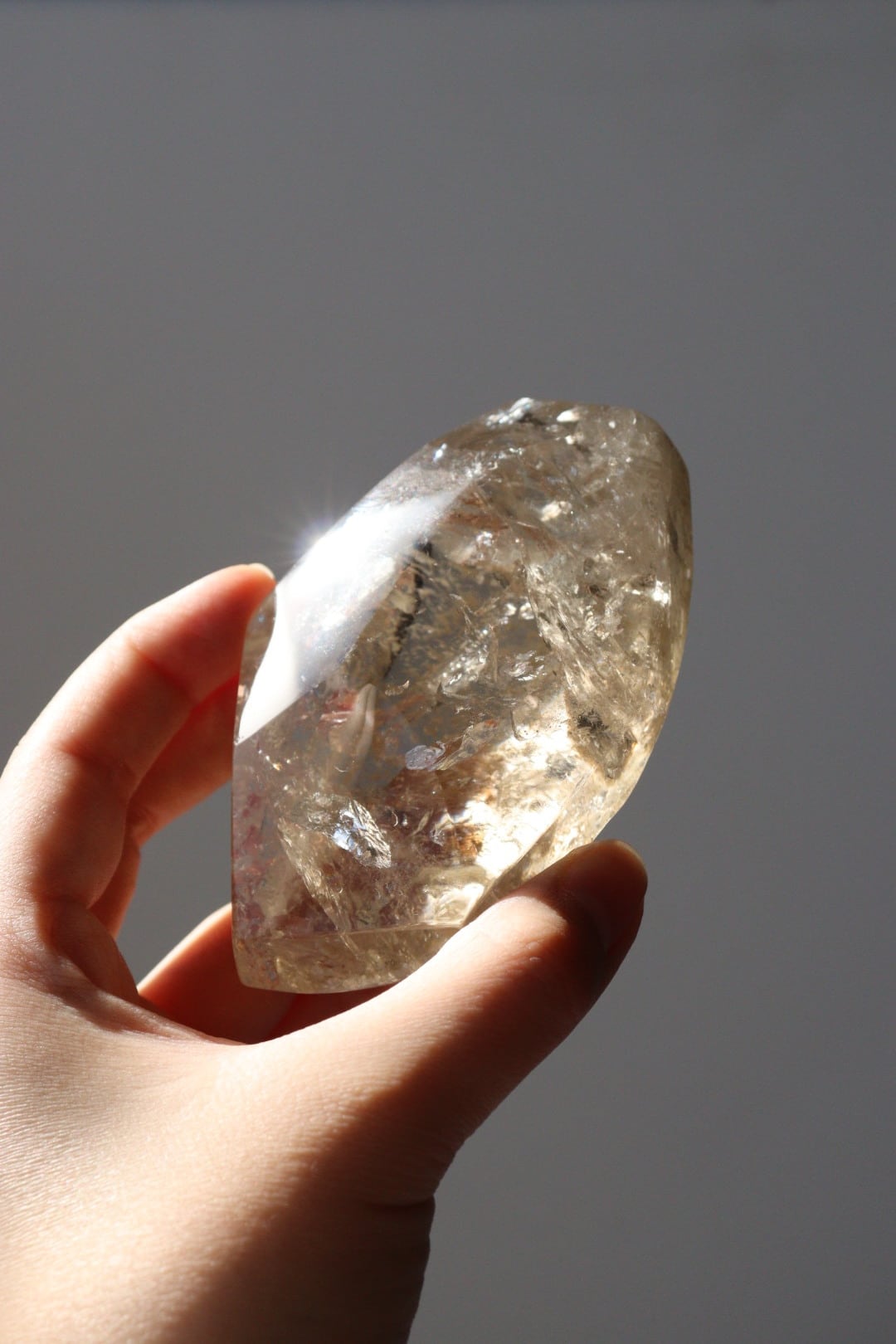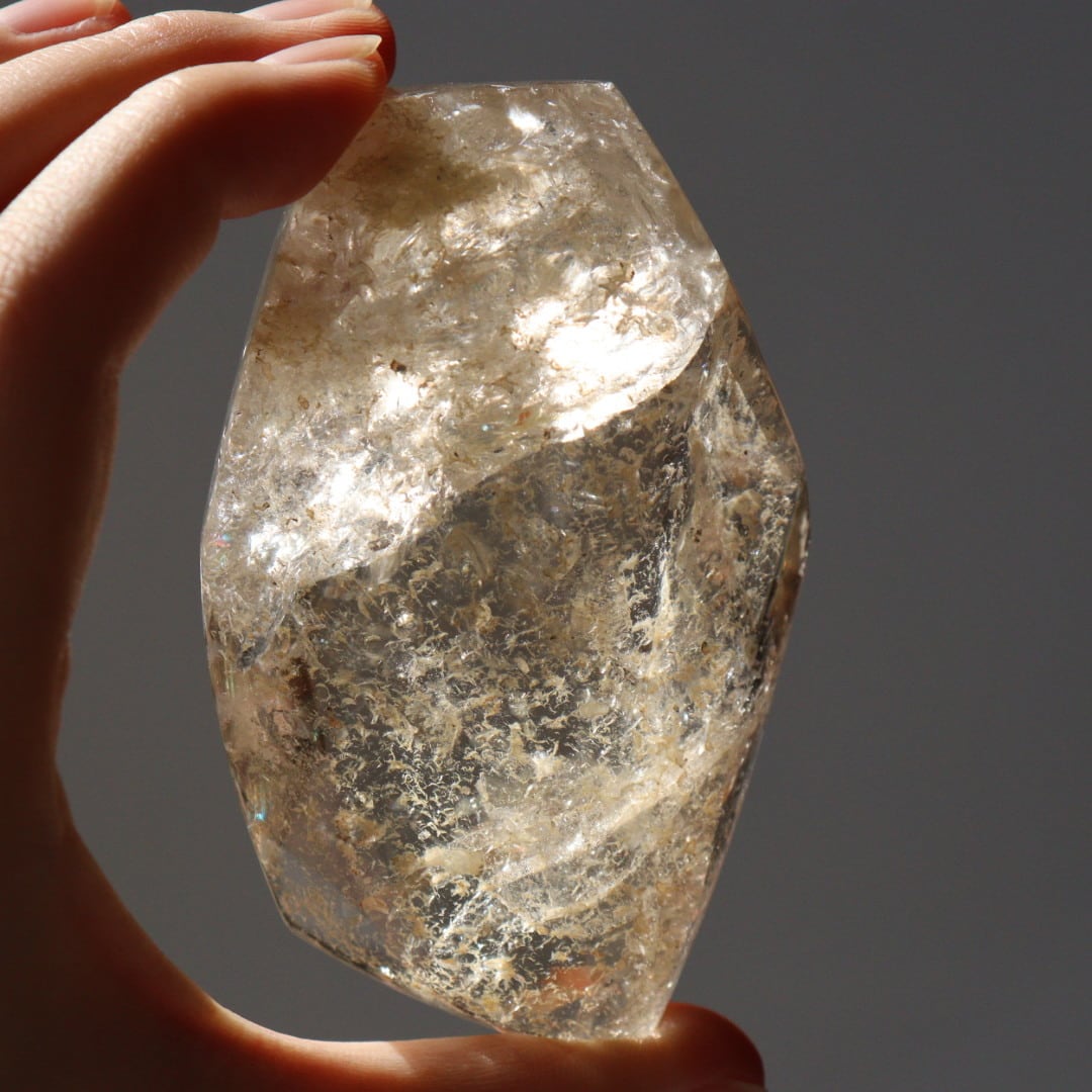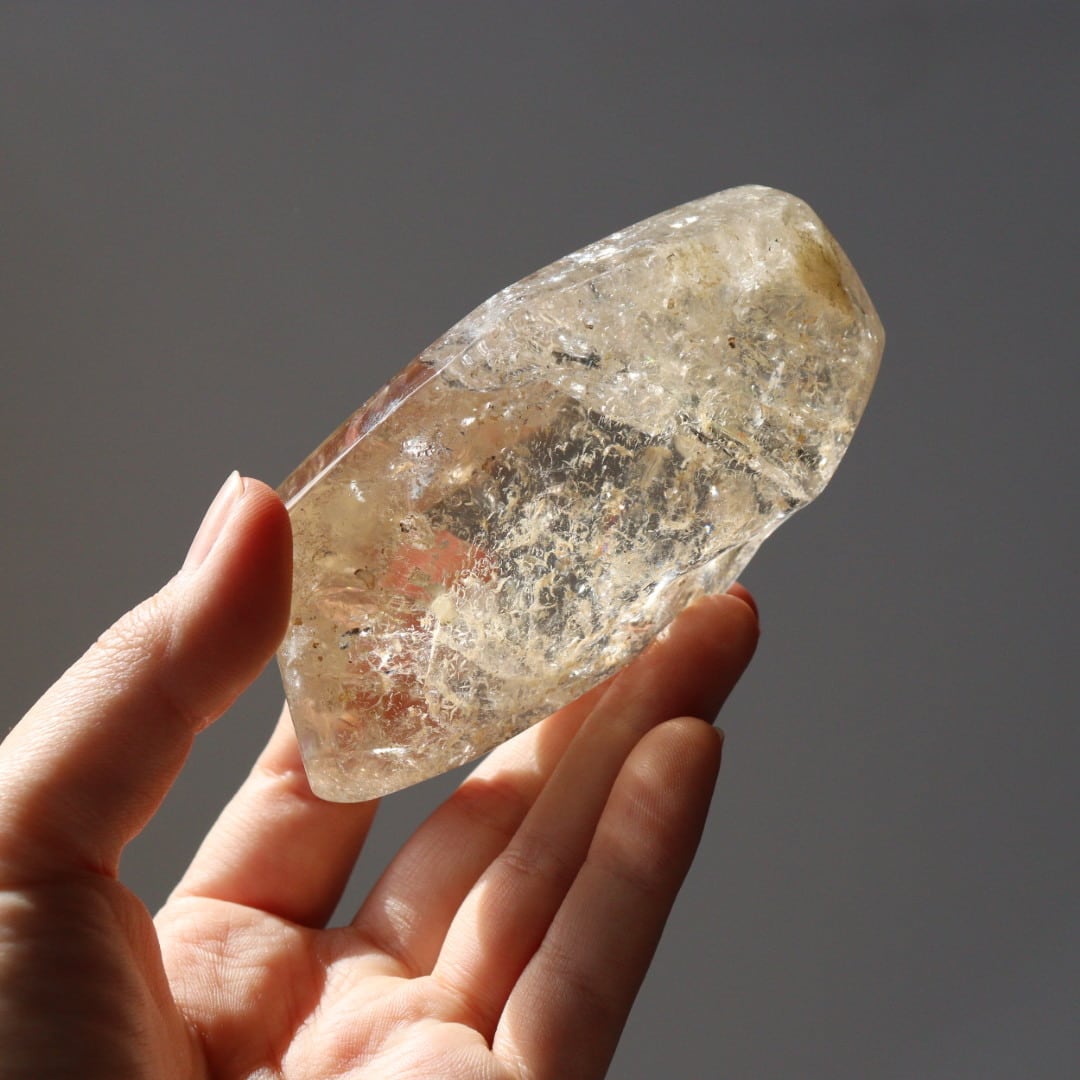 あふれるような輝きと美しい虹をたたえた、圧倒的な存在感のシトリンフリーフォーム。