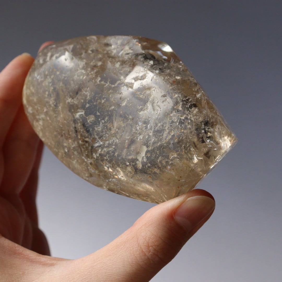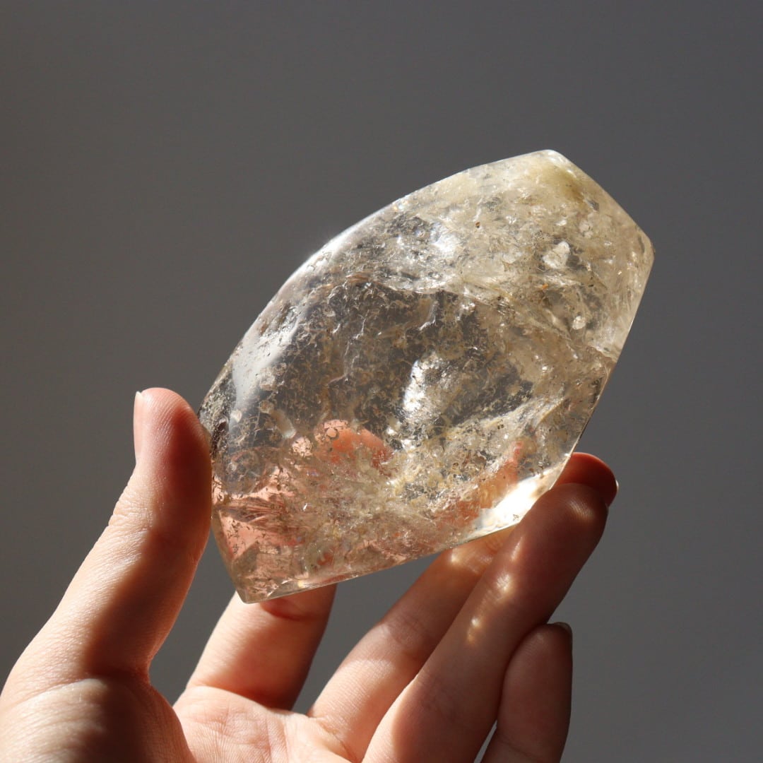 裏面にはあえて原石の痕跡を残し、山の中でゆっくりと育まれた結晶の歴史を感じさせる仕上がりです。
