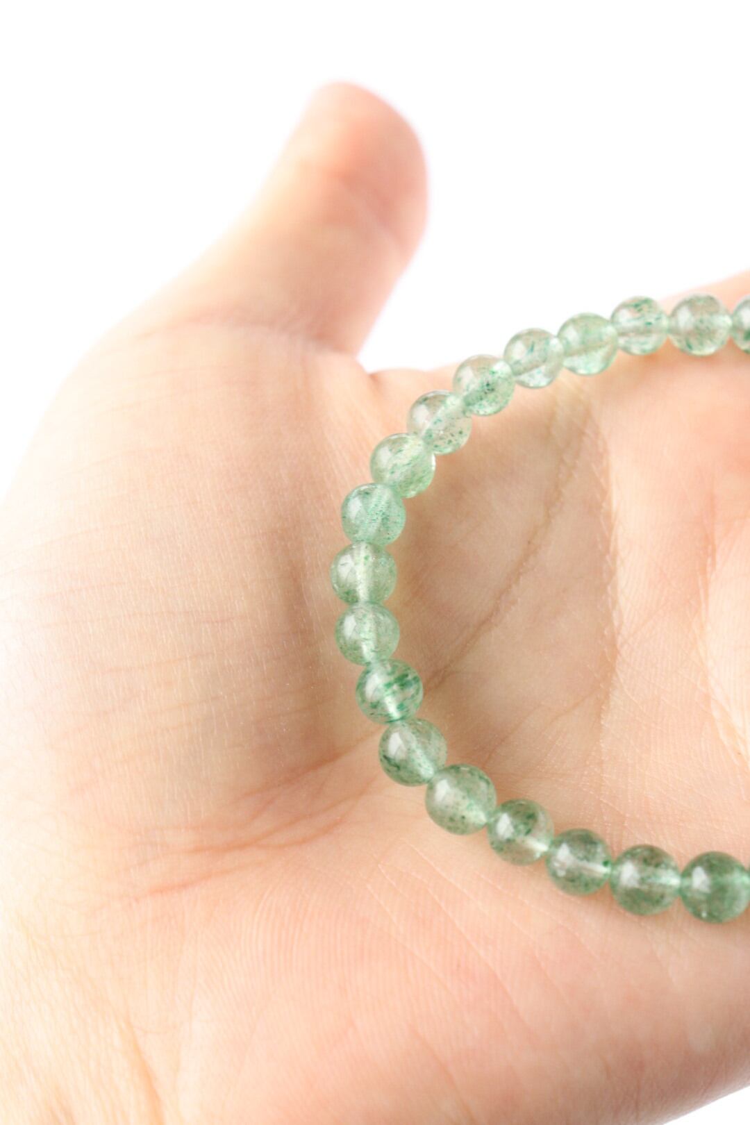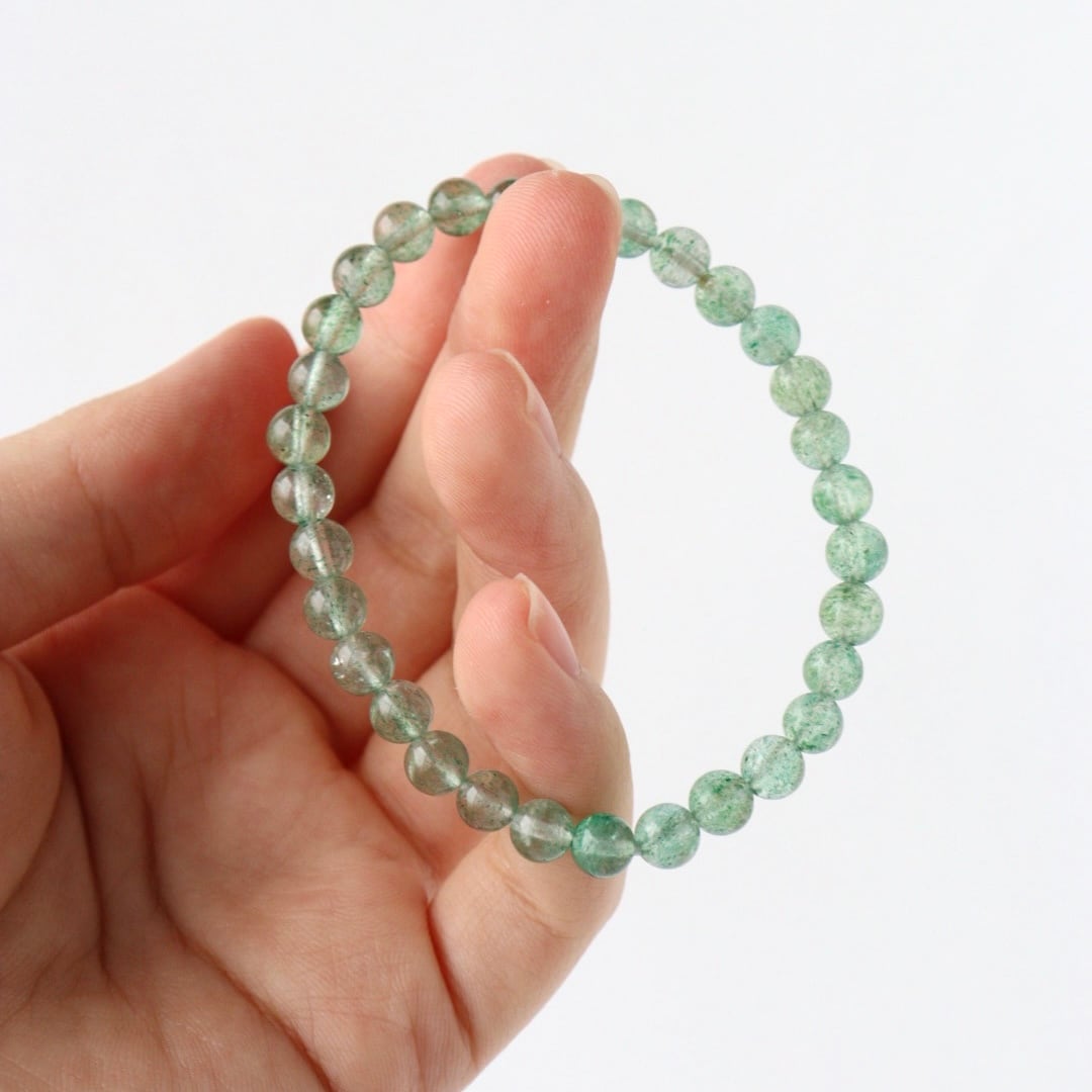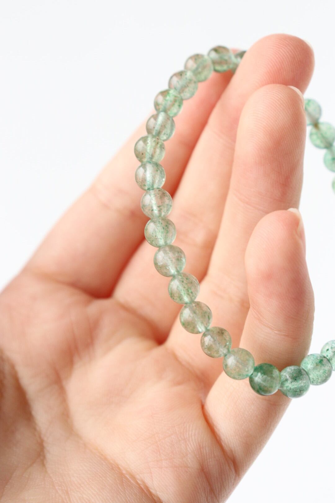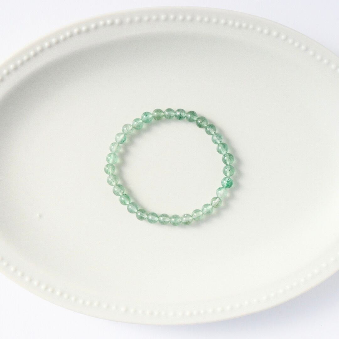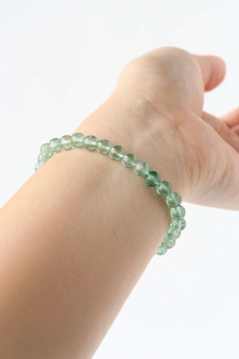 こちらは、軽やかで爽やかな印象のグリーンストロベリーインクォーツのブレスレット。